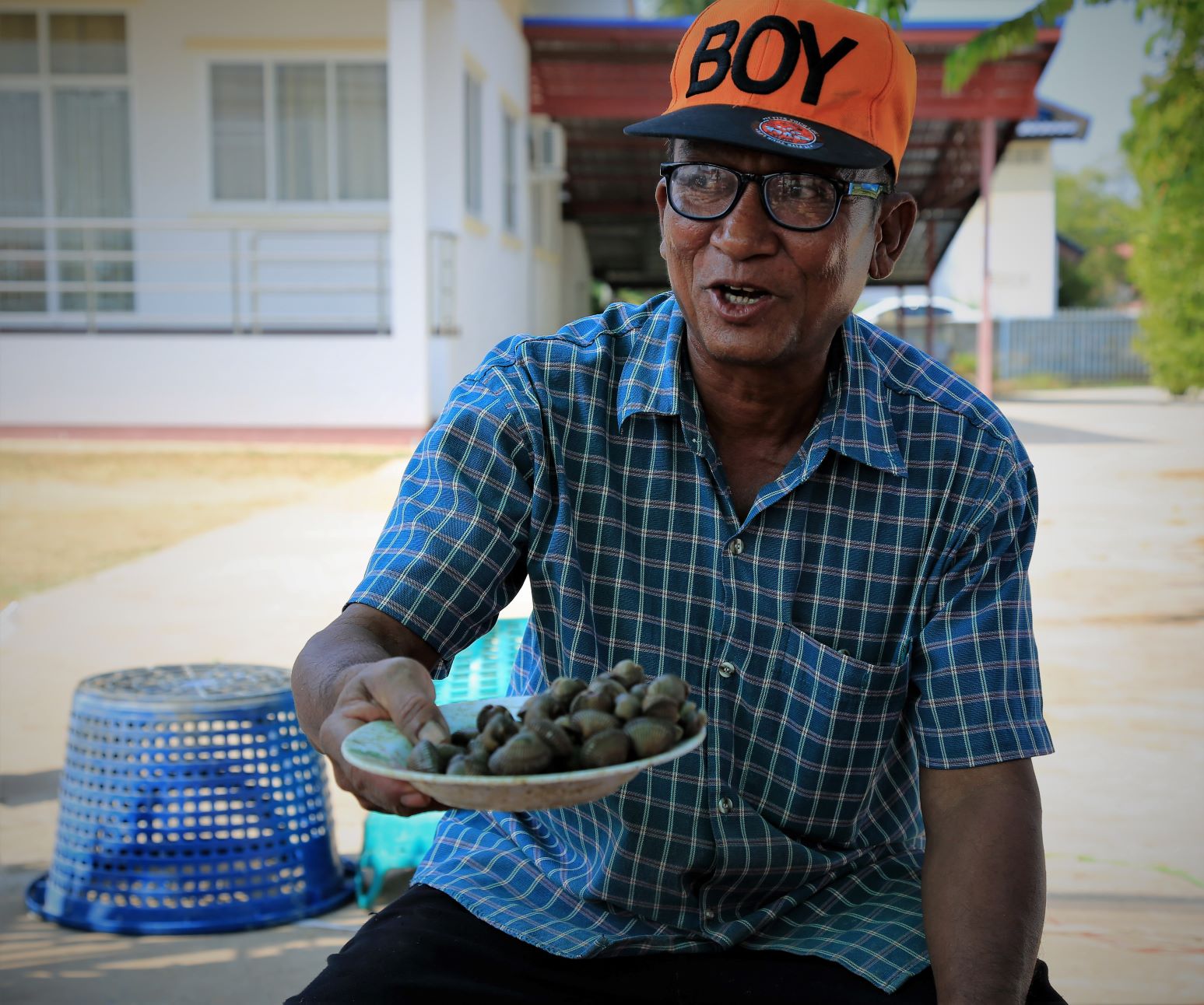 Auf einer Fläche von 160‘000 m2 baut er Reis an. Der jährliche Ertrag beträgt ca. 20  Tonnen bei einer sehr guten Ernte. Der Betrag für das Kilo Reis schwank zwischen 6 Bath und 18 Bath. Aktuell liegt er bei 12 Bath oder 0.31 Euro.