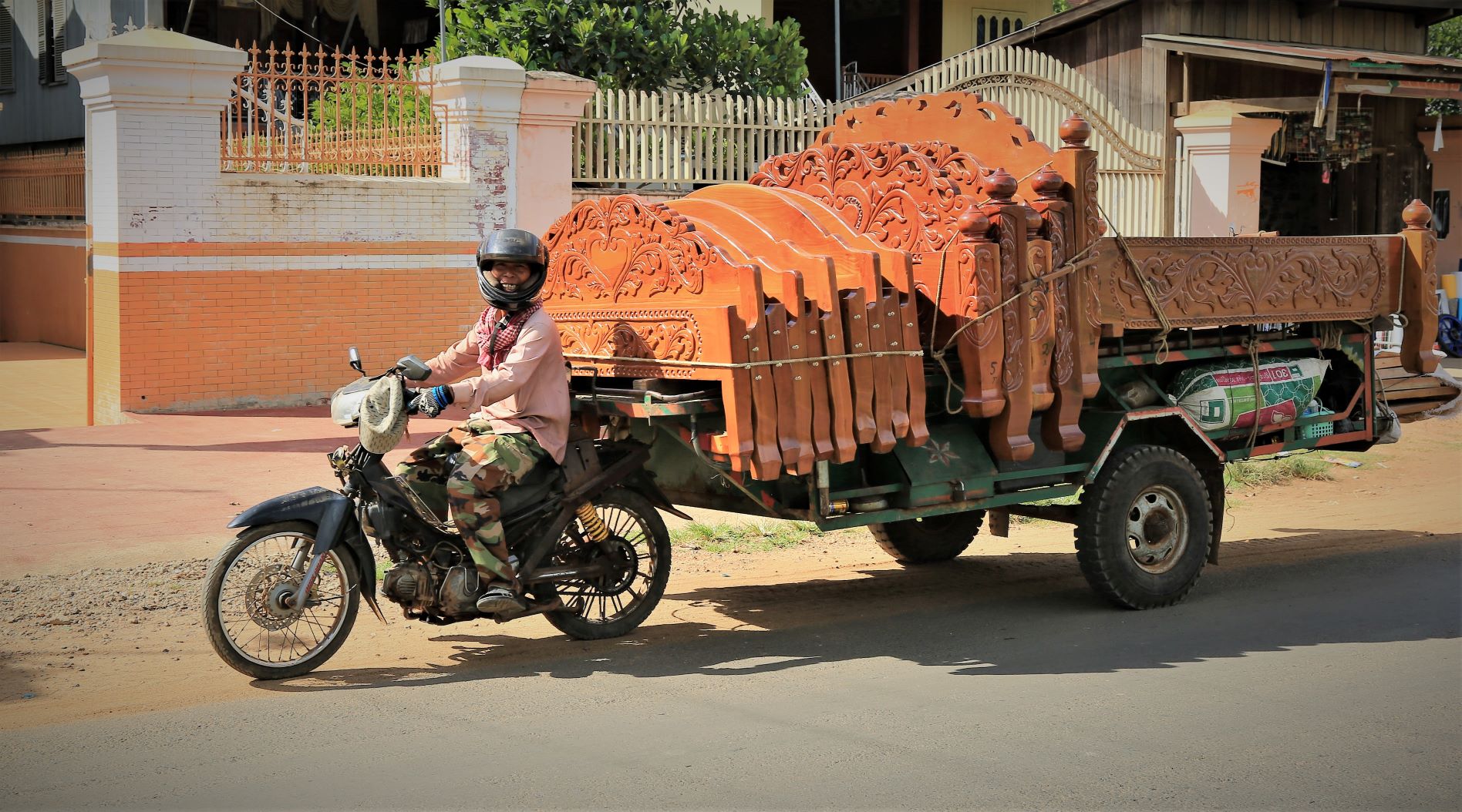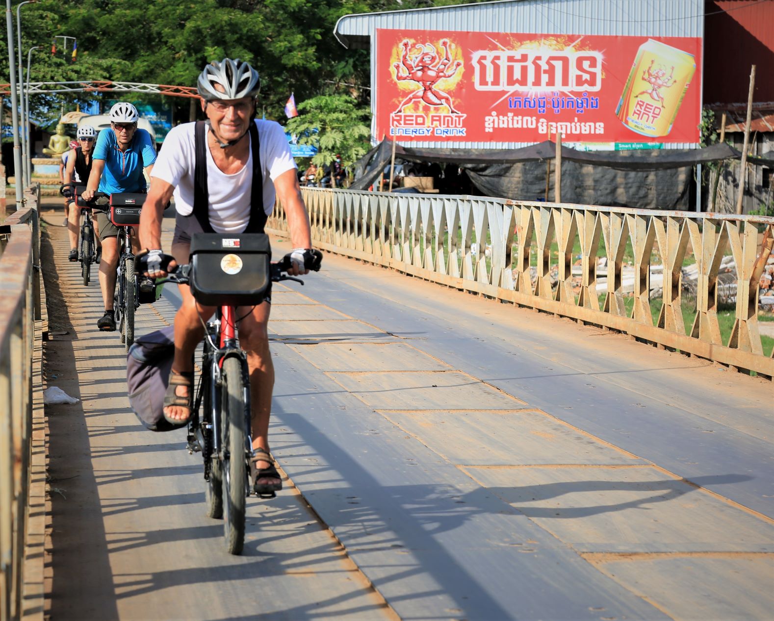 Suor Sdei, geht den meisten von uns Radlern noch schwer über die Lippen. Hello, ist da einfacher. Das weiß auch die kambotschanische Bevölkerung, und schmettert uns den Gruß verbunden mit einem Lächeln und einer winkenden Handbewegung pausenlos entgegen. Die Freude ist ernst gemeint und animiert uns es ihnen gleich zu tun, bzw. ihnen zuvorzukommen. Oft überholen wir Schulkinder auf Fahrrädern oder schwer beladenen Motorräder und überraschen mit einem: `Hello, wie gehts?`, was heute zu interessanten Gesprächen, aber auch zu überstürzten Abbiegemanövern führte.