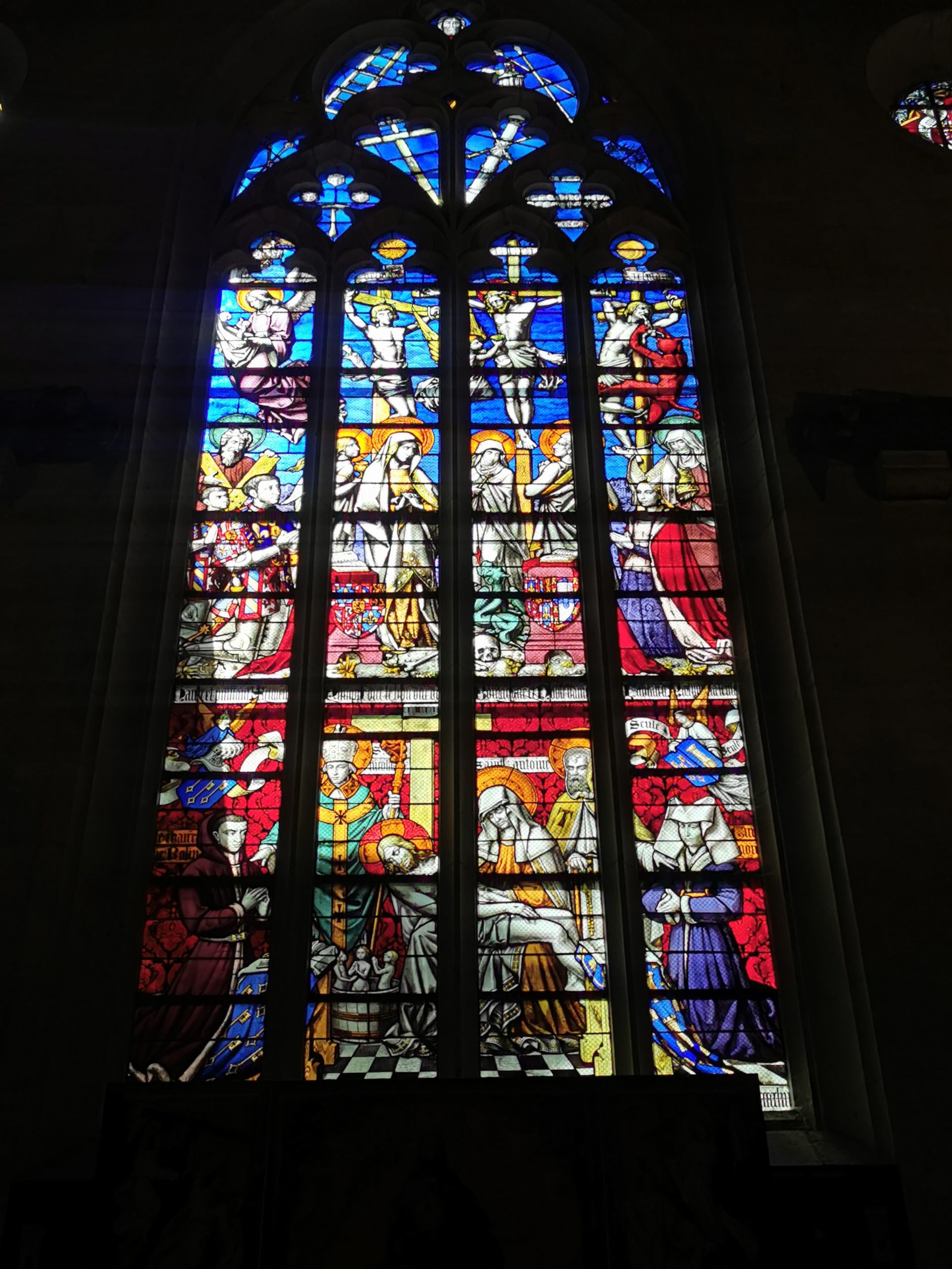 Dann aber hinüber zur gotischen Kathedrale Saint Jean. Höhepunkt ist eine astronomische Uhr, bei der ulkigerweise die Sonne um die Erde kreist. Muss vor Galileo Galilei entstanden sein.