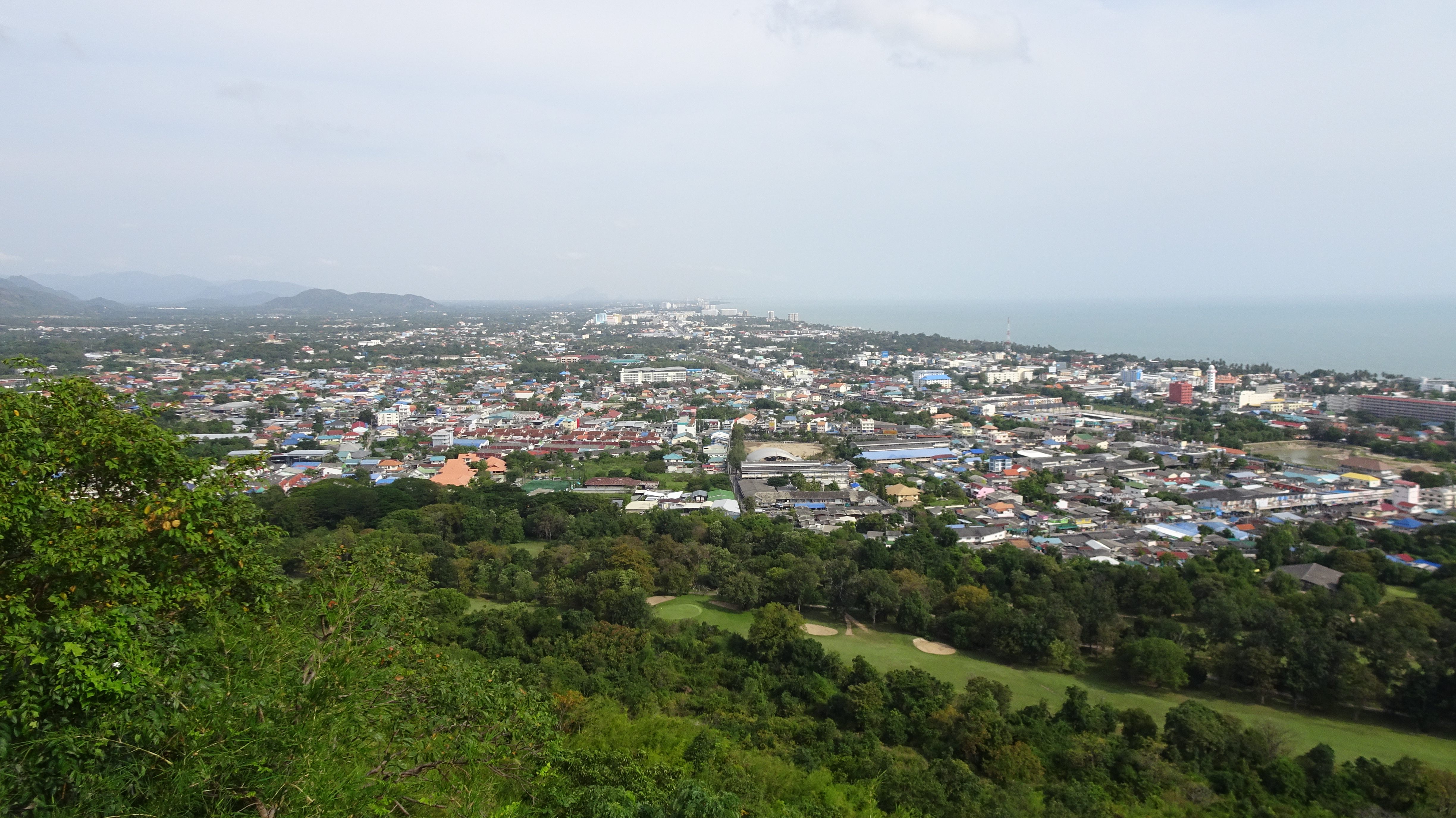 Wir treffen uns aber nach dem späten Frühstück zunächst fast alle zu der von Troy angebotenen kurzen Radrundtour mit Blick von oben auf Hua-Hin. Die Straße zum 5-Sterne-Blick hat es dann aber in sich. Sie schlängelt sich im Rampenformat mit bis zu 13% aufwärts. Da bleibt kein Trikot und keine Stirn trocken.