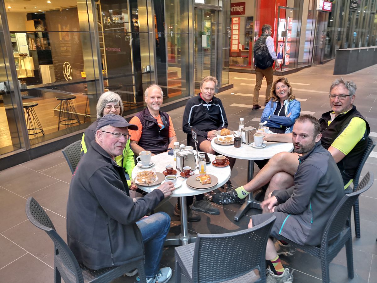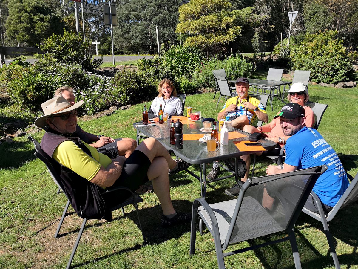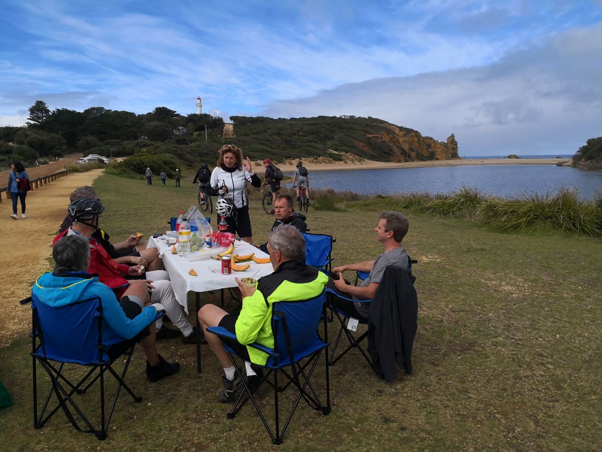 Auch bei der Ausfahrt zeigt sich Melbourne von der schönen Seite. Ein wenig vom Hotel den Berg runter, dann am Meer entlang. Lee, der uns seit Melbourne begleitet, findet nach 25 km ein schönes Radcafé, wir lassen uns Zeit, da es gut rollt. Hier eine Pause, da ein Schwätzchen, hier ein Kaffee. Um kurz vor 13:00 Uhr dann Mittagpause, wir haben ja Zeit.