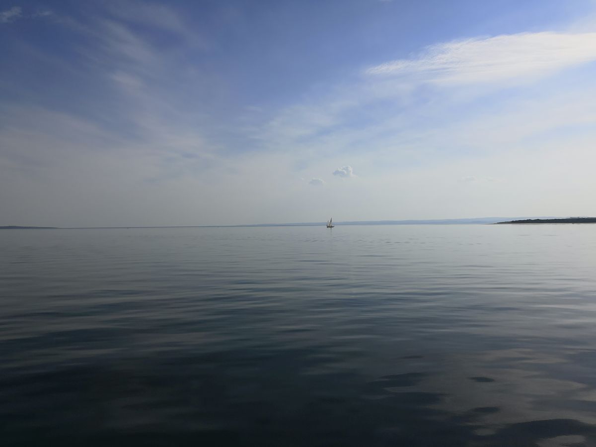 Nun, um sicher zu gehen, checke ich noch einmal den Fahrplan. Keine Fähre um 15:50 Uhr mehr, die letzte verwertbare fährt um 14:30 Uhr. Das ist in einer guten Stunde. Es sind 23 km bis zum Ableger. Die letzten Bissen fliegen mit Schwung in den Mund und fünf Minuten später sitzen wir auf den Rädern. Kommen gut voran, fahren einen 26er-Schnitt.