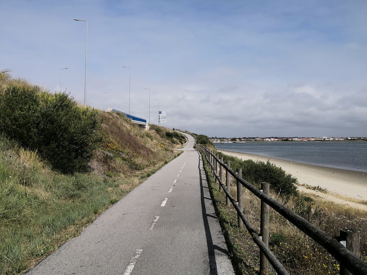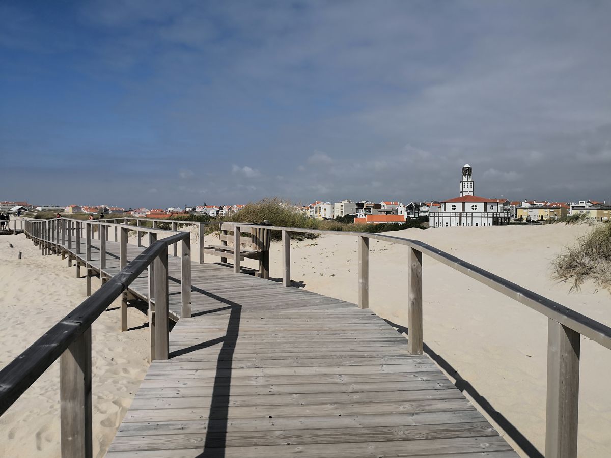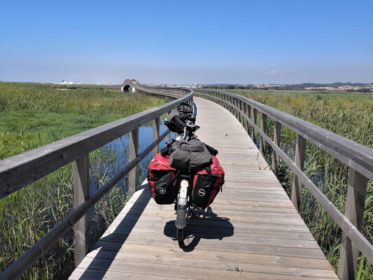 Während die ersten Etappen vor allem durch das Inland gingen und entsprechend auch den einen oder anderen Hügel beinhalteten, führt die Strecke zwischen Coimbra und Porto vor allem am Meer entlang. Und als wäre das nicht schon schön genug, haben die Portugiesen hier mit viel Aufwand (und meist auch Können) einen wunderbaren Radweg angelegt, der teilweise auf Holzbohlen durch die Dünen, teilweise durch Naturschutzgebiete geht. Wäre da nicht der Nordwind gewesen, der immer am Nachmittag an Stärke gewann und das Fahrvergnügen ein wenig einschränkte, ich wäre an beiden Tagen mit einem breiten Grinsen am Ziel angekommen! Dankenswerter Weise biegt an beiden Tagen die Route auf den letzten Kilometern nach Osten ab, und der Wind wird vom Feind zum Freund. Zumindest mit einem kräftigen Seitenschub.