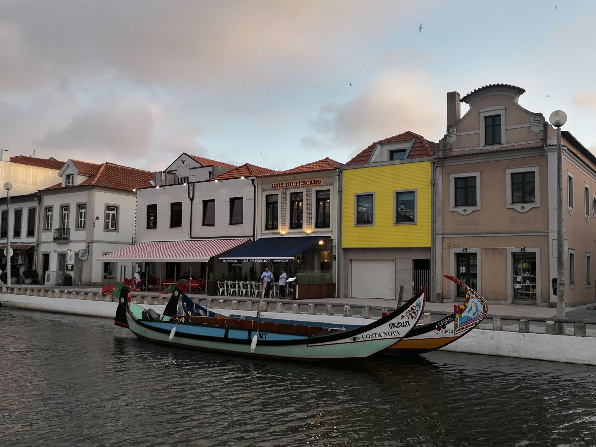 Auch die Fähre bei Aveiro, die gut 40 Kilometer abkürzt, fährt alle halbe Stunde und nimmt Fahrräder mit. Einzig Aveiro steht als Etappenziel zur Disposition. „Das Venedig Portugals“ ist dann doch eine maßlose Übertreibung und Costa Nova scheint mir die deutlich reizvolleres Übernachtungsstation zu sein. Mal schauen, wie das mit ein paar Tagen Abstand ausschaut.