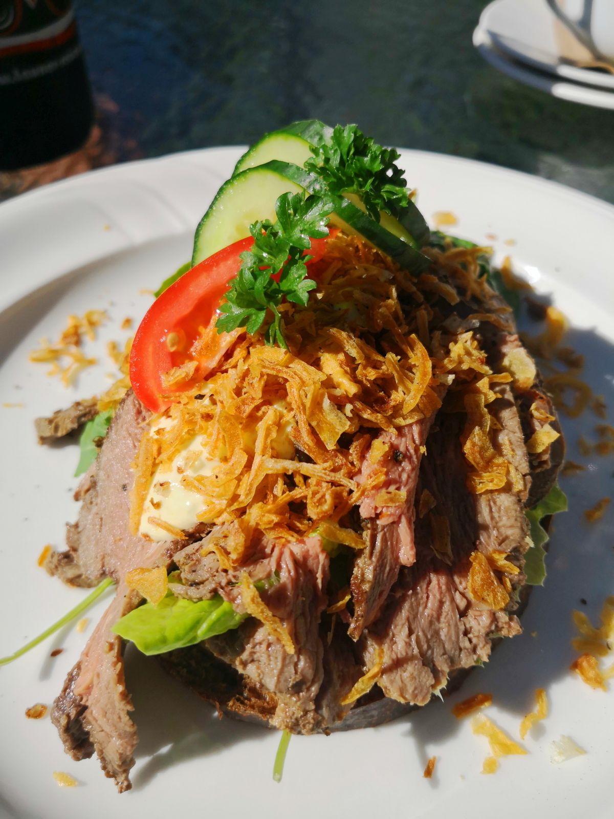 Nun, um sicher zu gehen, checke ich noch einmal den Fahrplan. Keine Fähre um 15:50 Uhr mehr, die letzte verwertbare fährt um 14:30 Uhr. Das ist in einer guten Stunde. Es sind 23 km bis zum Ableger. Die letzten Bissen fliegen mit Schwung in den Mund und fünf Minuten später sitzen wir auf den Rädern. Kommen gut voran, fahren einen 26er-Schnitt.