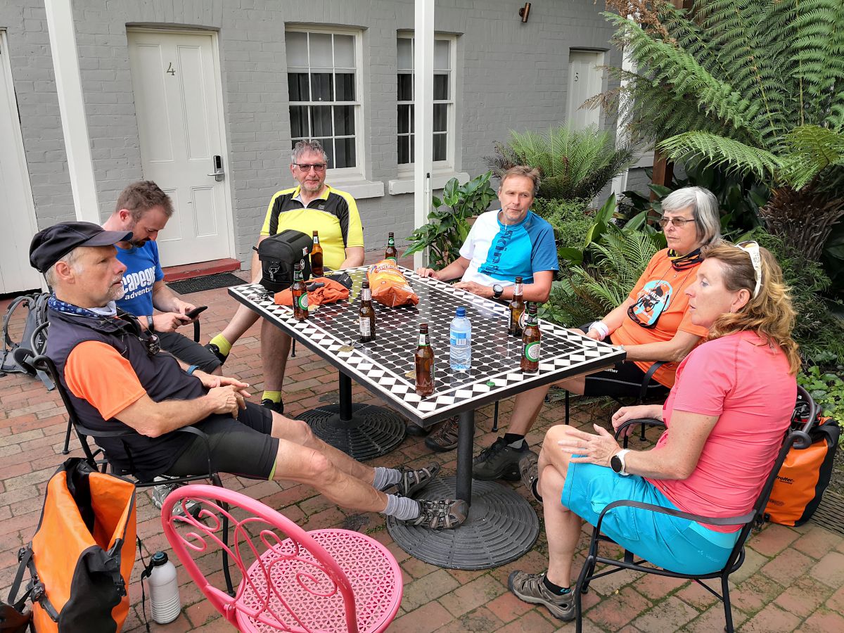 Auch bei der Ausfahrt zeigt sich Melbourne von der schönen Seite. Ein wenig vom Hotel den Berg runter, dann am Meer entlang. Lee, der uns seit Melbourne begleitet, findet nach 25 km ein schönes Radcafé, wir lassen uns Zeit, da es gut rollt. Hier eine Pause, da ein Schwätzchen, hier ein Kaffee. Um kurz vor 13:00 Uhr dann Mittagpause, wir haben ja Zeit.