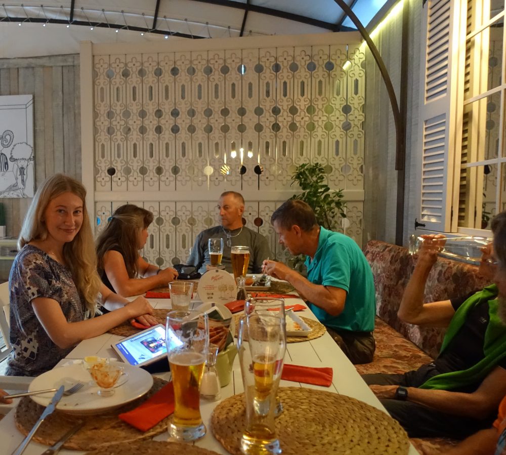 Nach dem wir freien Nachmittag genossen hatten, ging unsere Mannschaft in ein usbekisch eingerichtetes Lokal, wo ich die Reiseleitung an Inna offiziell übergab und somit meine erste knapp 1600kilometerlange Fahrradreise beendete.