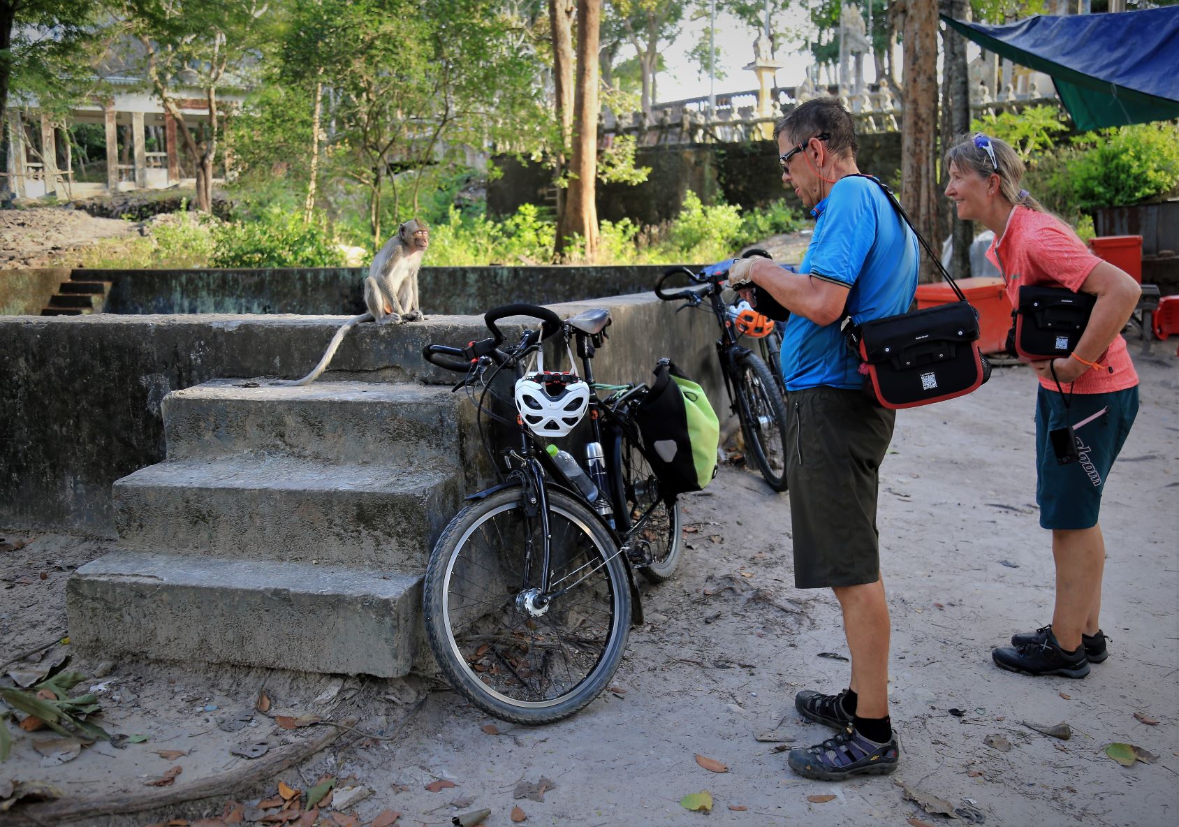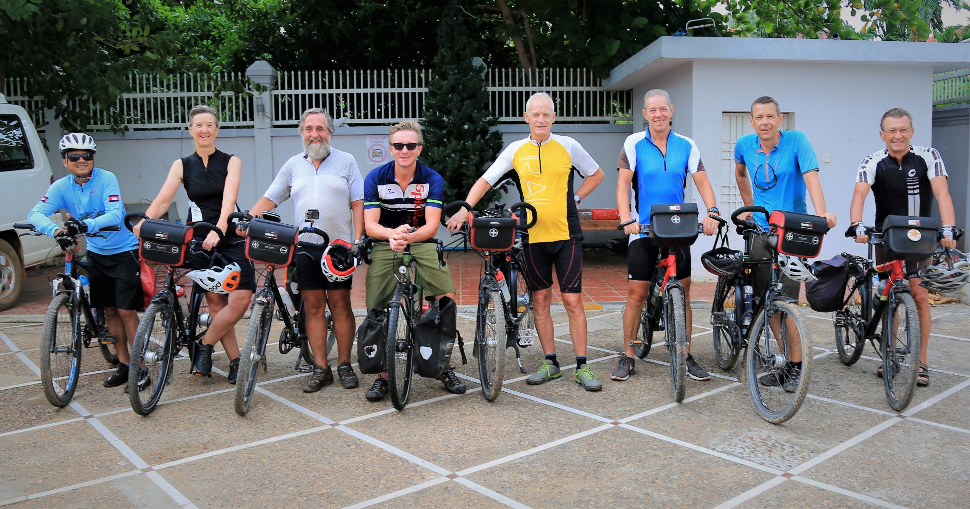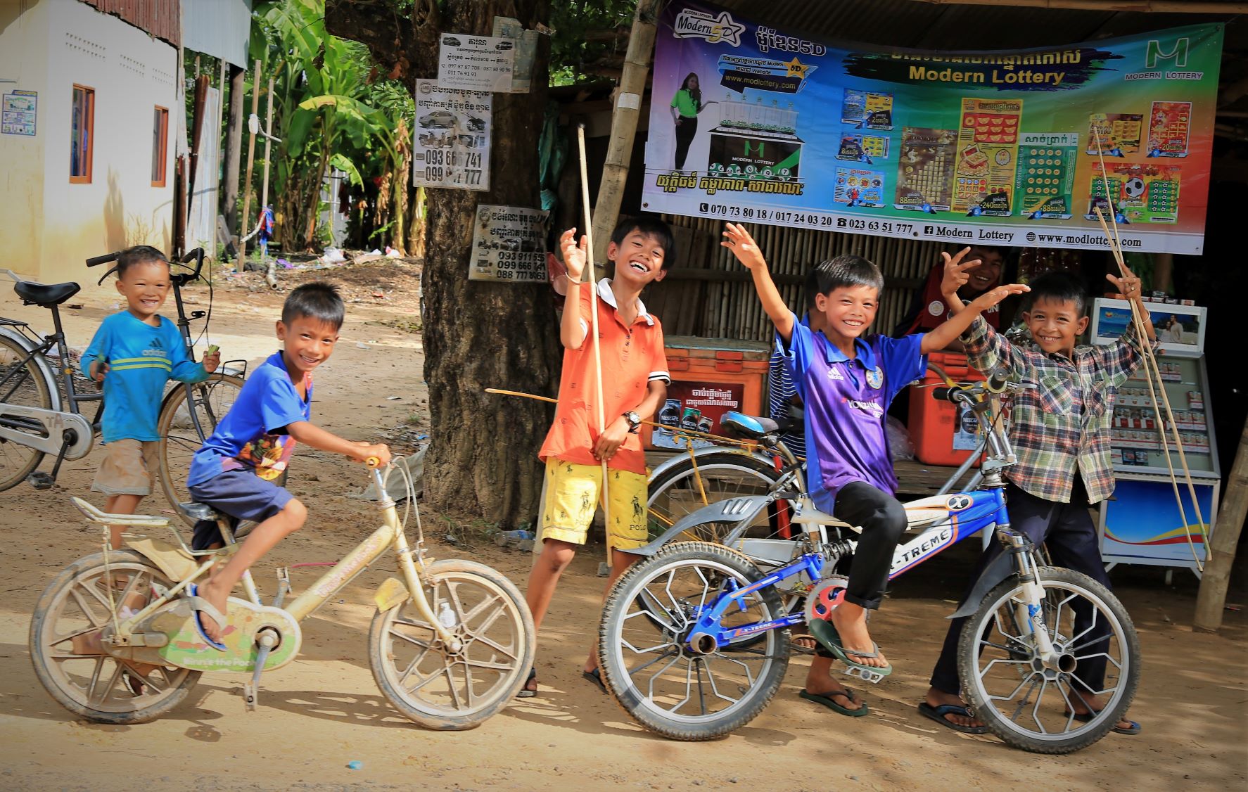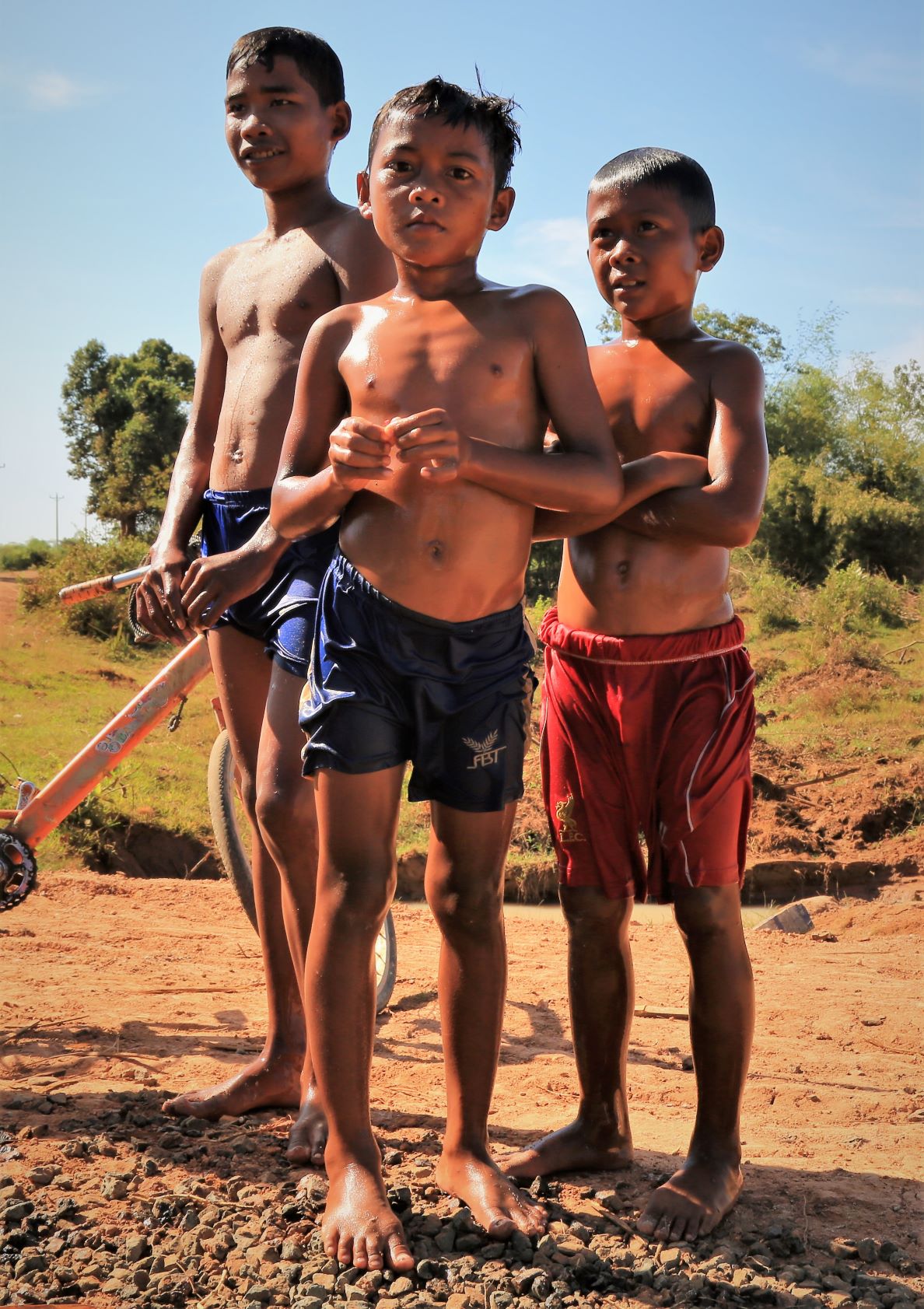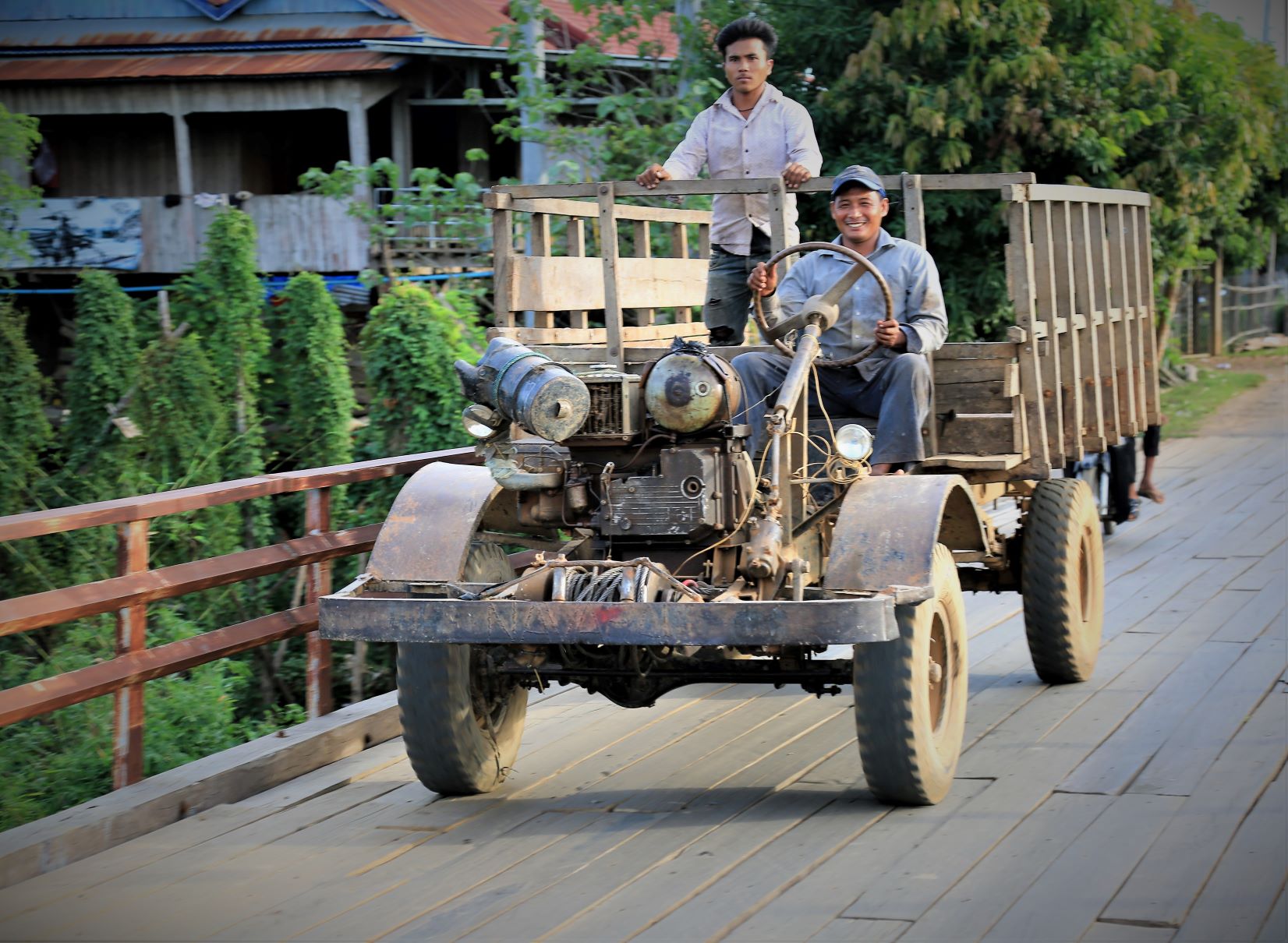 Suor Sdei, geht den meisten von uns Radlern noch schwer über die Lippen. Hello, ist da einfacher. Das weiß auch die kambotschanische Bevölkerung, und schmettert uns den Gruß verbunden mit einem Lächeln und einer winkenden Handbewegung pausenlos entgegen. Die Freude ist ernst gemeint und animiert uns es ihnen gleich zu tun, bzw. ihnen zuvorzukommen. Oft überholen wir Schulkinder auf Fahrrädern oder schwer beladenen Motorräder und überraschen mit einem: `Hello, wie gehts?`, was heute zu interessanten Gesprächen, aber auch zu überstürzten Abbiegemanövern führte.