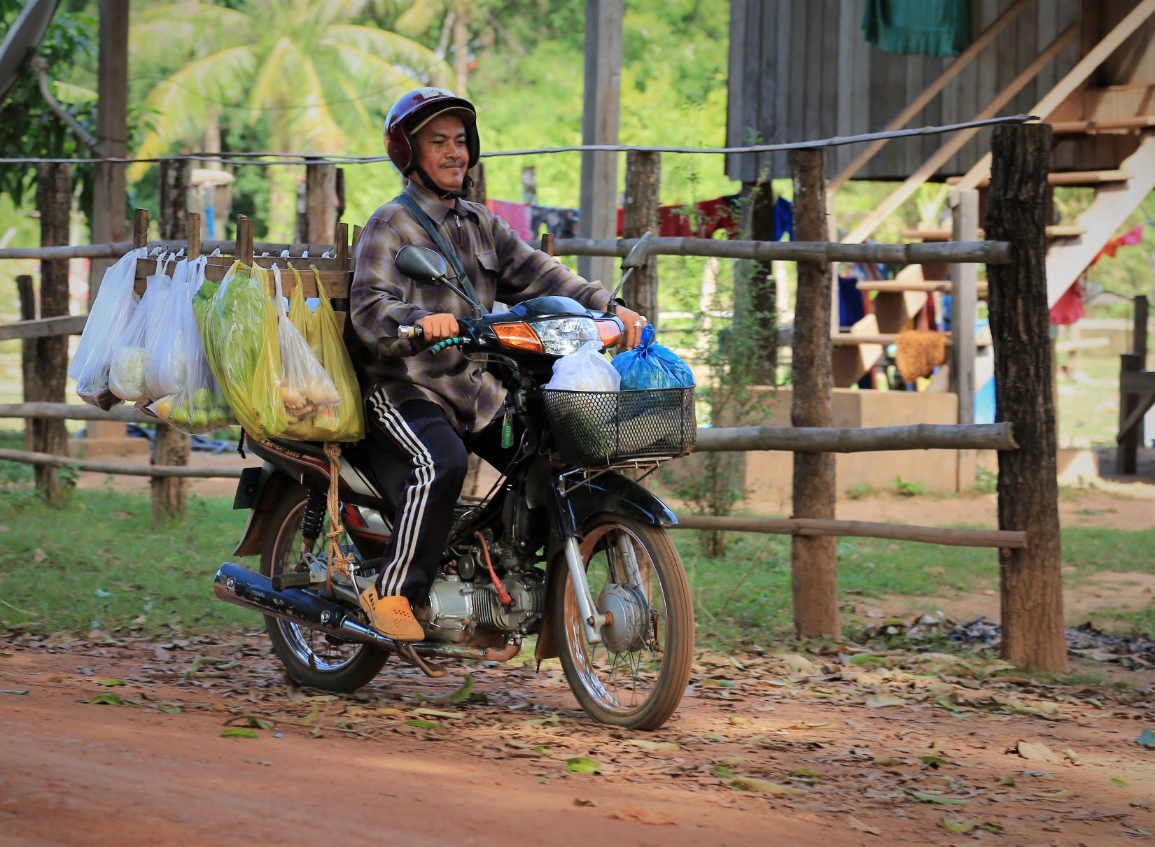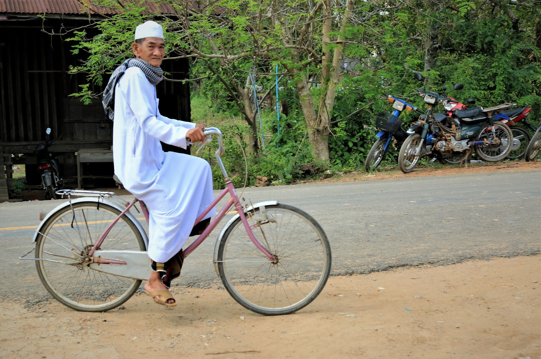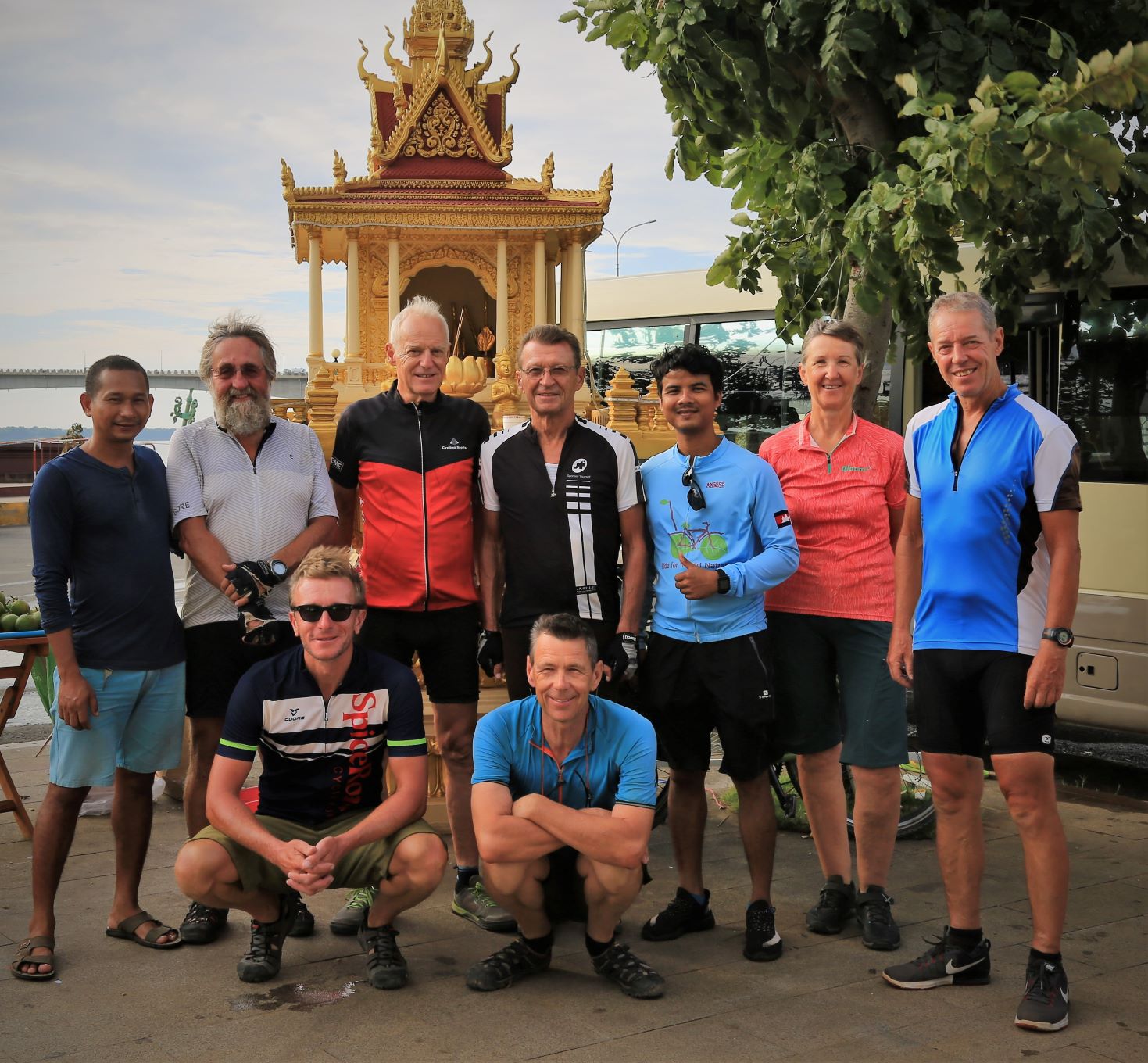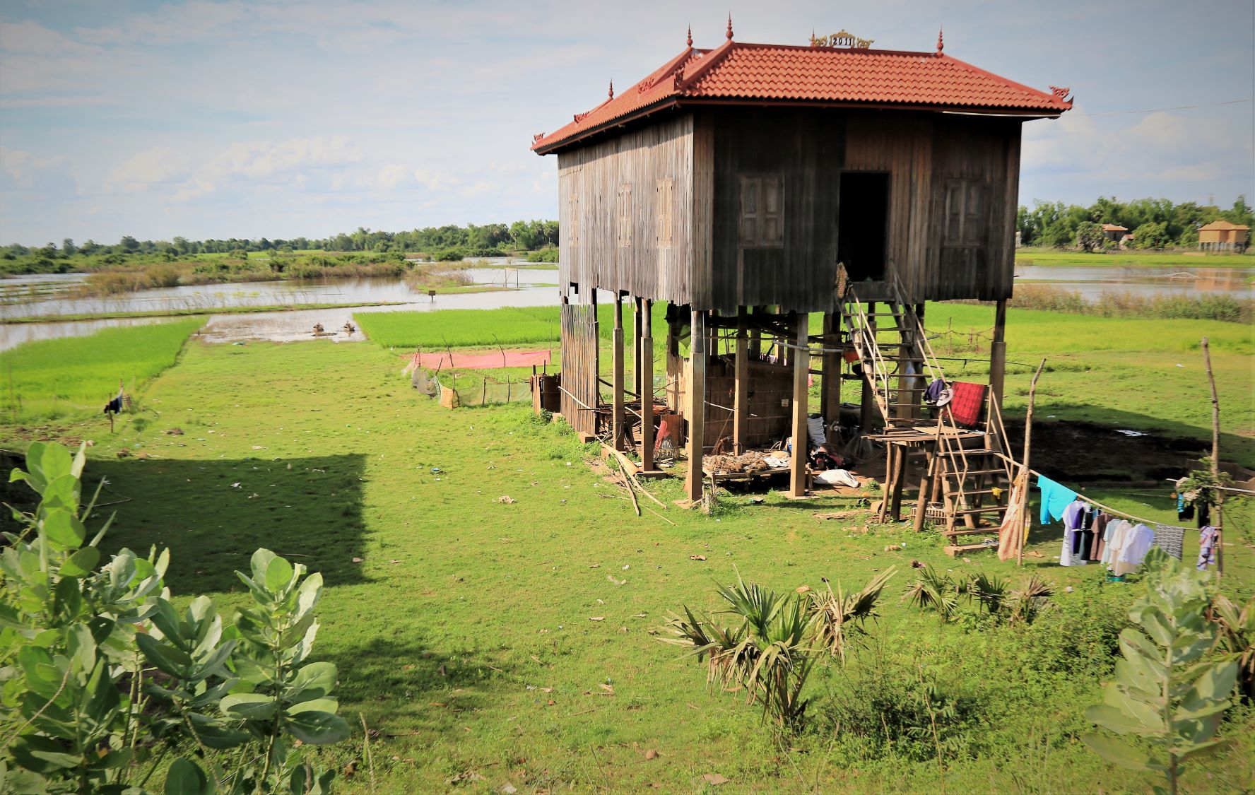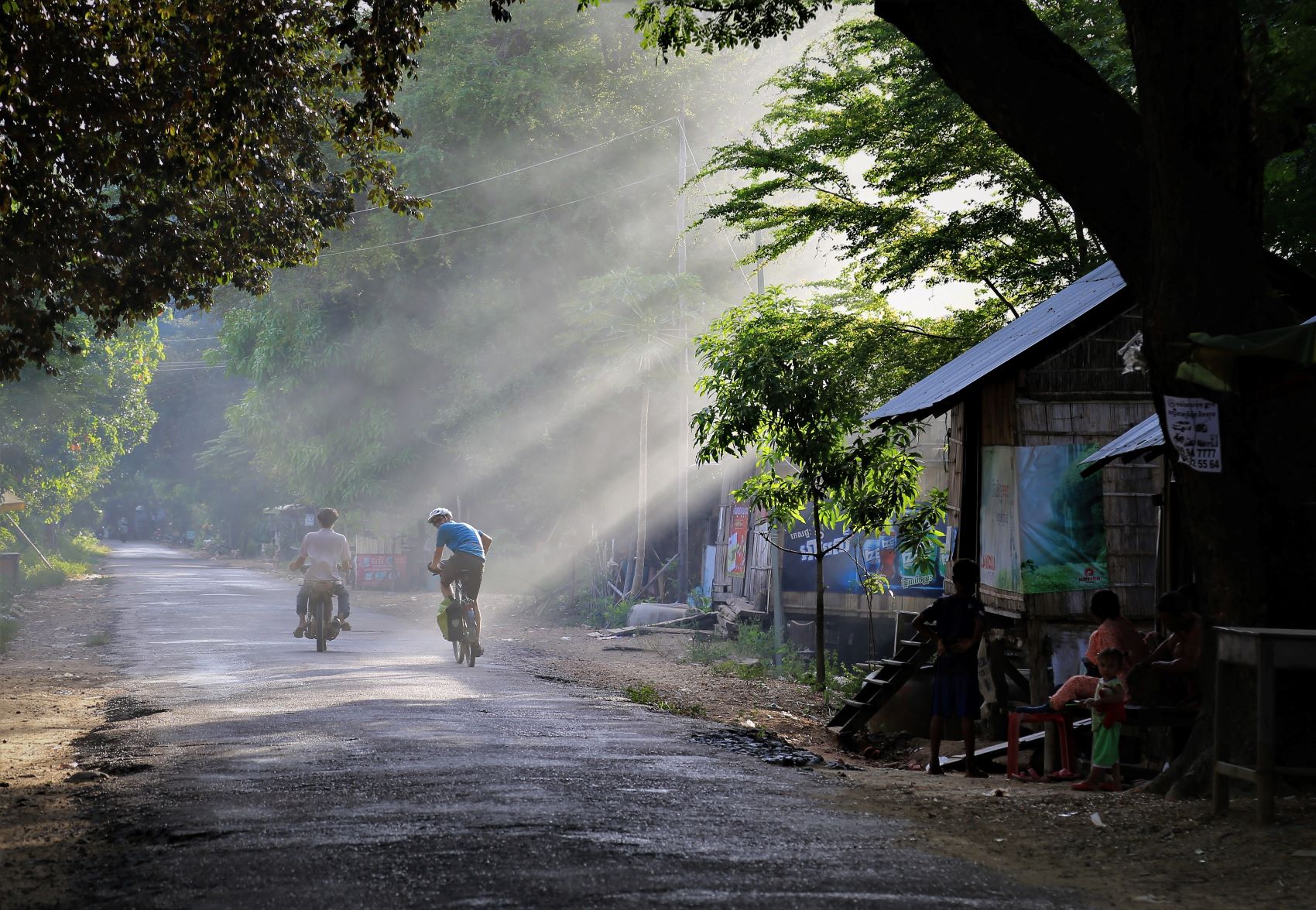 Suor Sdei, geht den meisten von uns Radlern noch schwer über die Lippen. Hello, ist da einfacher. Das weiß auch die kambotschanische Bevölkerung, und schmettert uns den Gruß verbunden mit einem Lächeln und einer winkenden Handbewegung pausenlos entgegen. Die Freude ist ernst gemeint und animiert uns es ihnen gleich zu tun, bzw. ihnen zuvorzukommen. Oft überholen wir Schulkinder auf Fahrrädern oder schwer beladenen Motorräder und überraschen mit einem: `Hello, wie gehts?`, was heute zu interessanten Gesprächen, aber auch zu überstürzten Abbiegemanövern führte.