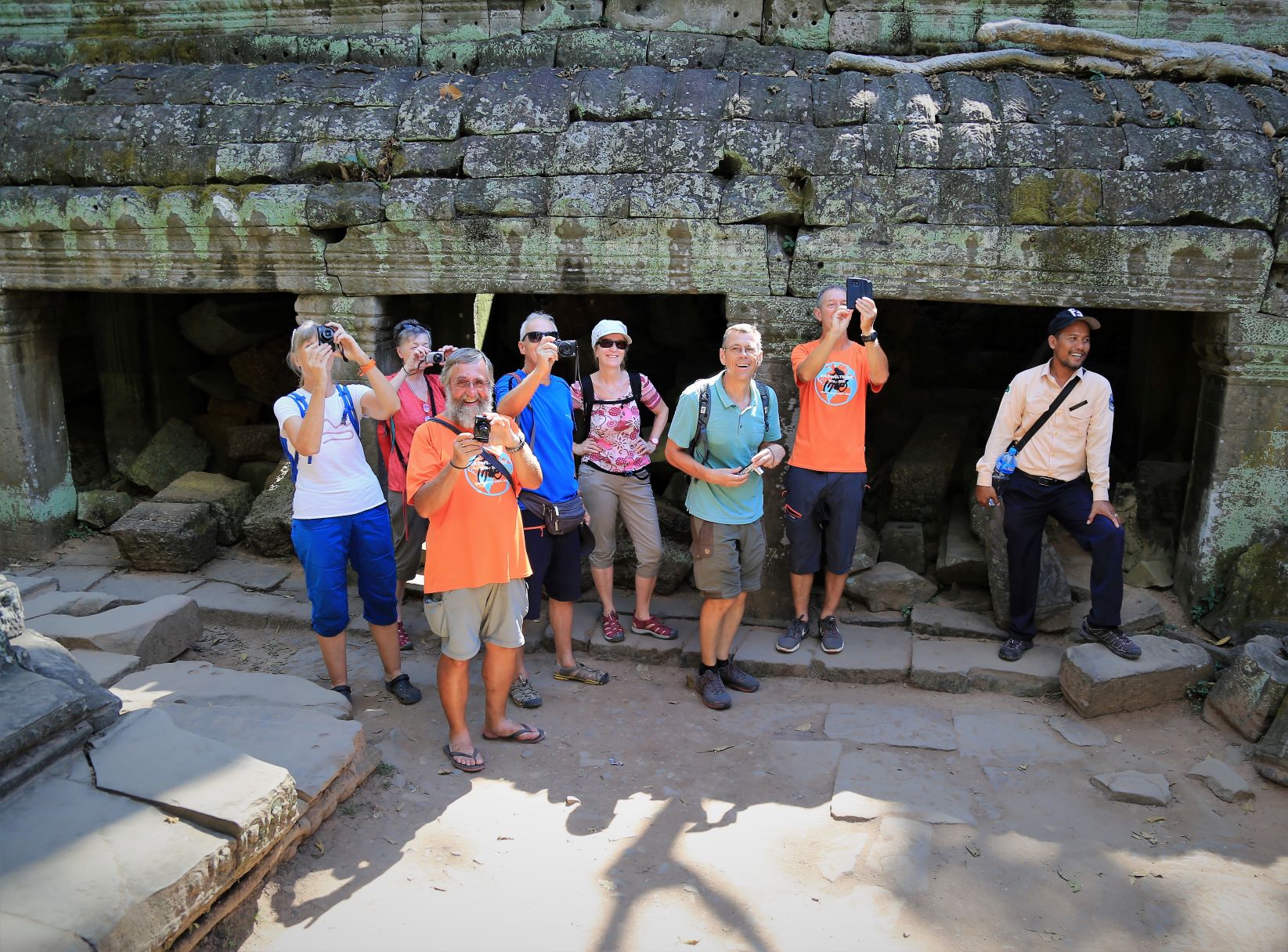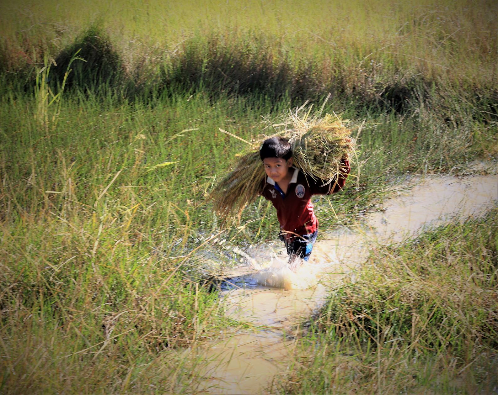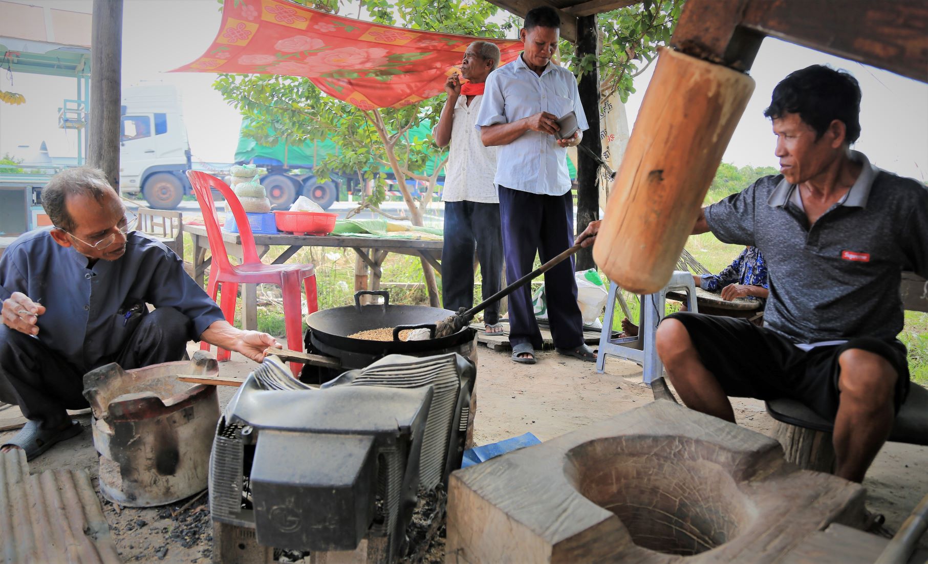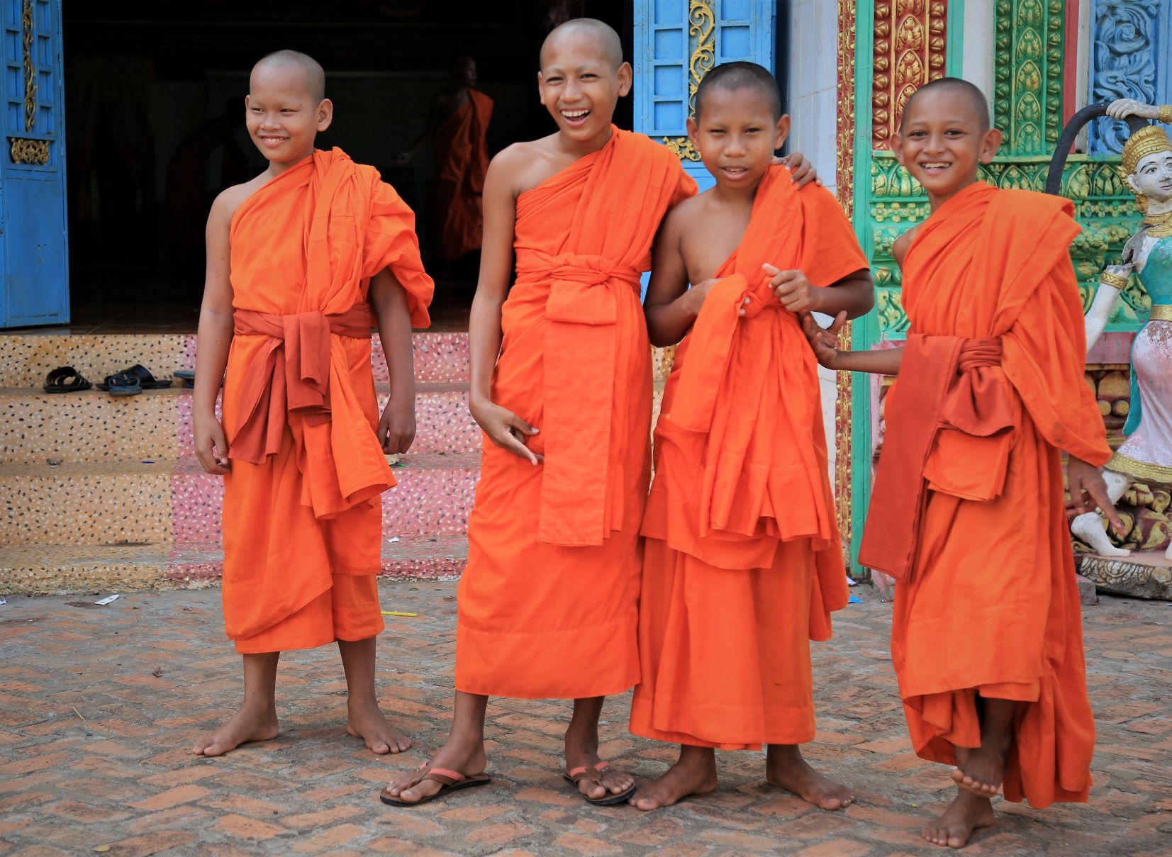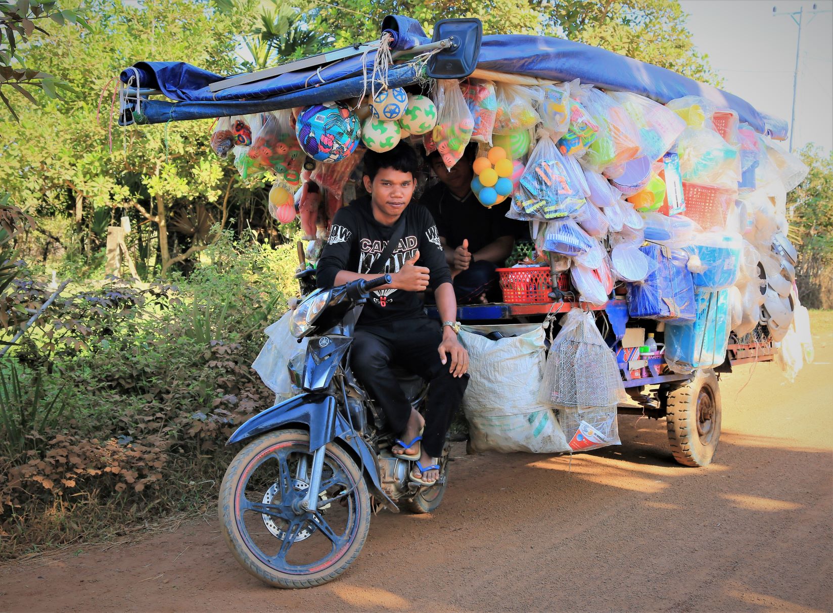 Suor Sdei, geht den meisten von uns Radlern noch schwer über die Lippen. Hello, ist da einfacher. Das weiß auch die kambotschanische Bevölkerung, und schmettert uns den Gruß verbunden mit einem Lächeln und einer winkenden Handbewegung pausenlos entgegen. Die Freude ist ernst gemeint und animiert uns es ihnen gleich zu tun, bzw. ihnen zuvorzukommen. Oft überholen wir Schulkinder auf Fahrrädern oder schwer beladenen Motorräder und überraschen mit einem: `Hello, wie gehts?`, was heute zu interessanten Gesprächen, aber auch zu überstürzten Abbiegemanövern führte.