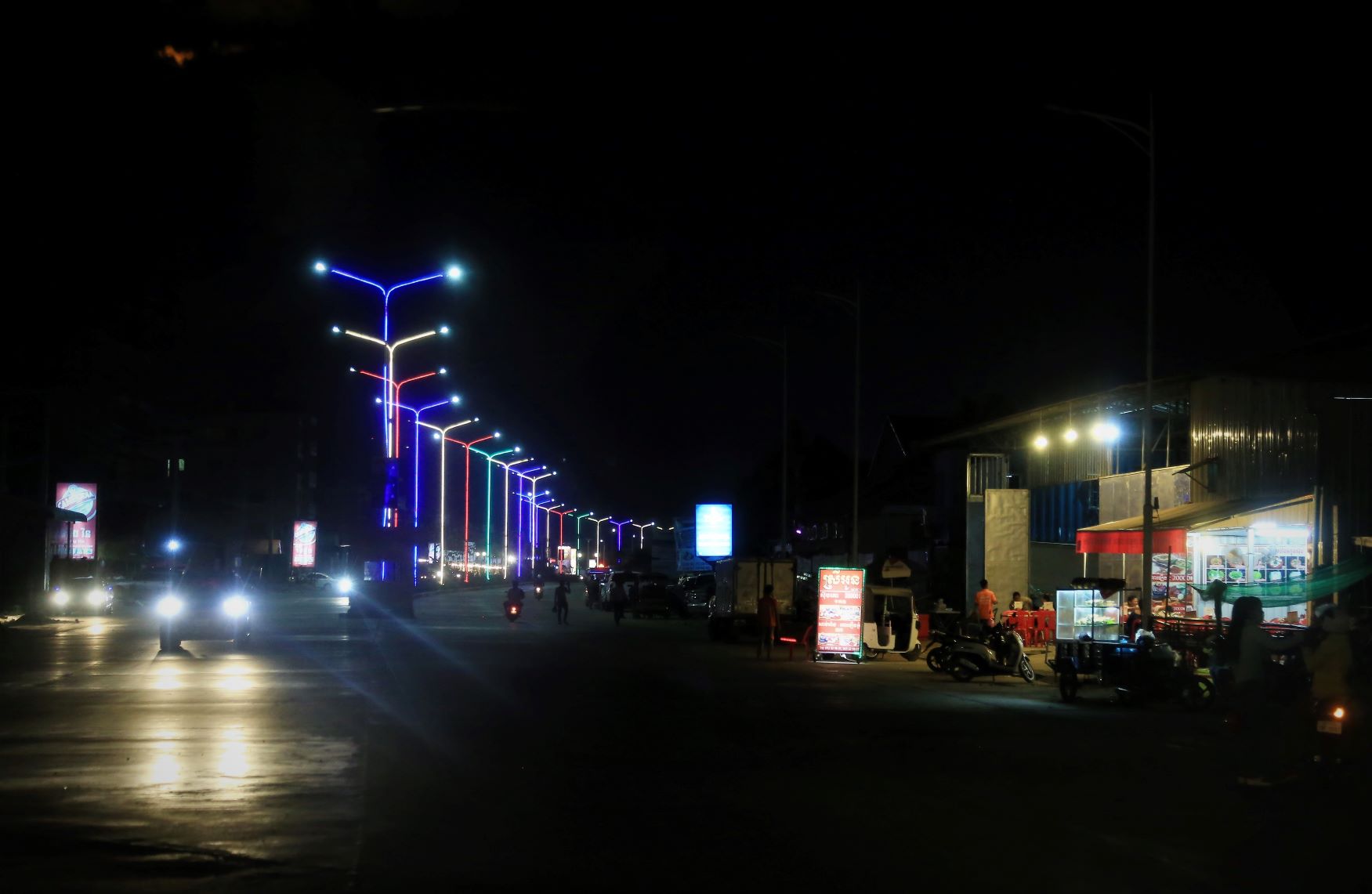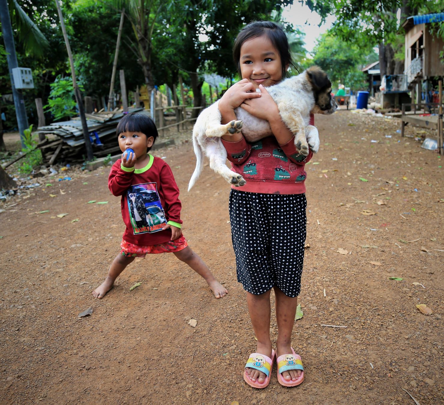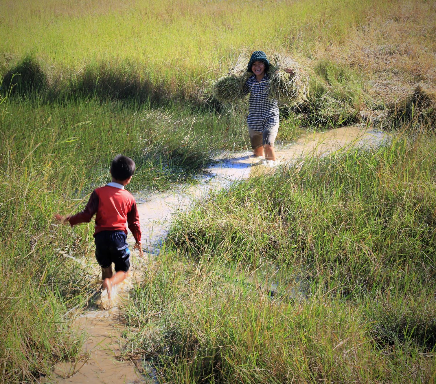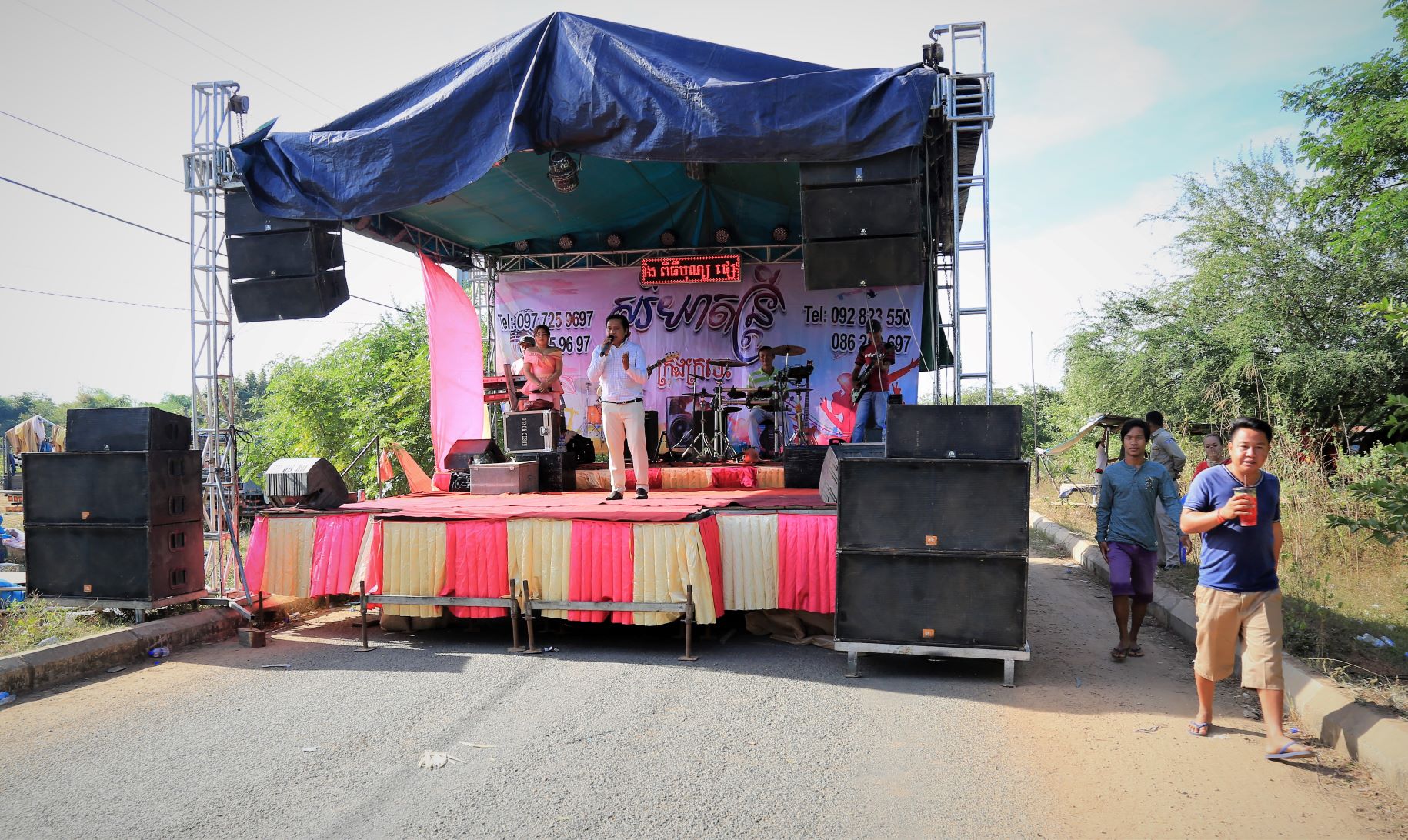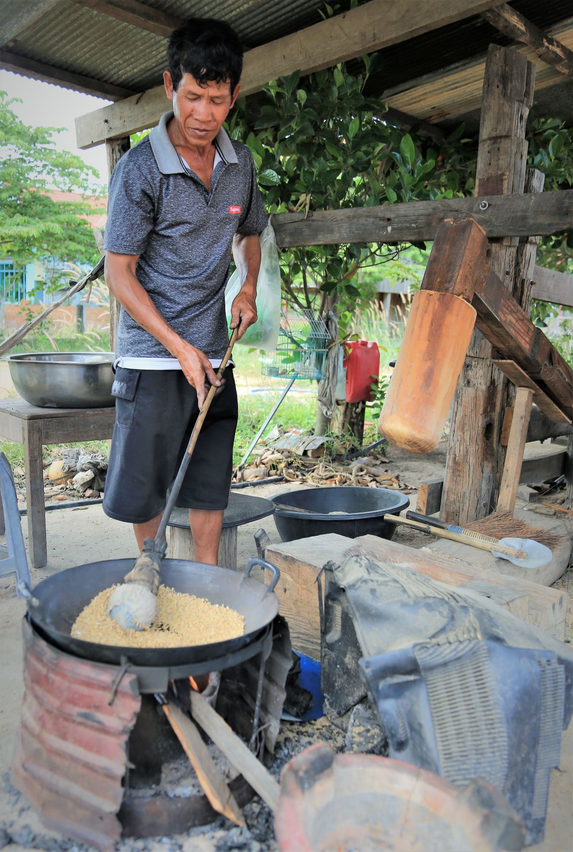 Suor Sdei, geht den meisten von uns Radlern noch schwer über die Lippen. Hello, ist da einfacher. Das weiß auch die kambotschanische Bevölkerung, und schmettert uns den Gruß verbunden mit einem Lächeln und einer winkenden Handbewegung pausenlos entgegen. Die Freude ist ernst gemeint und animiert uns es ihnen gleich zu tun, bzw. ihnen zuvorzukommen. Oft überholen wir Schulkinder auf Fahrrädern oder schwer beladenen Motorräder und überraschen mit einem: `Hello, wie gehts?`, was heute zu interessanten Gesprächen, aber auch zu überstürzten Abbiegemanövern führte.