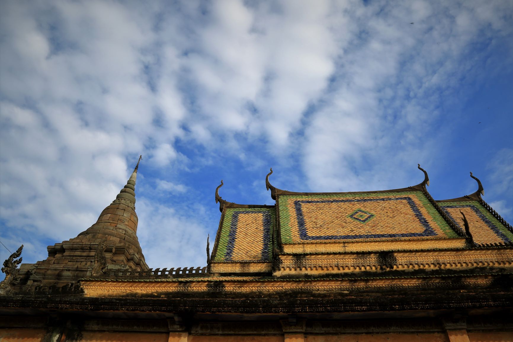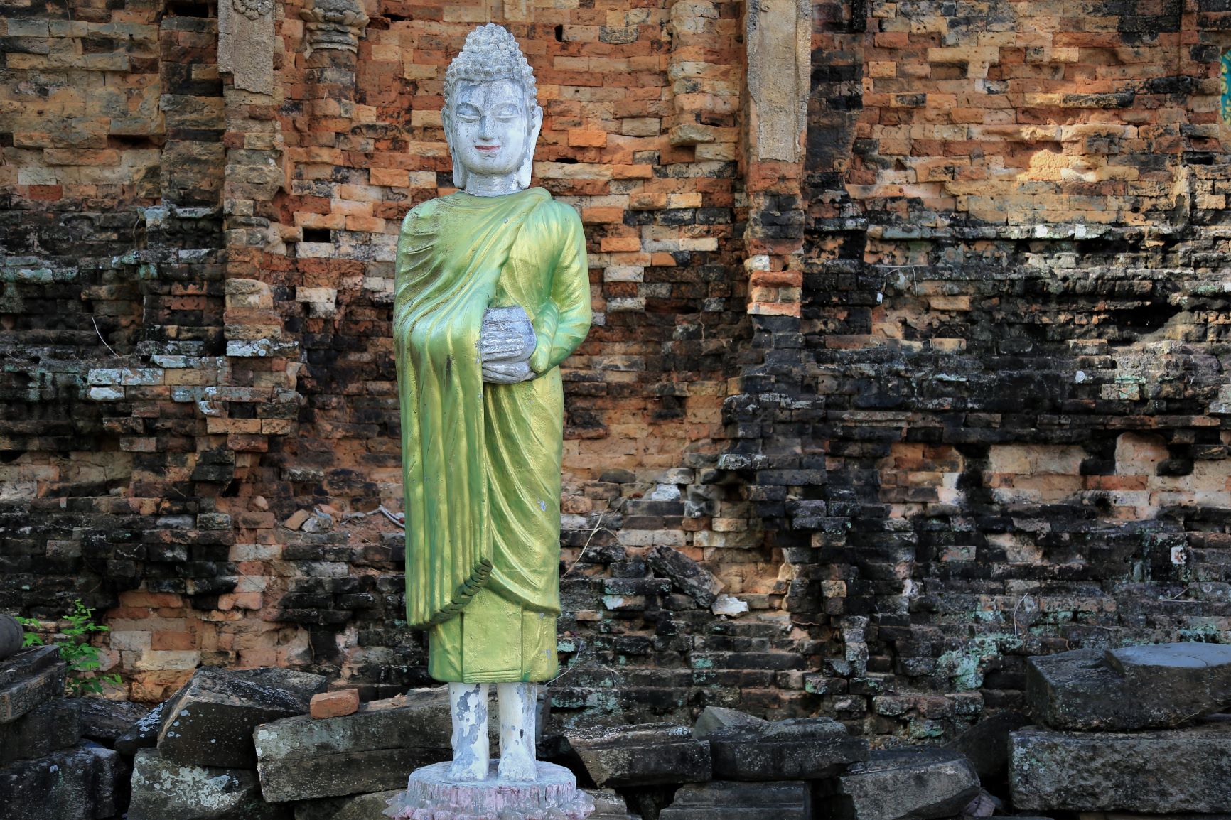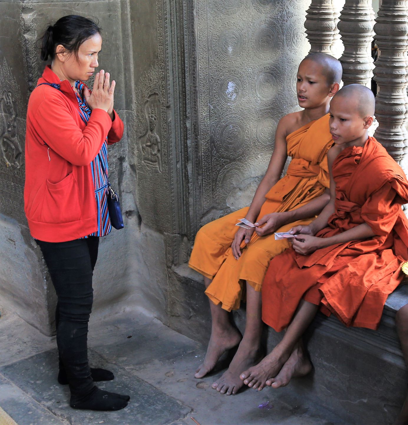 Die meisten der großen Religionen waren am heutigen Tag präsent. Da eine katholische Kirche, dort ruft der Muezzin (mit einer wunderbaren sonoren Stimme) zum Freitagsgebet und hunderte Menschen der ethnischen Minderheit der Cham , folgen und an der nächsten Ecke reinigt ein buddistischer Mönch den Torbogen zur üppigen Tempelanlage. Keine Ahnung wie sie zu ihren spitituellen Konkurenten stehen, aber scheinbar existieren die unterschiedlichsten Weltanschauungen in diesem Bereich der Erde friedlich nebeneinander. Muss am Klima liegen …