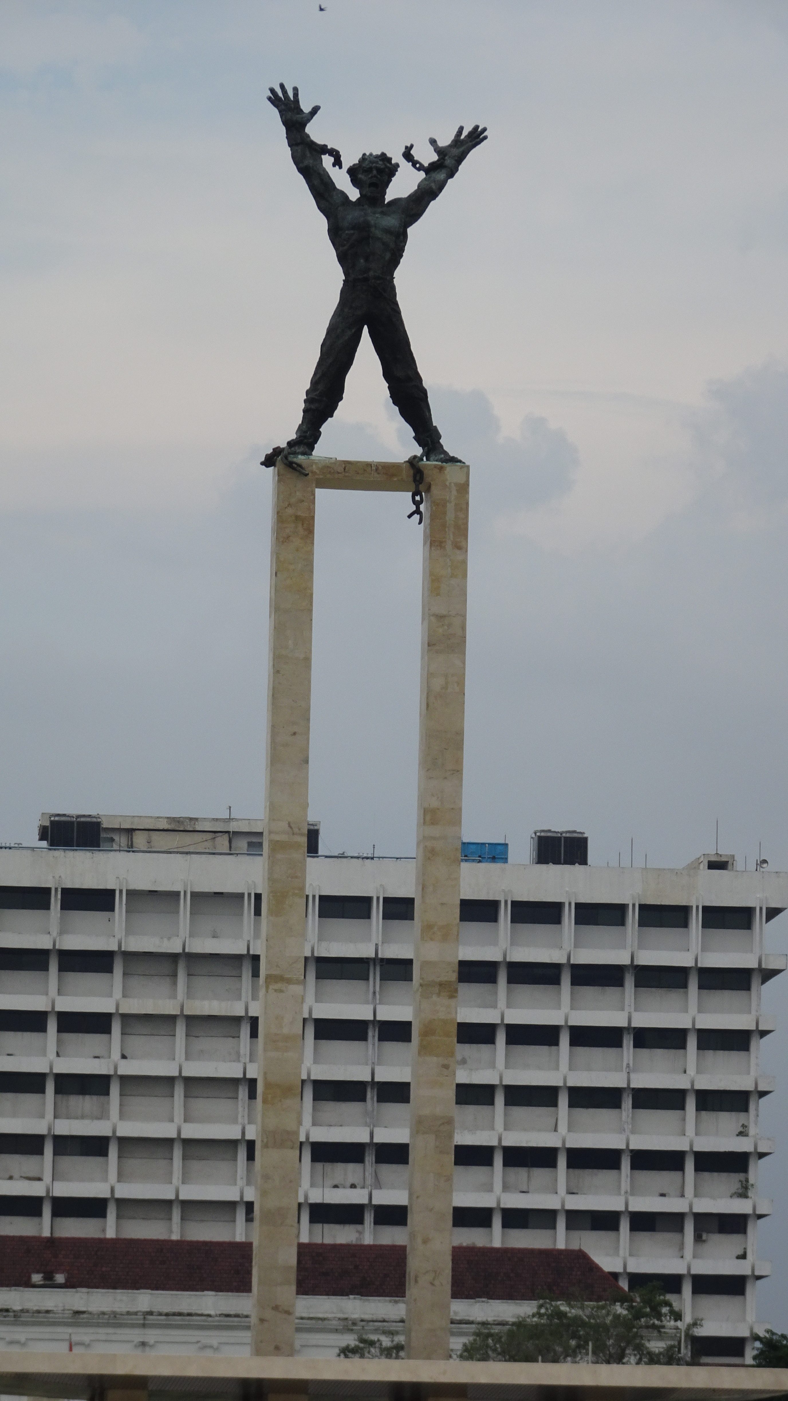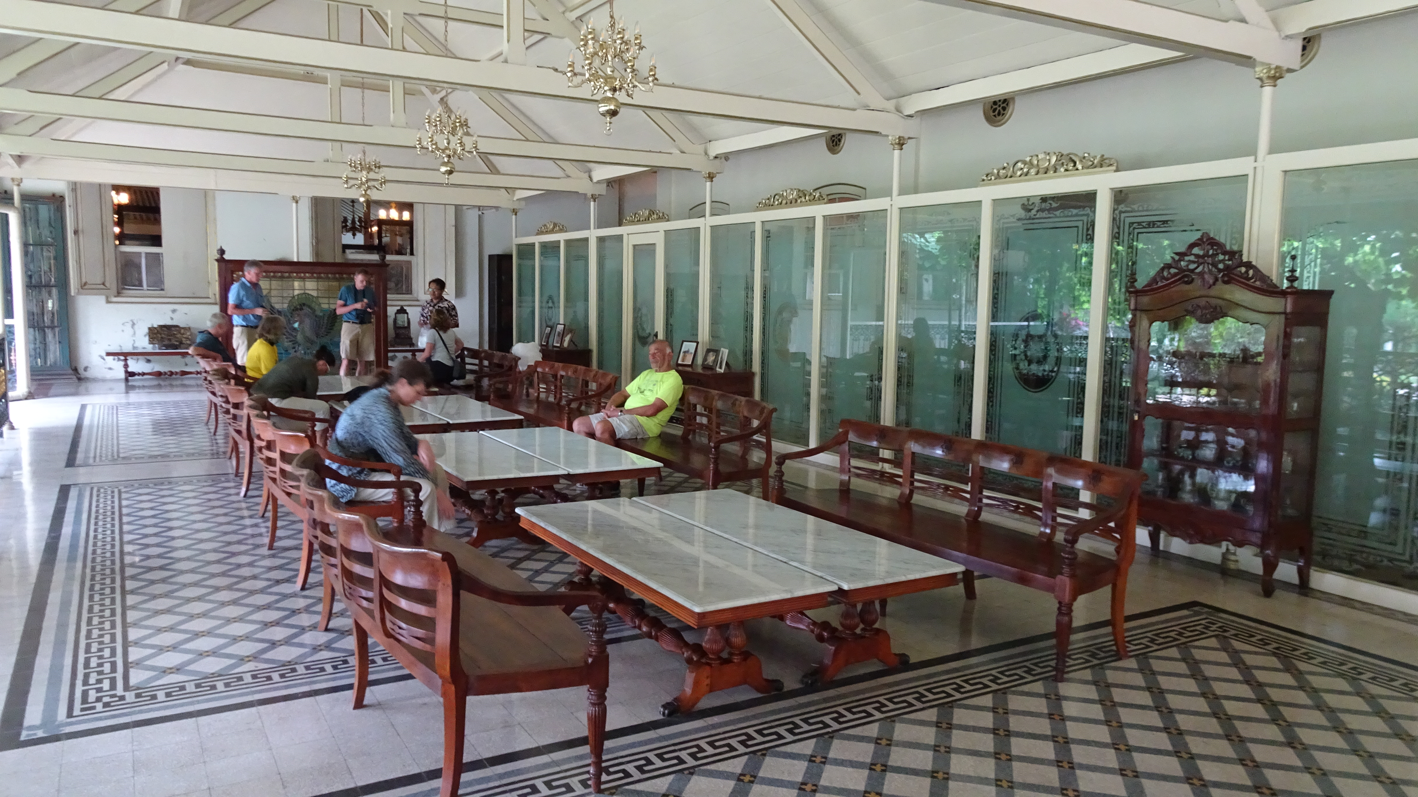 Uns blieb vor der Show sogar noch Zeit, sich in dem dortigen „Touristen-Spielzeugland“ ein wenig umzusehen und einen kleinen Imbiss zu genießen. Drei Kontrollposten wachen darüber, daß die Touris und deren dienstbare Geister in diesem riesigen Areal ungestört „Indonesien“ erleben können. Wie schön, daß wir beim Radeln wirklich im Land und unter „den Leuten“ unterwegs waren!