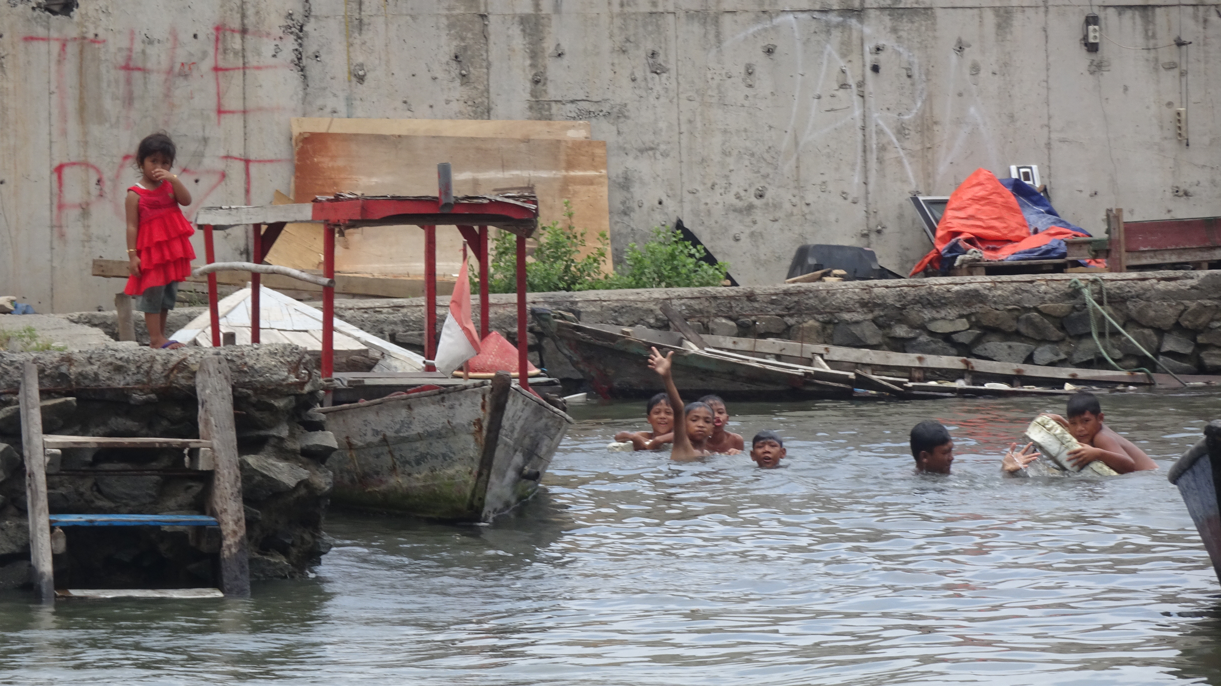Das befürchtete Verkehrschaos hält sich glücklicherweise in Grenzen und wir überbrücken die fast 40 km in einer guten Dreiviertelstunde. Über Autobahnen geht es halt überall flotter. Die ist hier übrigens genau dort gebaut worden, wo noch Platz dafür da ist – quasi „auf dem Wasser“. Das hatte sich aber just wegen „low tide“ etwas zurückgezogen, kam aber auf dem Rückweg zum Hotel dann mit dem üblichen dichten Abendvorhang Hektoliterweise von oben zurück.