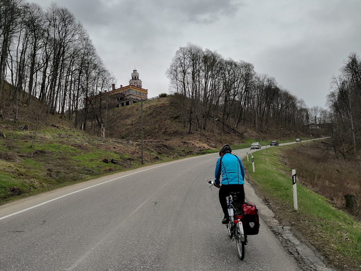 Nach einem leckeren Mittagessen in einer straßennahen Klitsche geht es am Nachmittag über EU-geförderte Straßen nach Sigulda. Dort erwartet uns die erste richtige Bergprüfung der Tour, fast hundert Höhenmeter mit bis zu 11 Prozent Steigung und dann das Hotel.