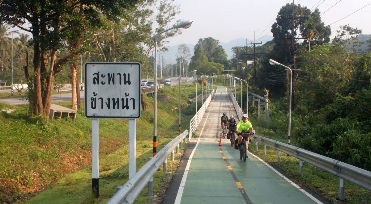 Die Strecke begann allerdings erstmal sehr sehr fahrradfreundlich. Ein vorbildlich gebauter Radweg führte uns gute 10 km aus der Stadt raus. Zugegeben, die Speedbumps und Spurentrenner waren eher hinderlich als hilfreich. Aber ein durchgängig beleuchteter Radweg raus aus der Stadt, der auch noch etwas abseits von der Straße langführt erfüllt mein Thailändisches Radfahrer-Herz mit Stolz! Da hat irgendwer was richtig verstanden. Klar ist es nur ein Anfang. Aber es ist ein guter Anfang mit den richtigen Ansätzen. Hut ab! Bitte weiter so!