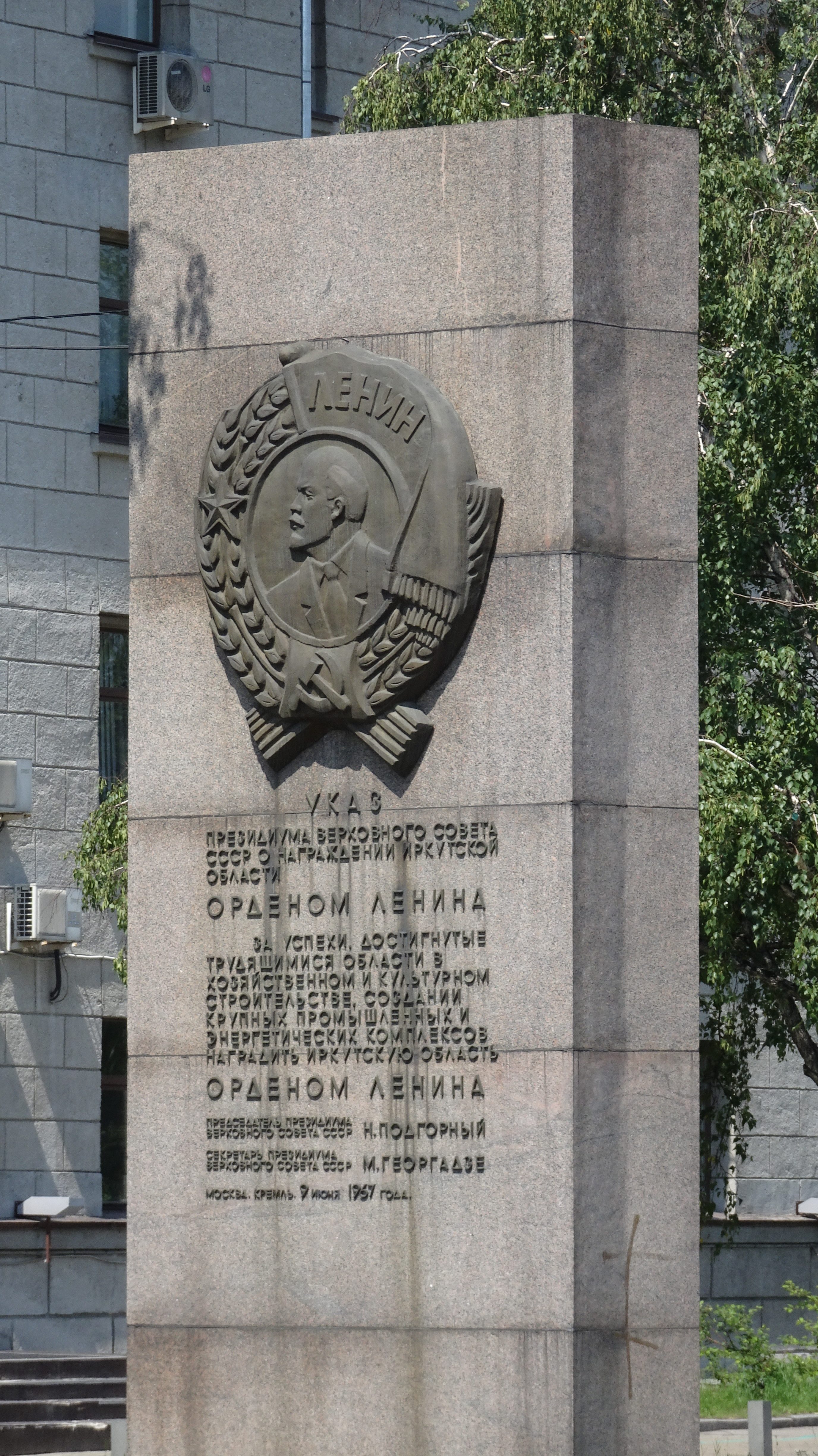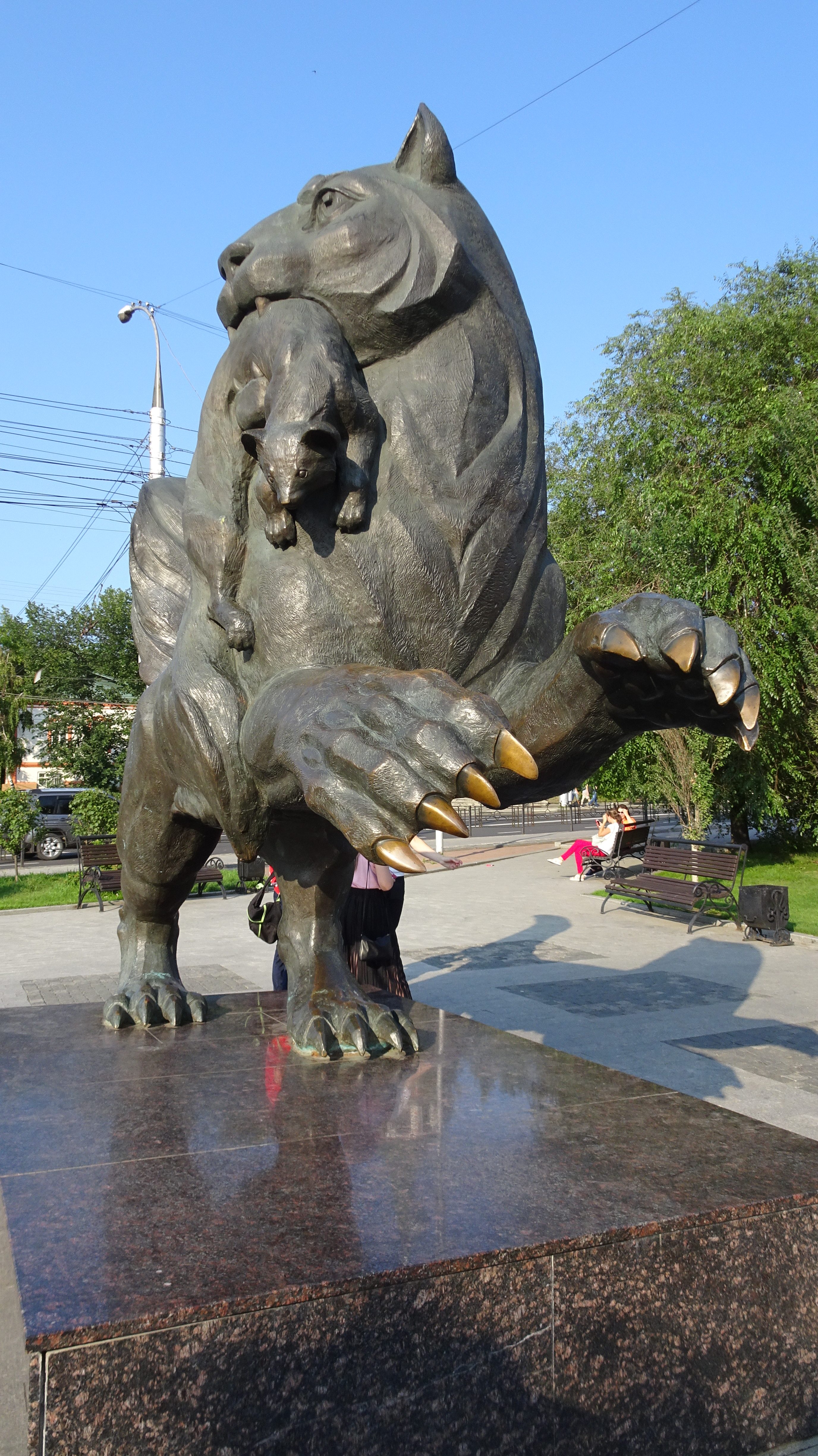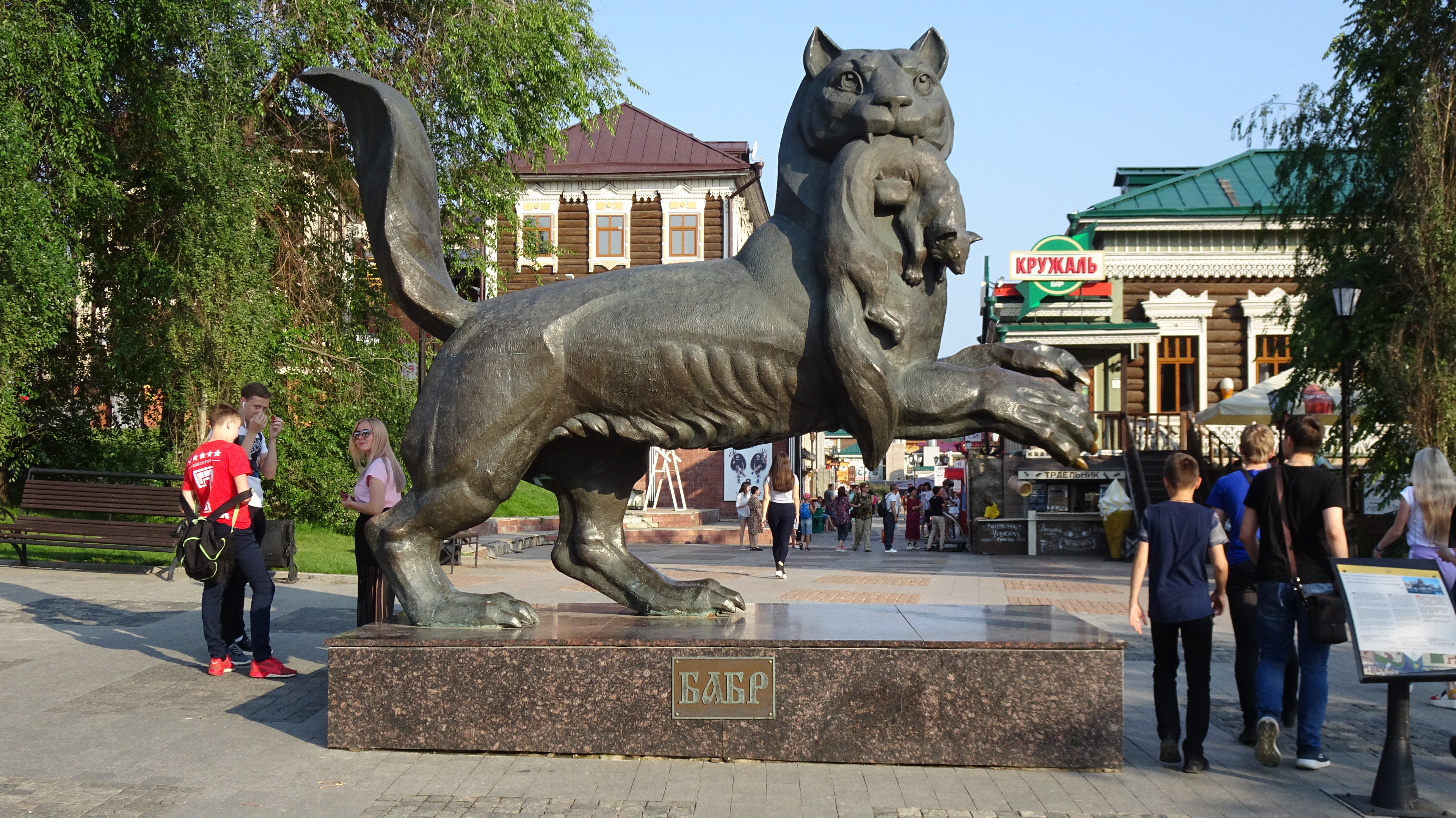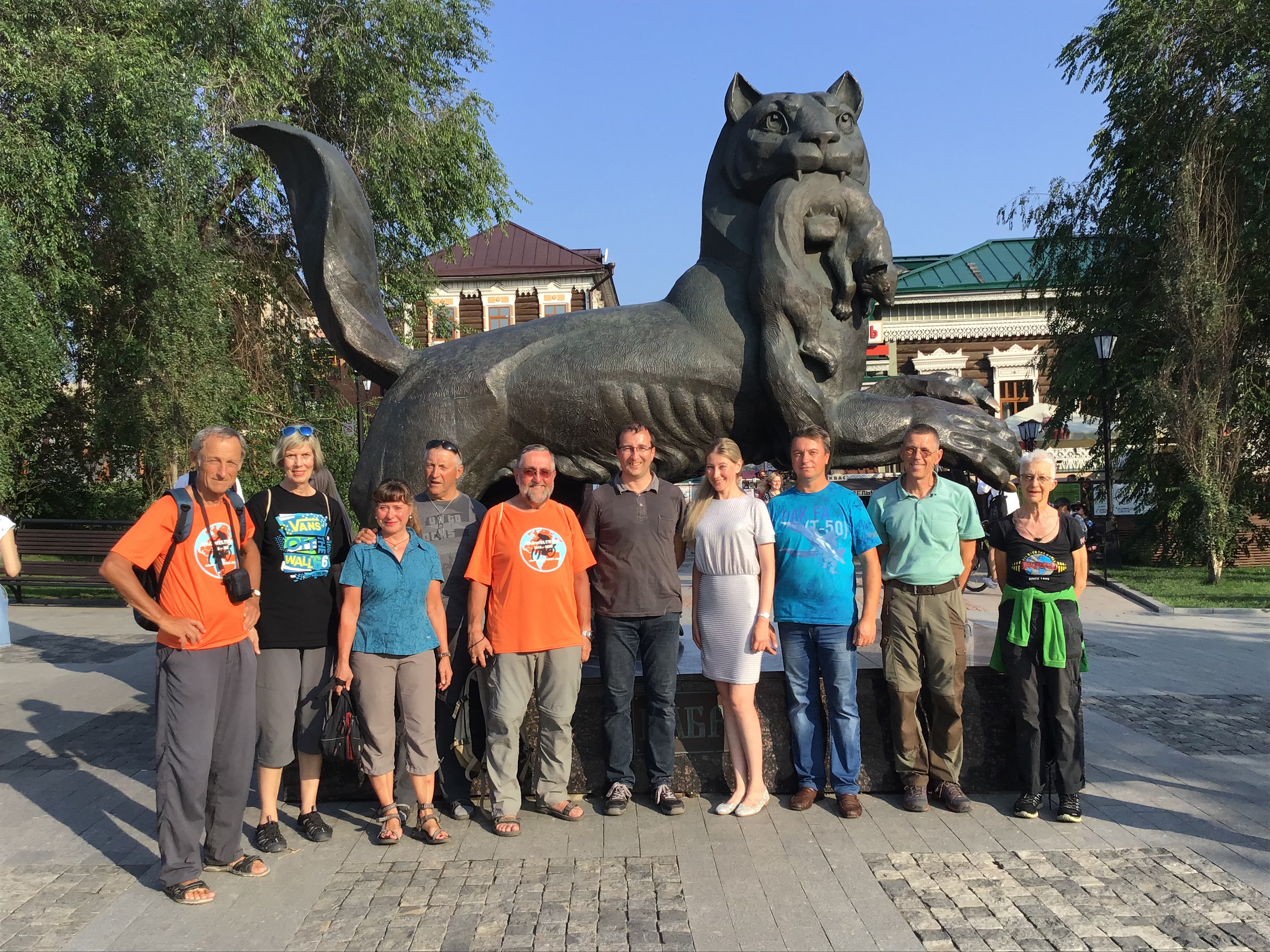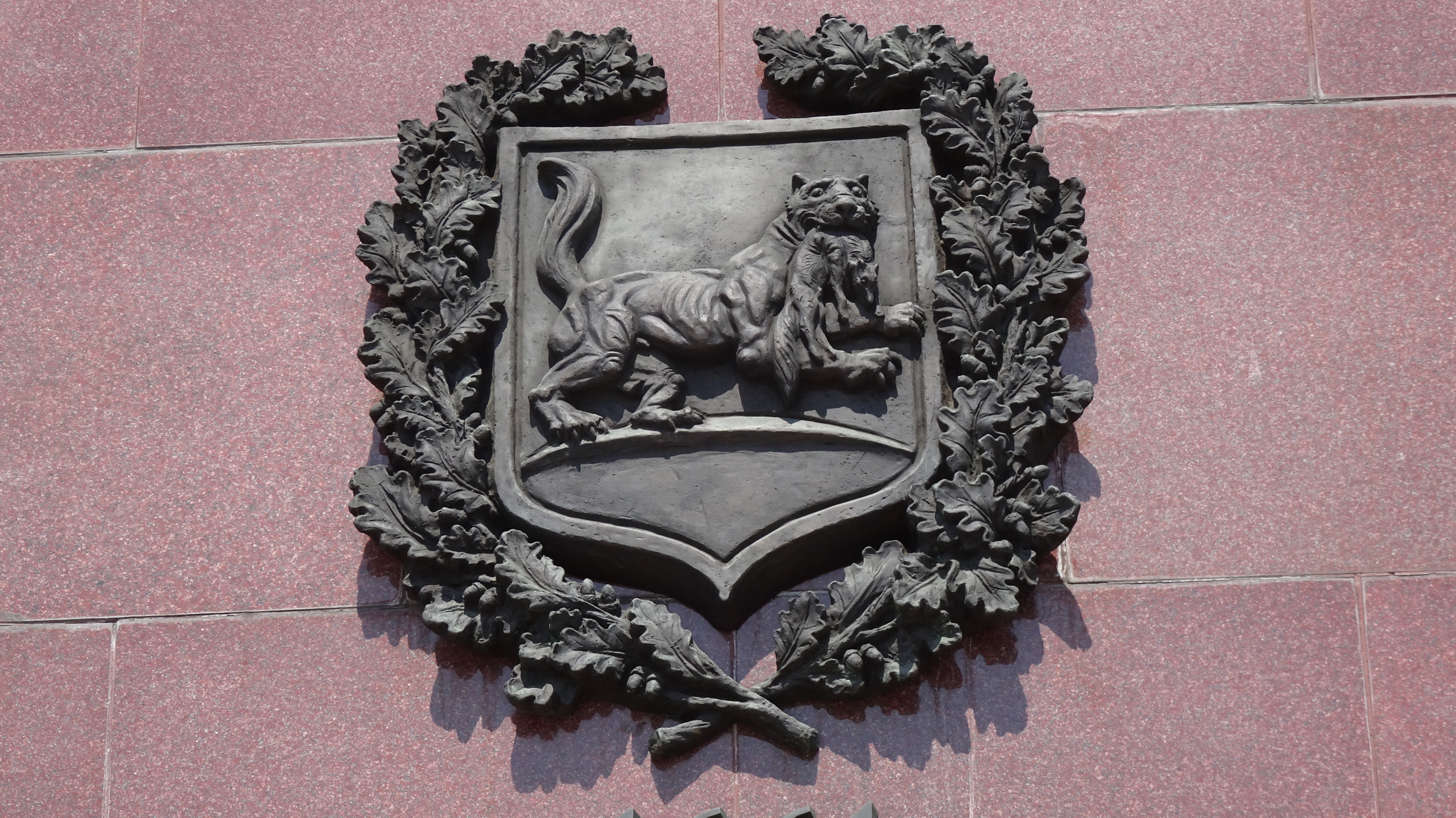 Eins ist aber besonders wichtig. Das Wappen, das Wahrzeichen von Irkutsk: Der Tiger Babr hält einen Zobel als Beute im Maul.