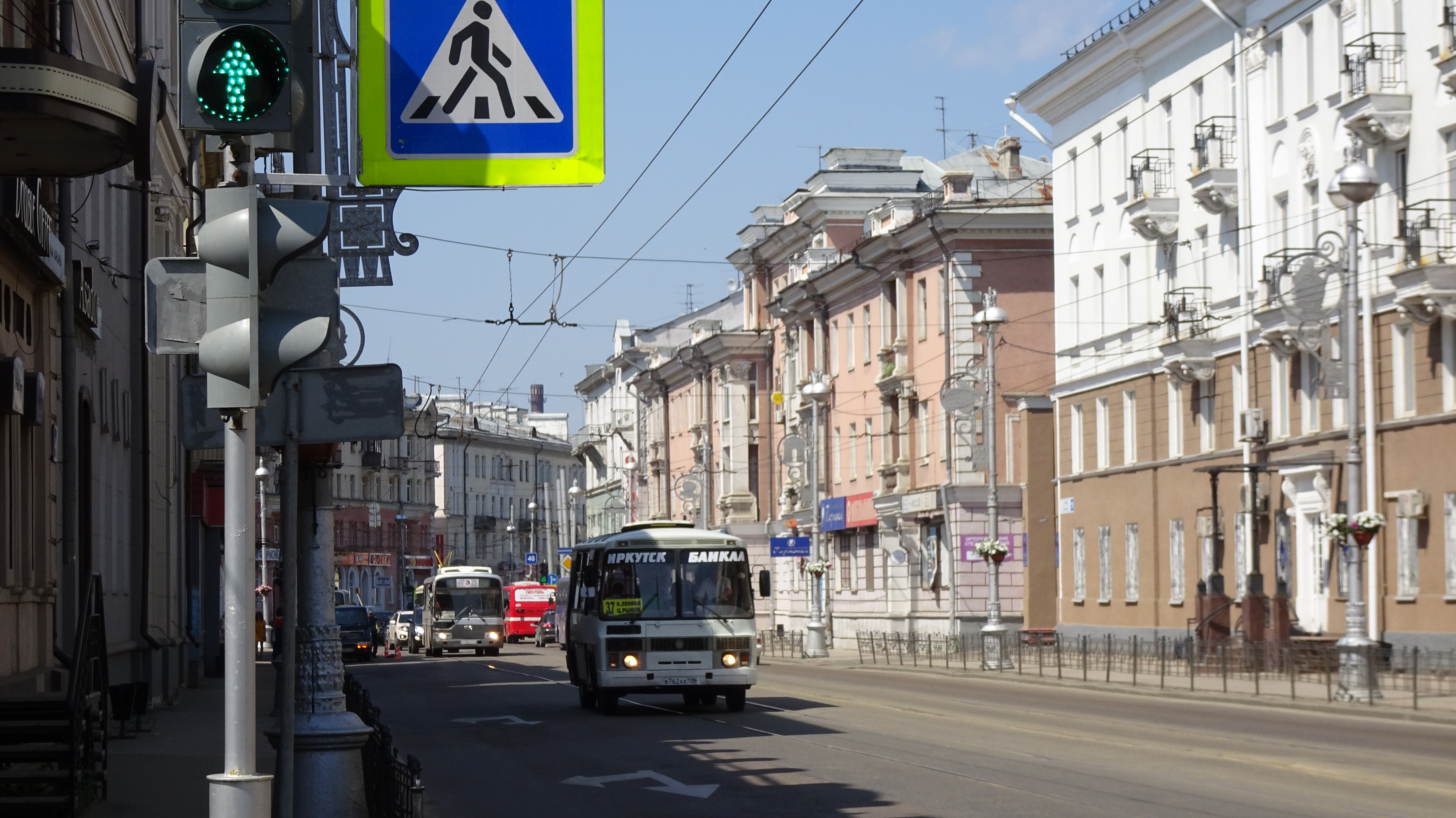 Hey! Wir sind an diesem Abzweig und bummeln durch Irkutsk (Ирку́тск), die Hauptstadt der russischen Oblast Irkutsk am einzigen Abfluss des Baikalsees, der Angara. Die fast 600.000 Einwohner sind stolz auf die Bezeichnung Universitätsstadt. Natürlich hält hier auch die Transsibirische Eisenbahn. Per Zug erreicht man Irkutsk von Moskau innerhalb von nur 79 Stunden.