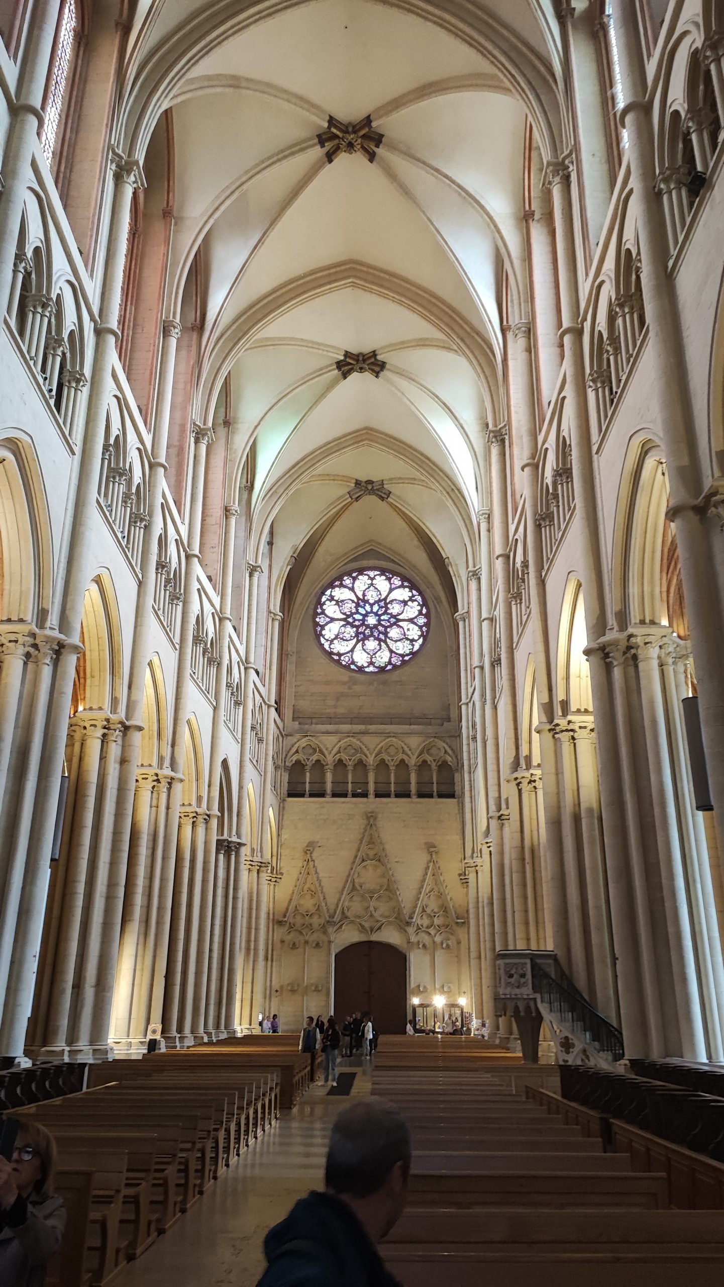 Dann aber hinüber zur gotischen Kathedrale Saint Jean. Höhepunkt ist eine astronomische Uhr, bei der ulkigerweise die Sonne um die Erde kreist. Muss vor Galileo Galilei entstanden sein.