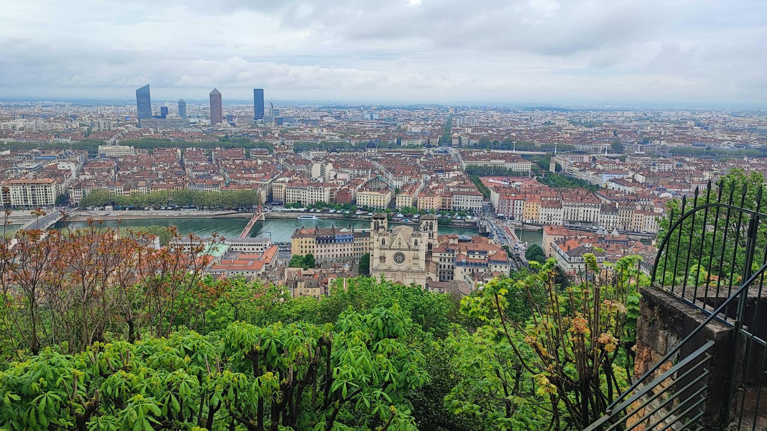 Grandios ist der Ausblick auf Lyon, die Kathedrale und Rhone und Saone.