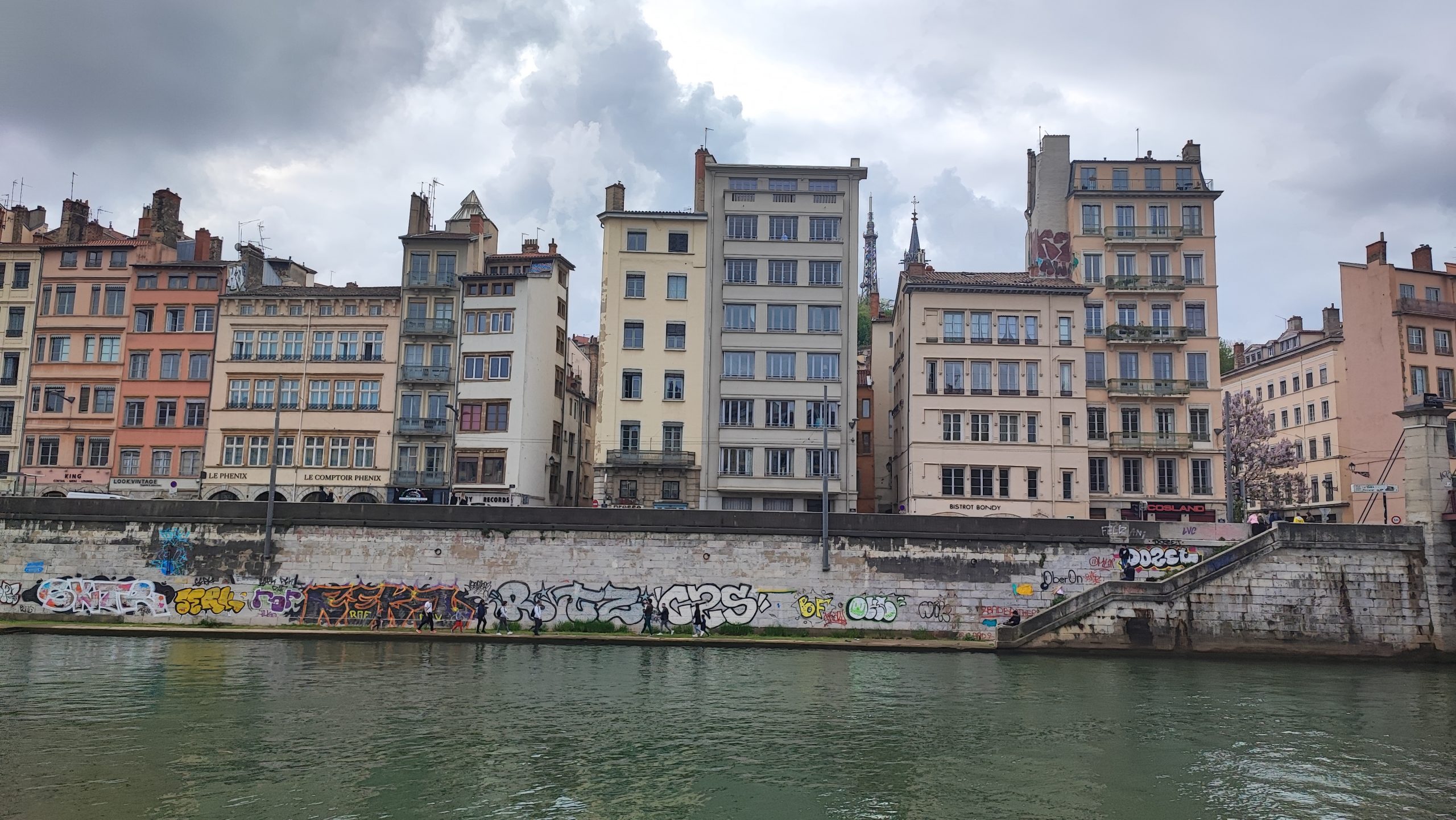 Mit dem Fahrrad in die Stadt zu gelangen, ist nicht wirklich erbaulich, daher wählen wir die Buslinie 31, die direkt vom Hotel in die Altstadt fährt. Das Tagesticket ist zudem mit € 6,- ausgesprochen günstig. Die erste Fahrt dauert dann auch nur knapp 25 Minuten und schon stehen wir auf der Höhe der Kathedrale am gegenüberliegenden Ufer der Saone.