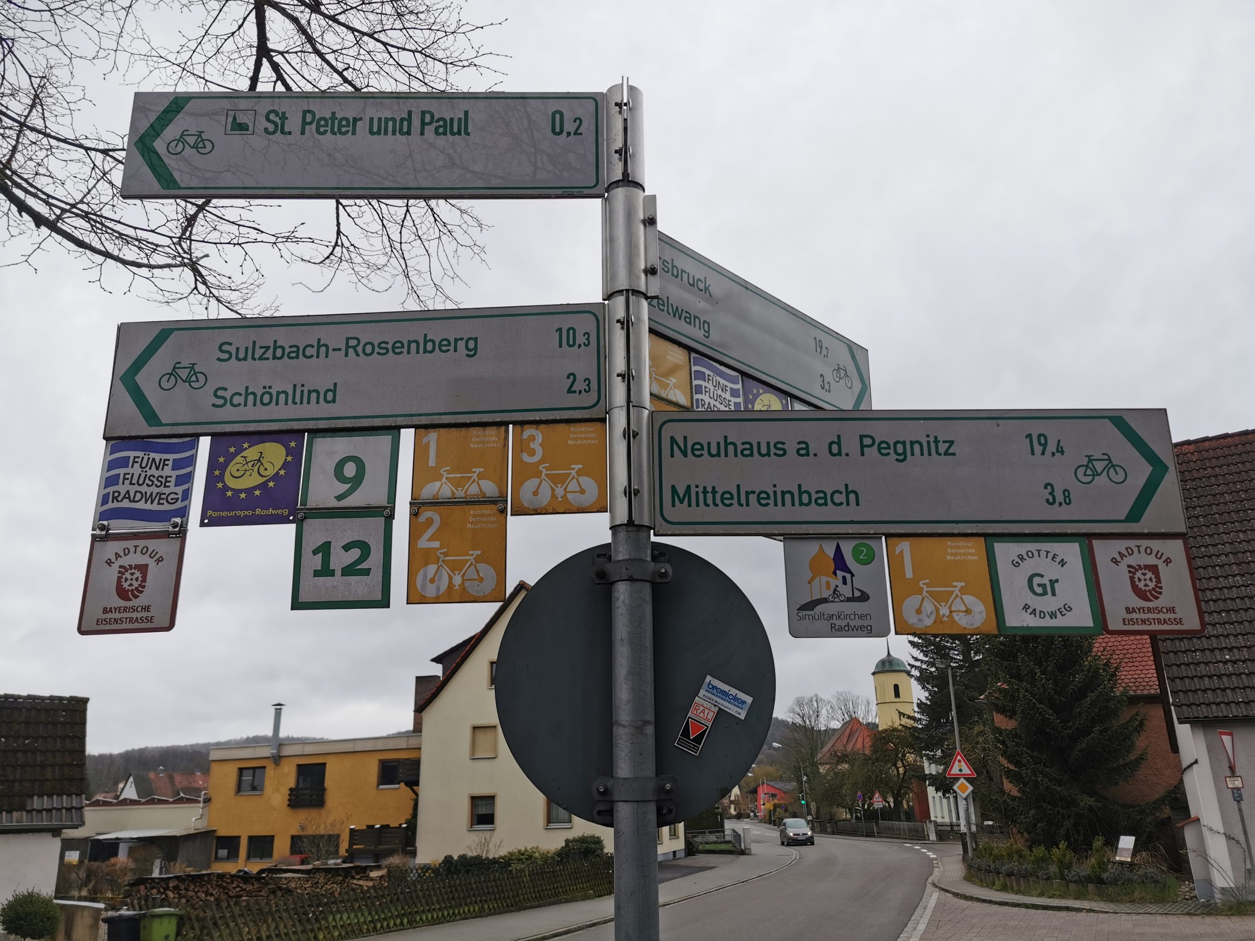 Immer wieder erstaunlich, wie autofrei es aus Nürnberg hinaus geht. Toller Radweg entlang der Pegnitz, vorbei an der Klinik Hallerwiese, meine persönliche Eintrittskarte in diese Welt und durch Schniegling, wo ich die ersten sechs Jahre meines Lebens verbracht habe. Schöne Erinnerungen, auch an die Erkundung anno 2011 und die Tour Hongkong-London 2012, wo wir schon einmal von Nürnberg nach Rothenburg geradelt sind.