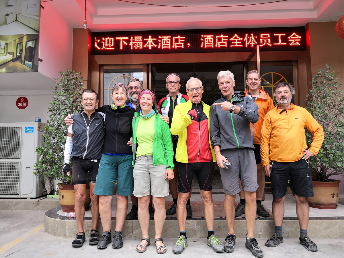 Der Tag beginnt wie jeder andere, mit Nudelsuppen/Dampfbrot/Teigtaschenfrühstück und Gruppenbild vor dem Hotel.