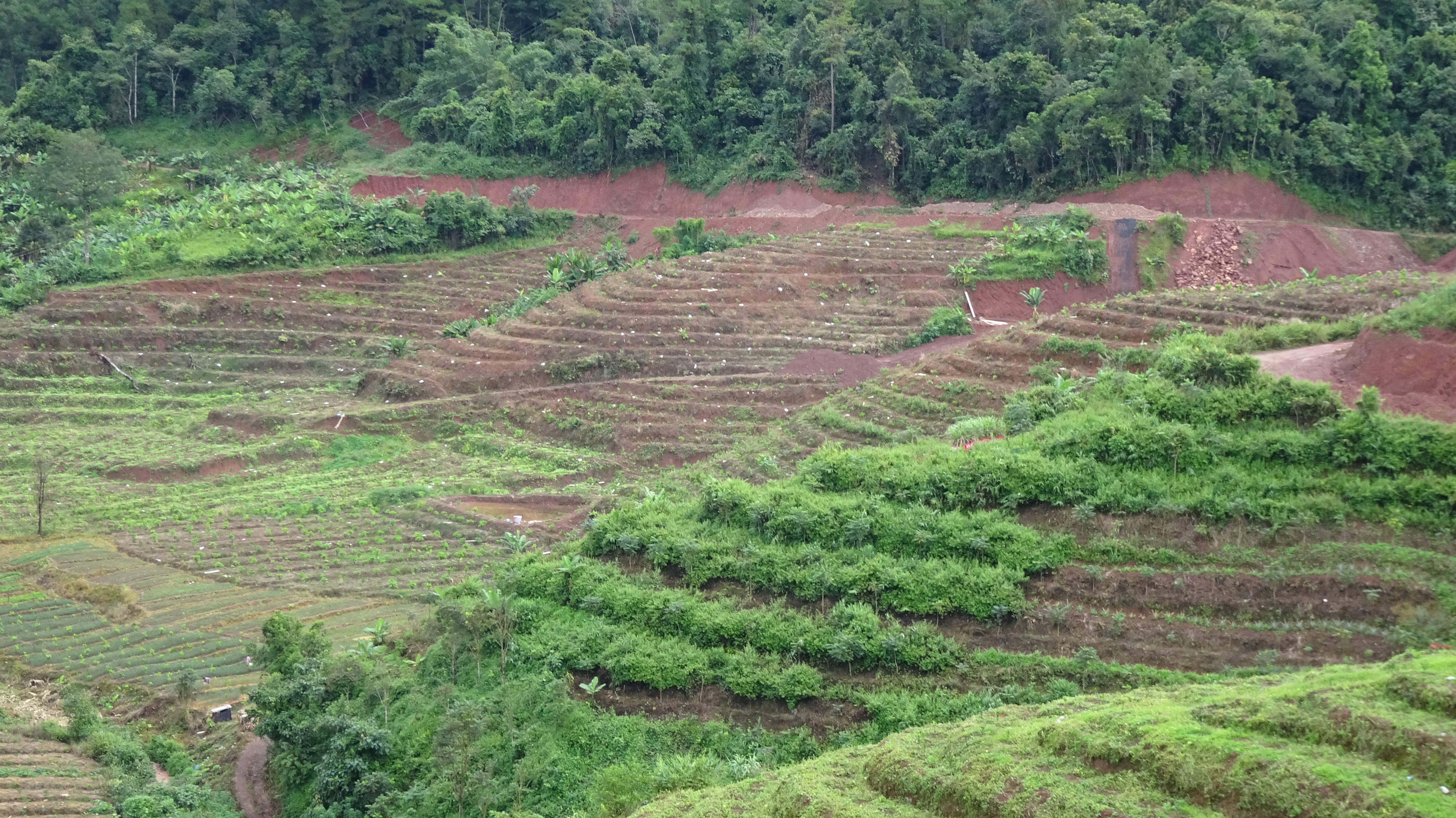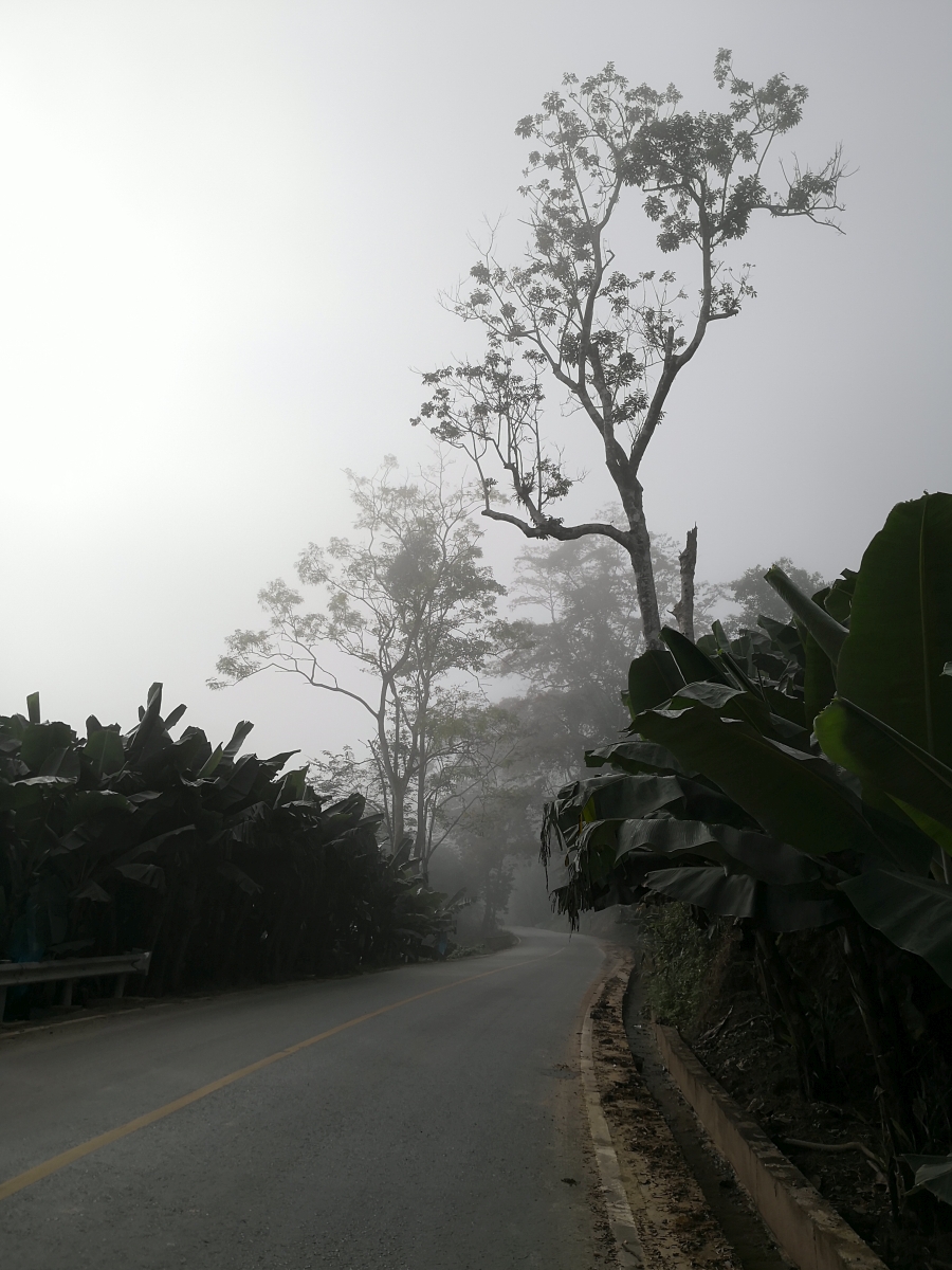 Nun, es wäre sonst auch ein ziemlich unspektakulärer Tag geworden. Wetter irgendwie nicht Fisch noch Fleisch. Ein bisschen flach, ein bisschen nach oben und eine recht lange Abfahrt nach Jinghong, die dann, da Baustelle, nicht so nett rollte, wie man das erwartet hätte.