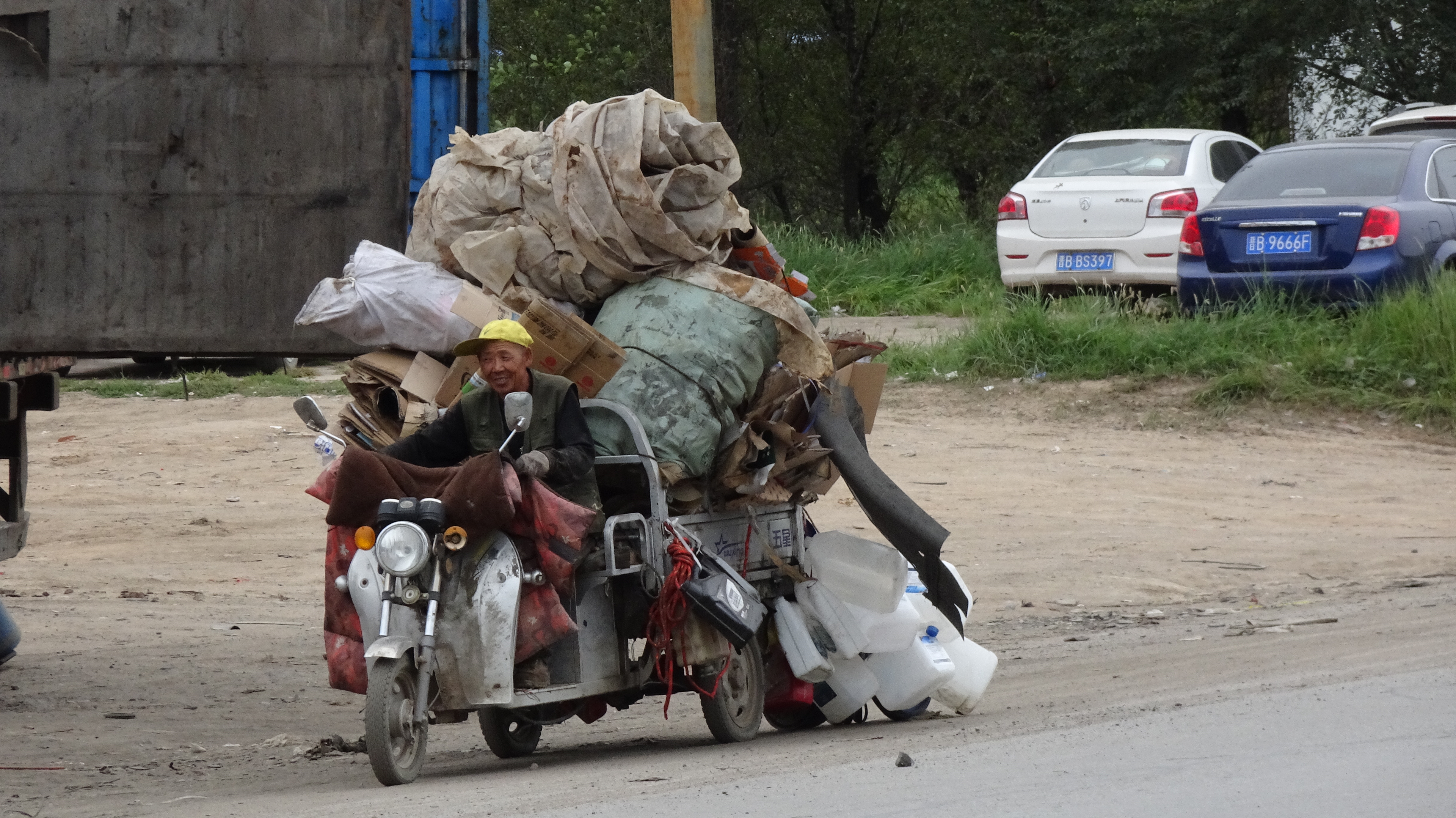 Ja, und dann begleiten uns ja auch noch Xiao Luo (ihr Mann Xiao Ding hatte zuerst ab der Einreise den kleinen Bus gefahren) und ihr Schulfreund Xiao Luo (der jetzt das Lenkrad in der Hand hat und oft halsbrechrisch auf dem Autodach herumturnt, wenn Fahrräder dort transportiert werden müssen), die ebenfalls aus einem kleinen Landwirtschaftsbetrieb kommen. Die China-By-Bike-Begleitung ist schließlich nicht ihr Haupterwerbsjob.