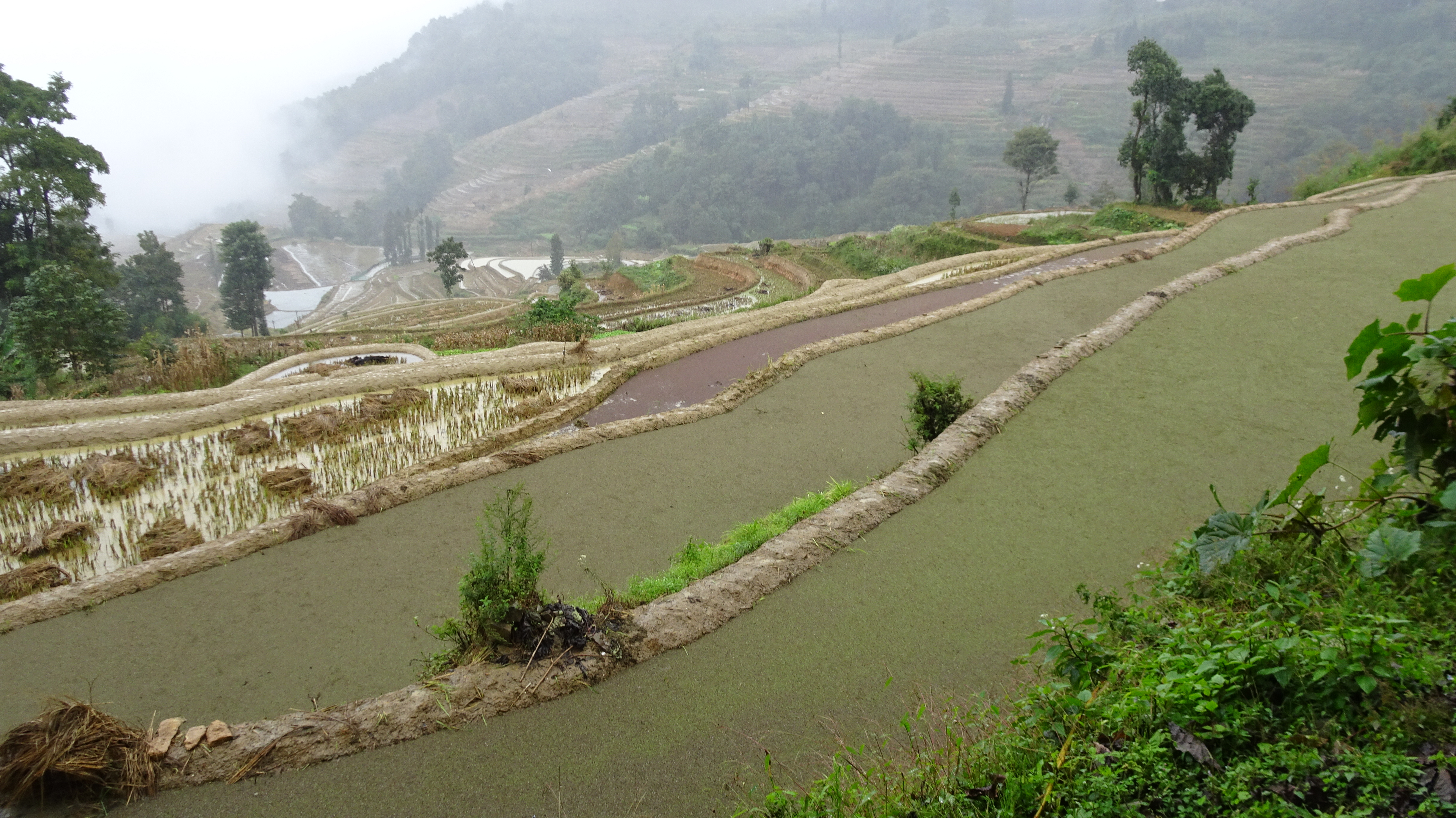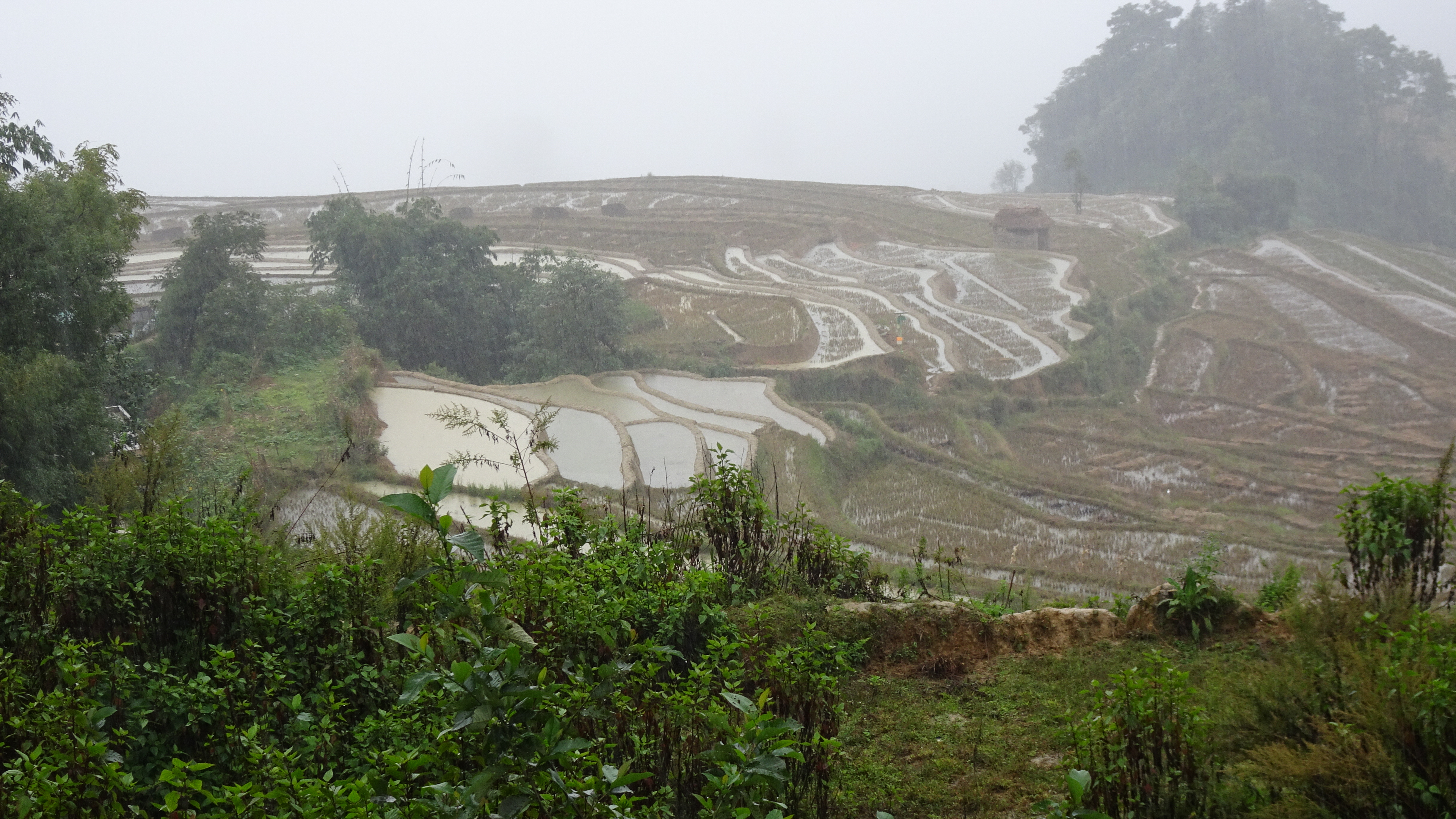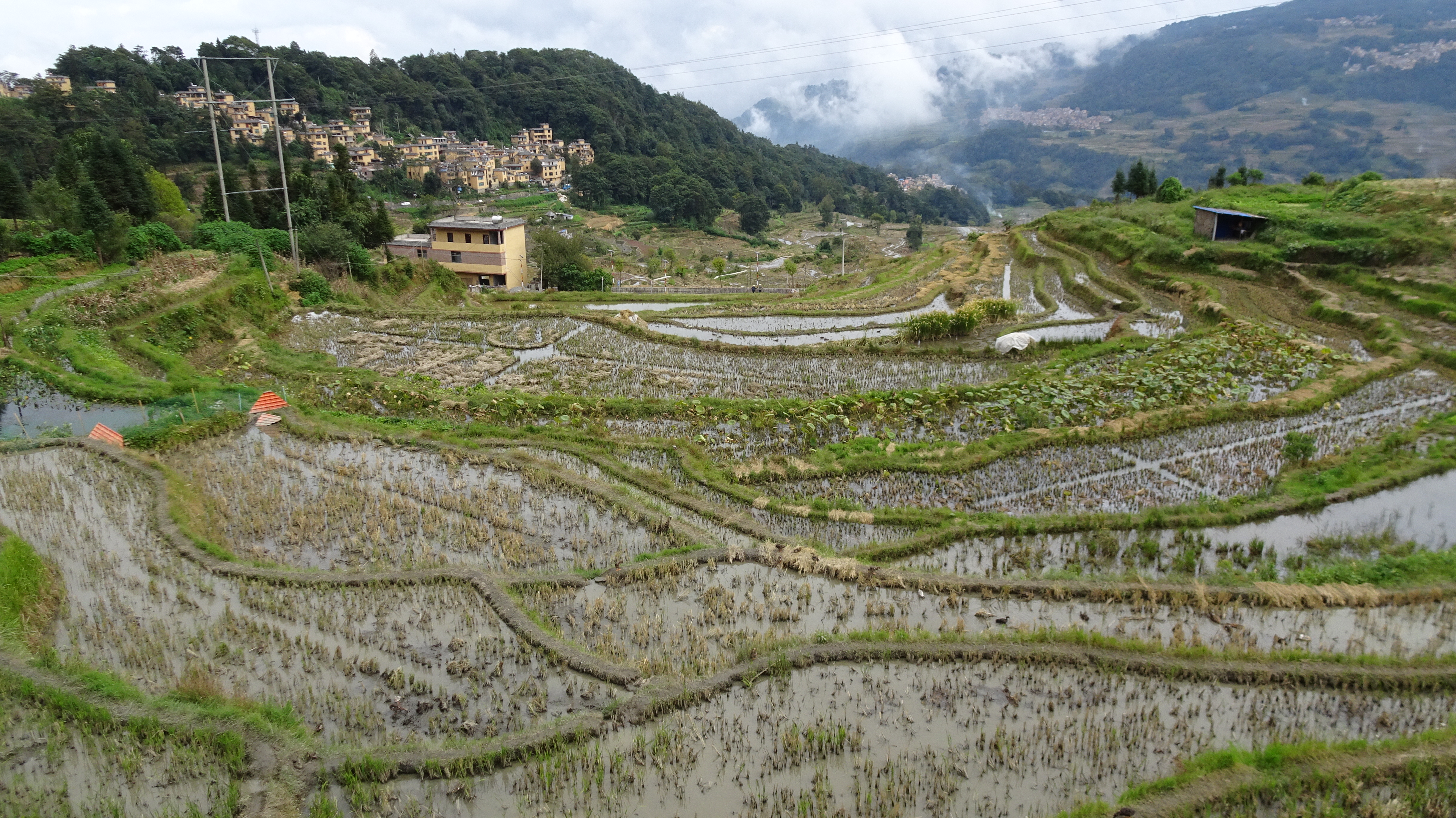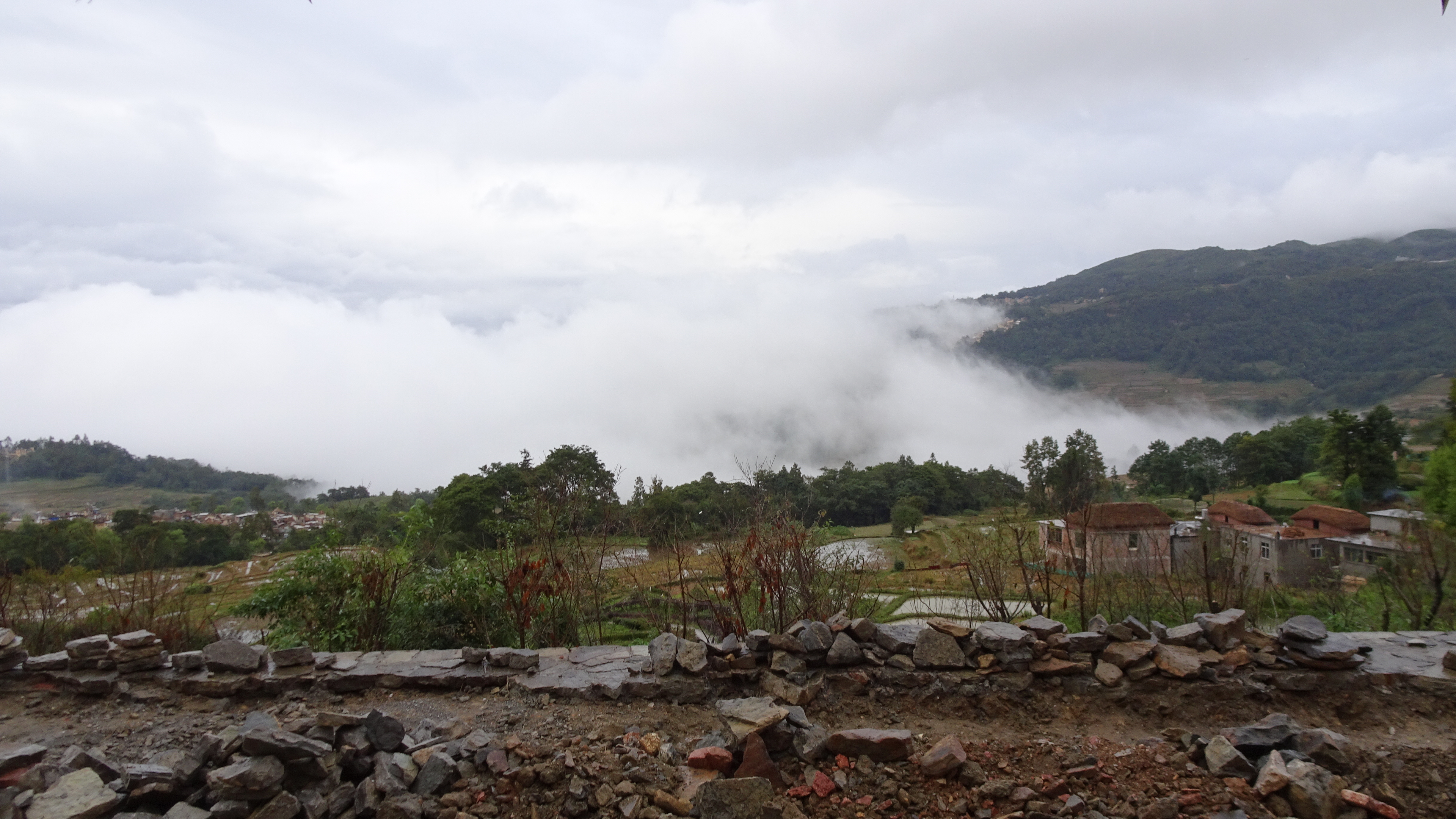 Bilderbuch am 206. Radweltreisetag in Titian bei den Reisterrassen der Hani, mal sonnig, dann stark bewölkt bis dauerregnerisch