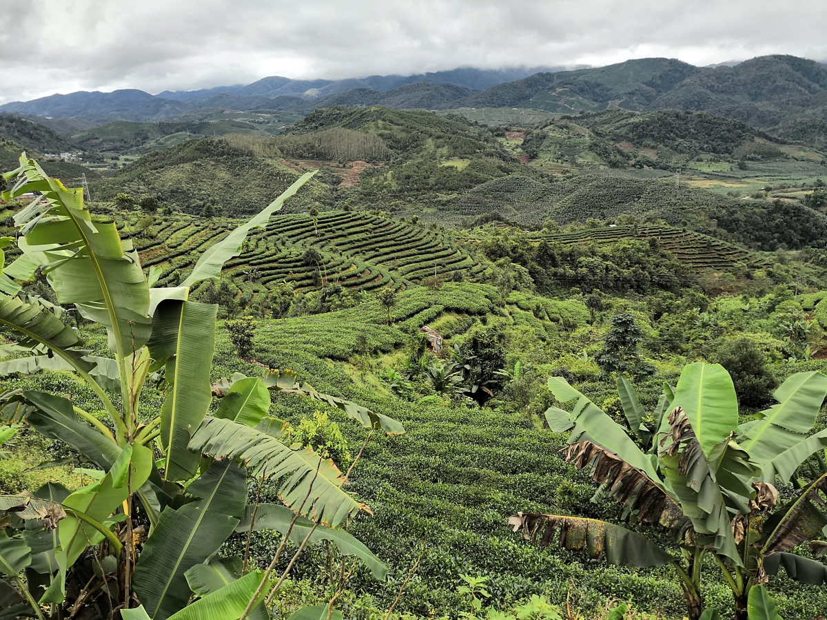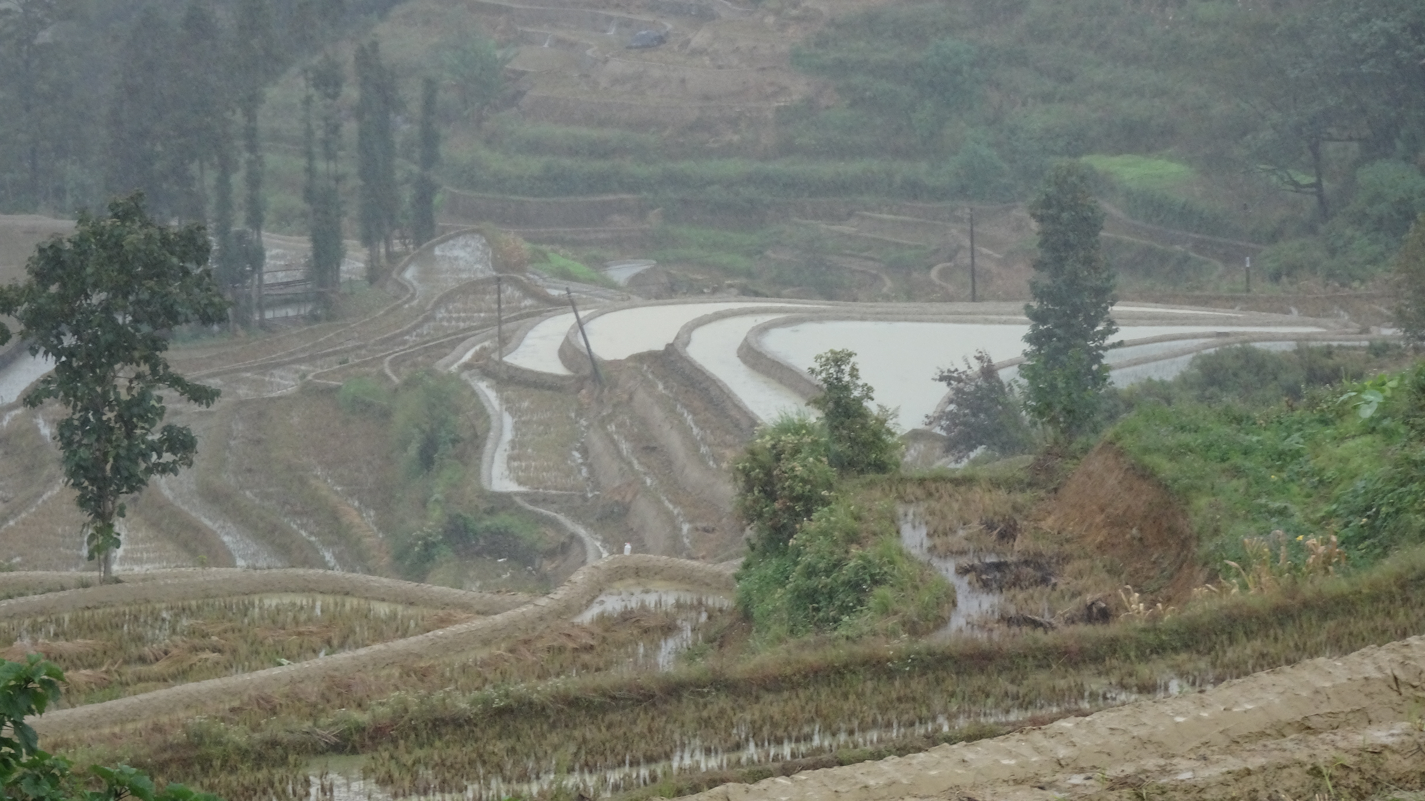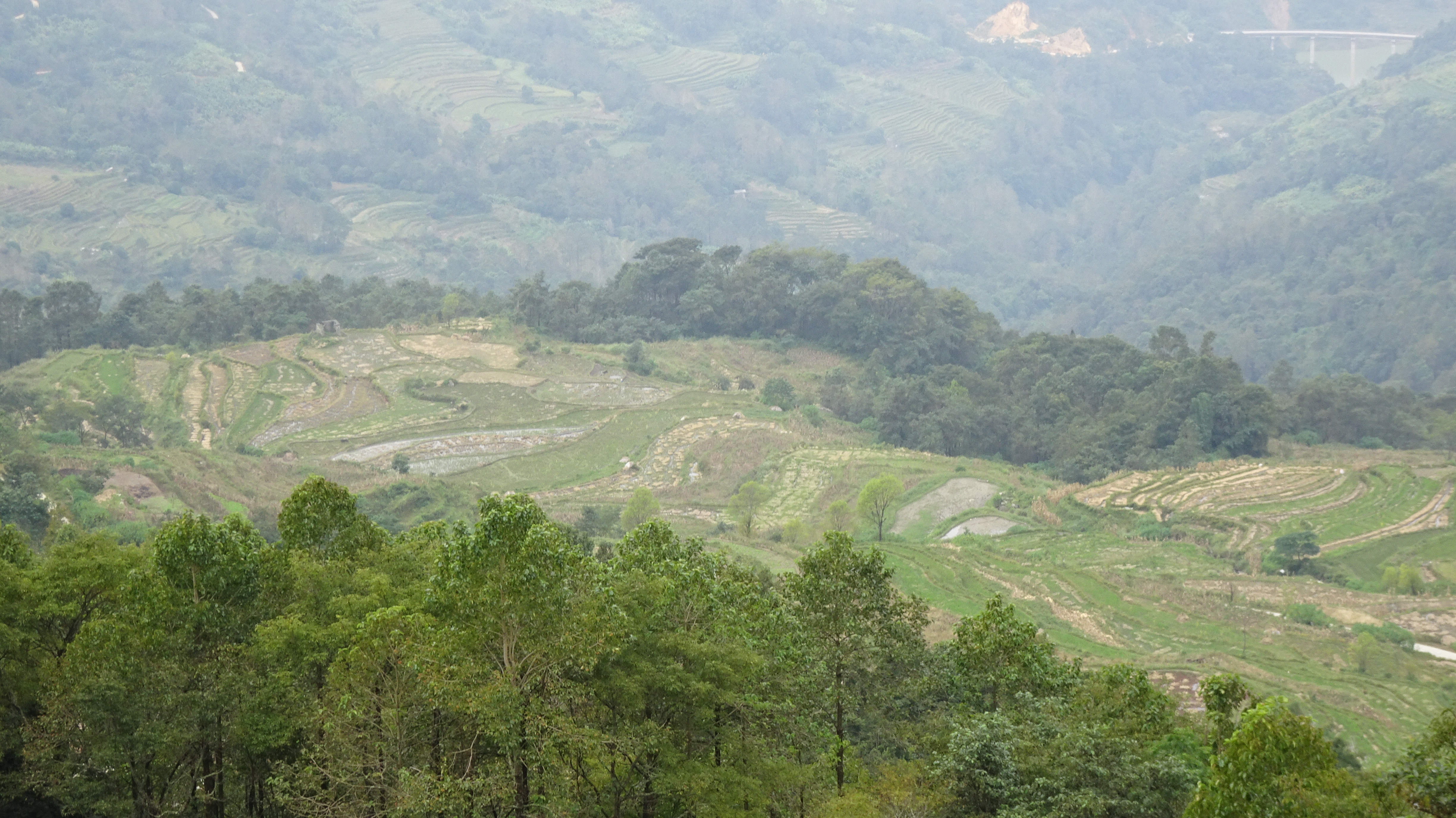 Bilderbuch am 206. Radweltreisetag in Titian bei den Reisterrassen der Hani, mal sonnig, dann stark bewölkt bis dauerregnerisch