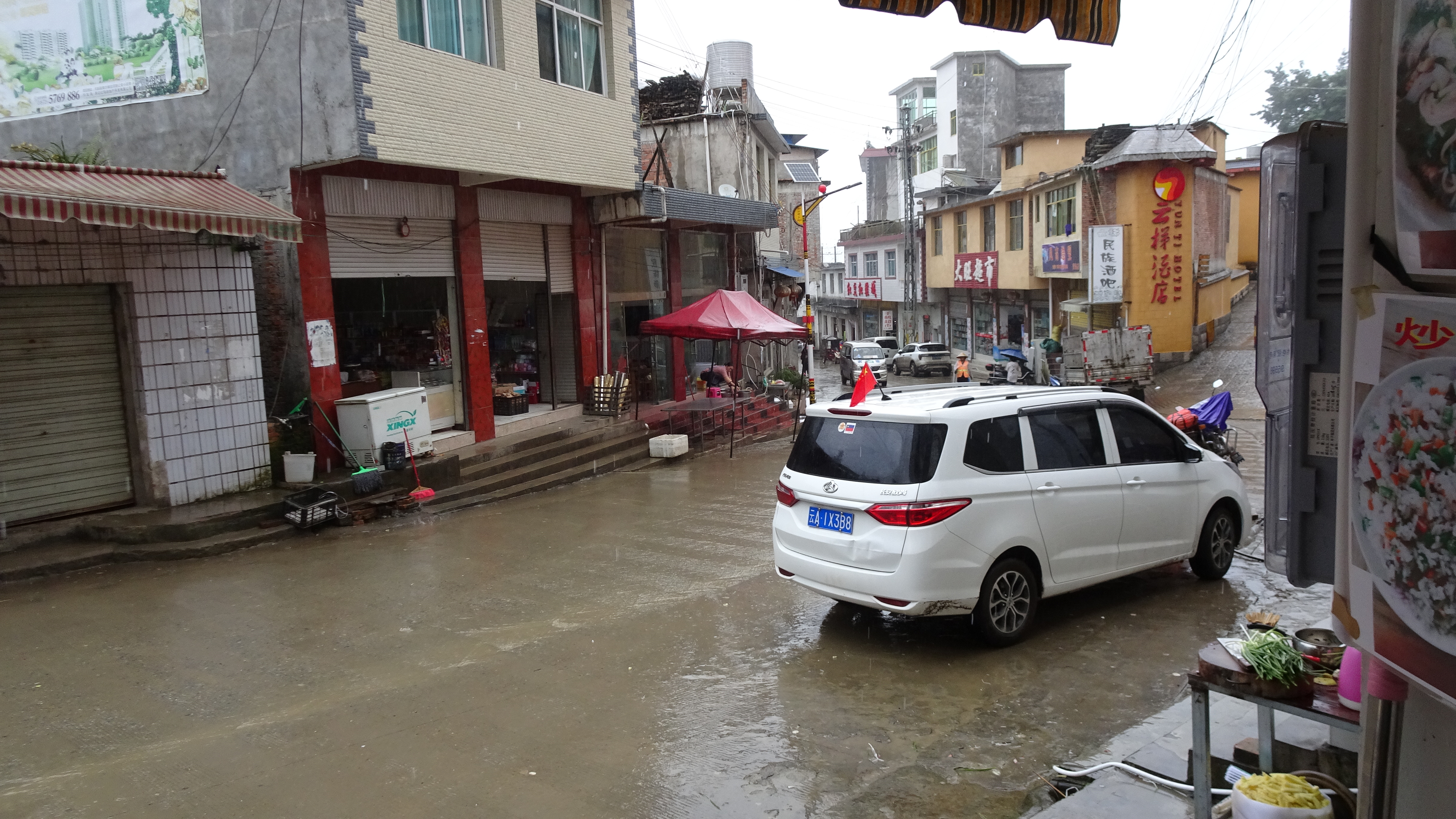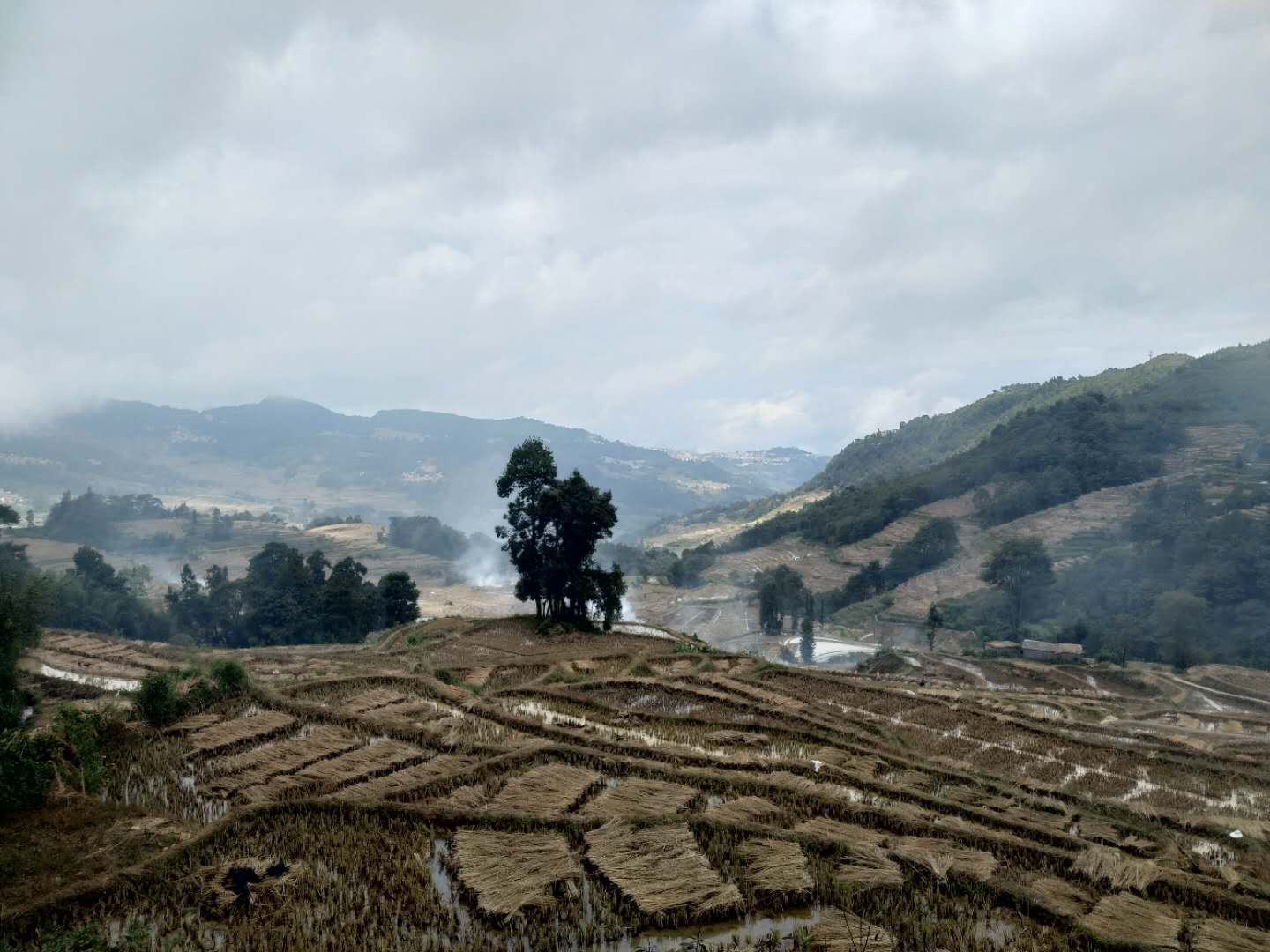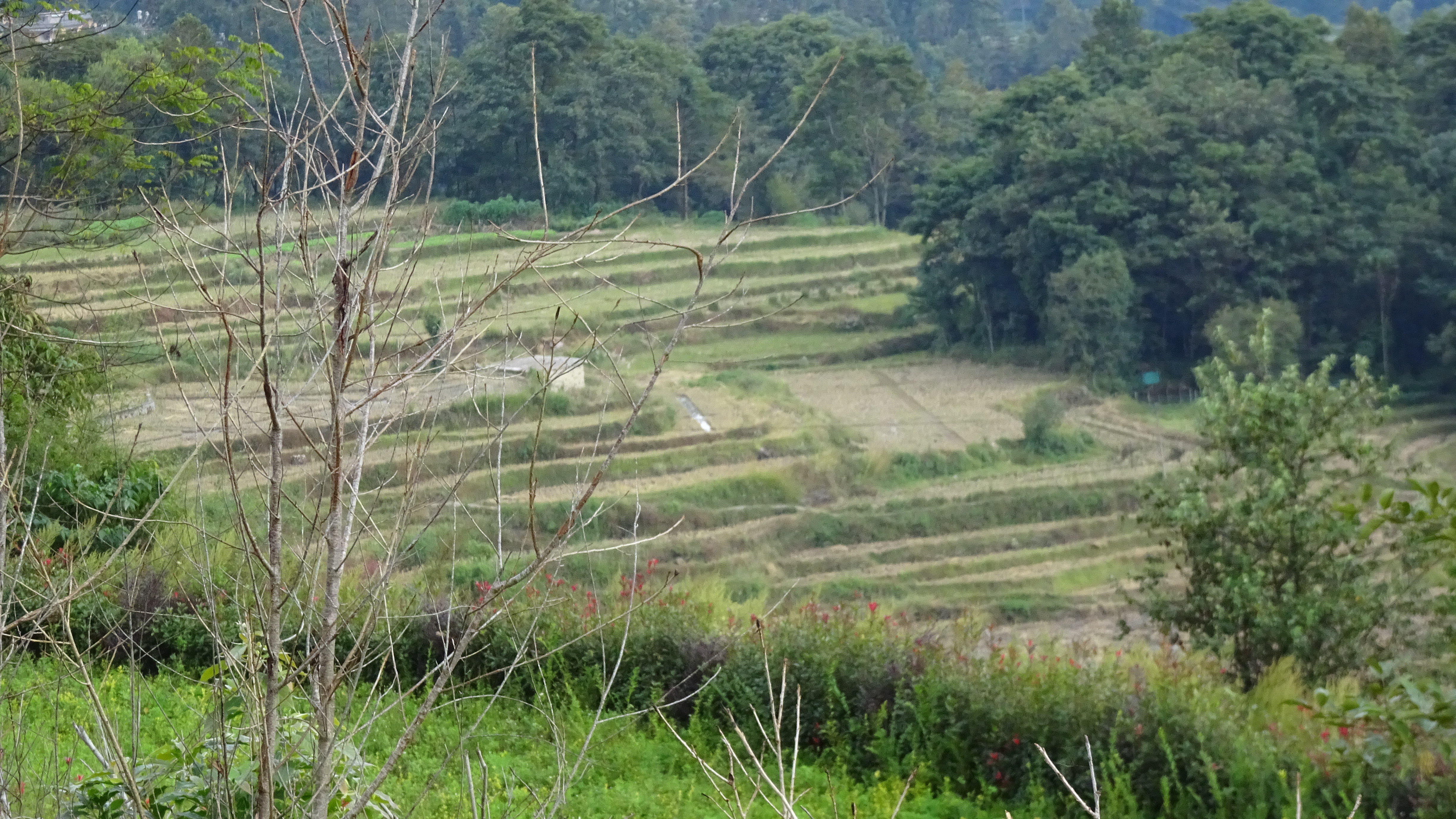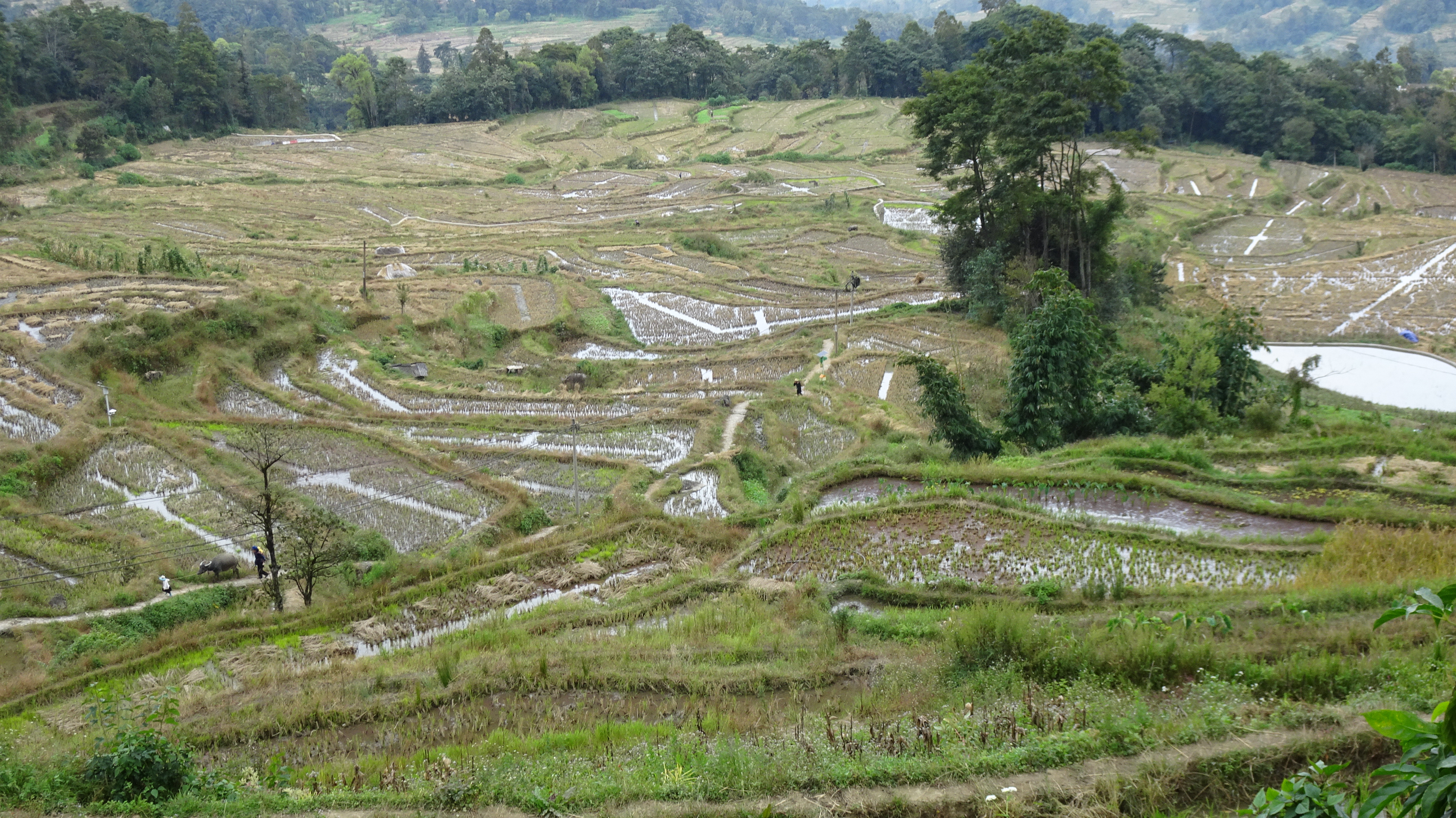 Bilderbuch am 206. Radweltreisetag in Titian bei den Reisterrassen der Hani, mal sonnig, dann stark bewölkt bis dauerregnerisch