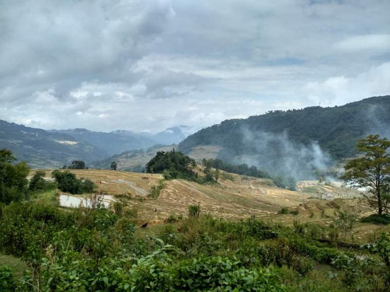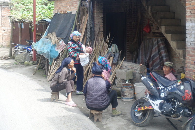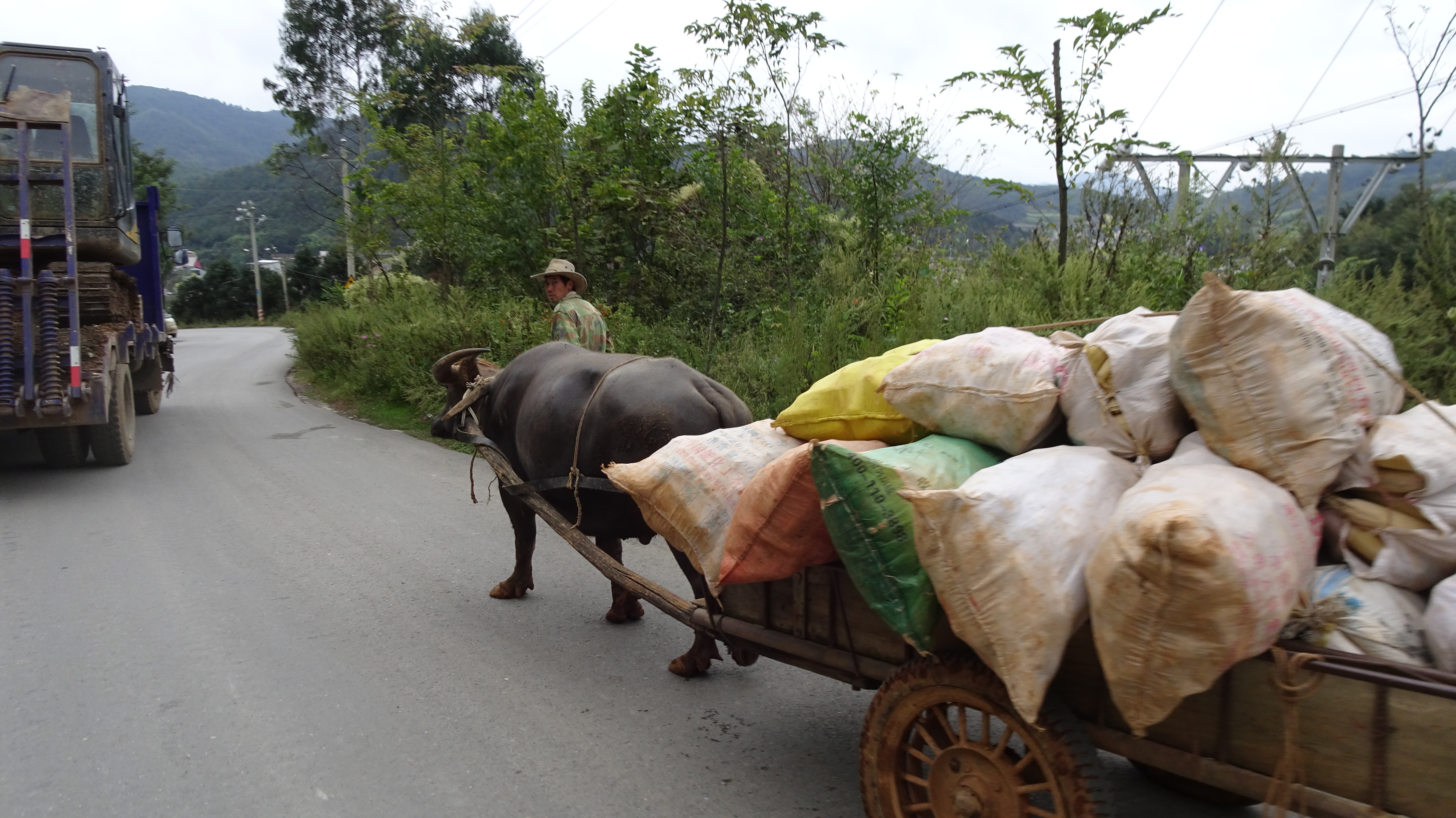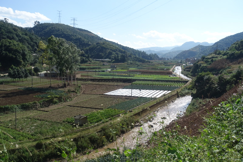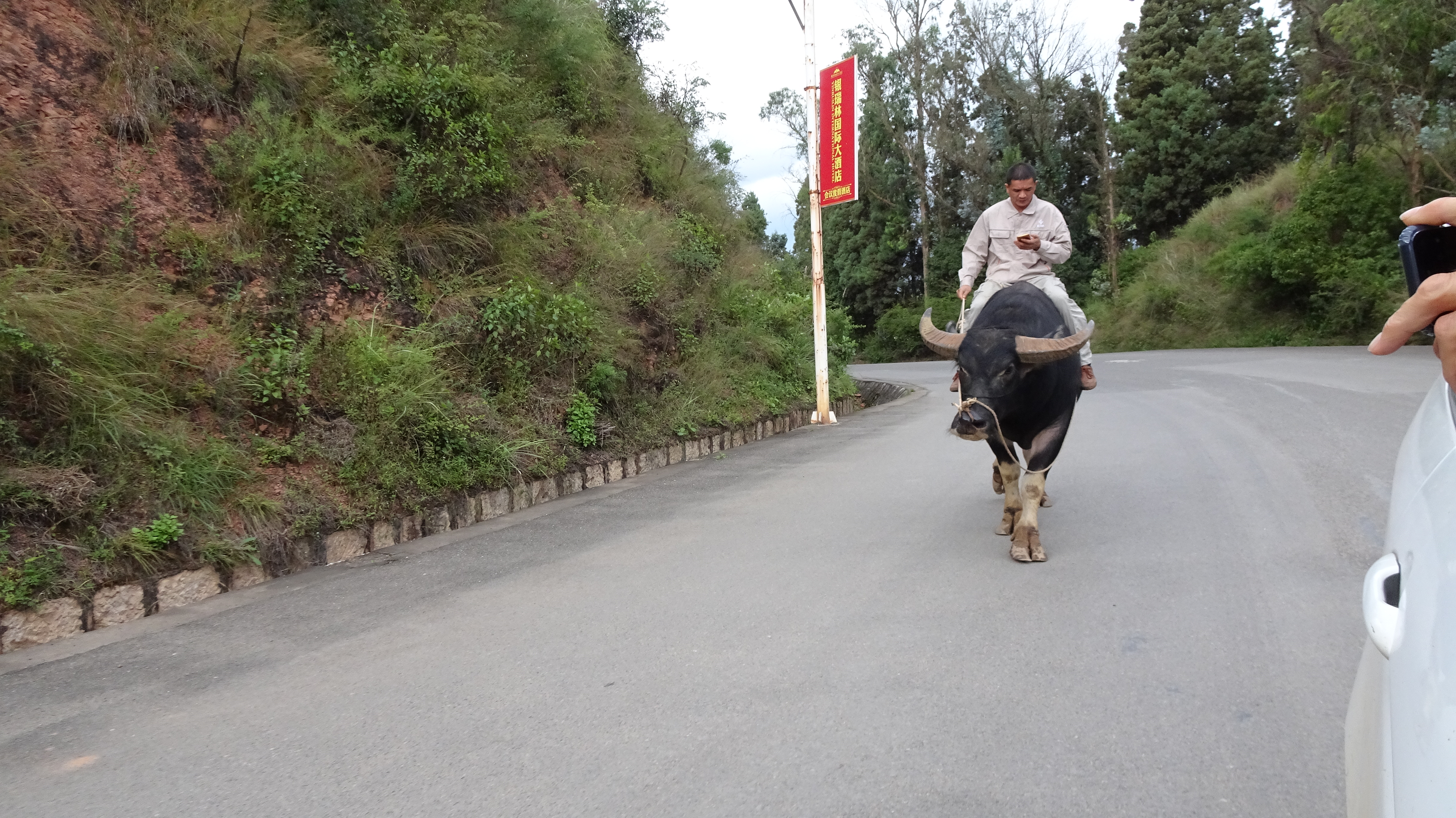 500 m schräg gegenüber in der LVANG LU (= Grüne Straße, beschriftet in der Sprache der Yi sowie in chinesisch, erfahre ich von Isabelle) sei der Eingang zur „Stone Forest Scenic Area“, so die Auskunft der Insiderinnen an der Hotelrezeption. Im Prinzip ja, aber hinter dem Zaun und das Tor daneben, erklärt ein aufmerksamer Mann in Uniform, dürfen wir nicht passieren.