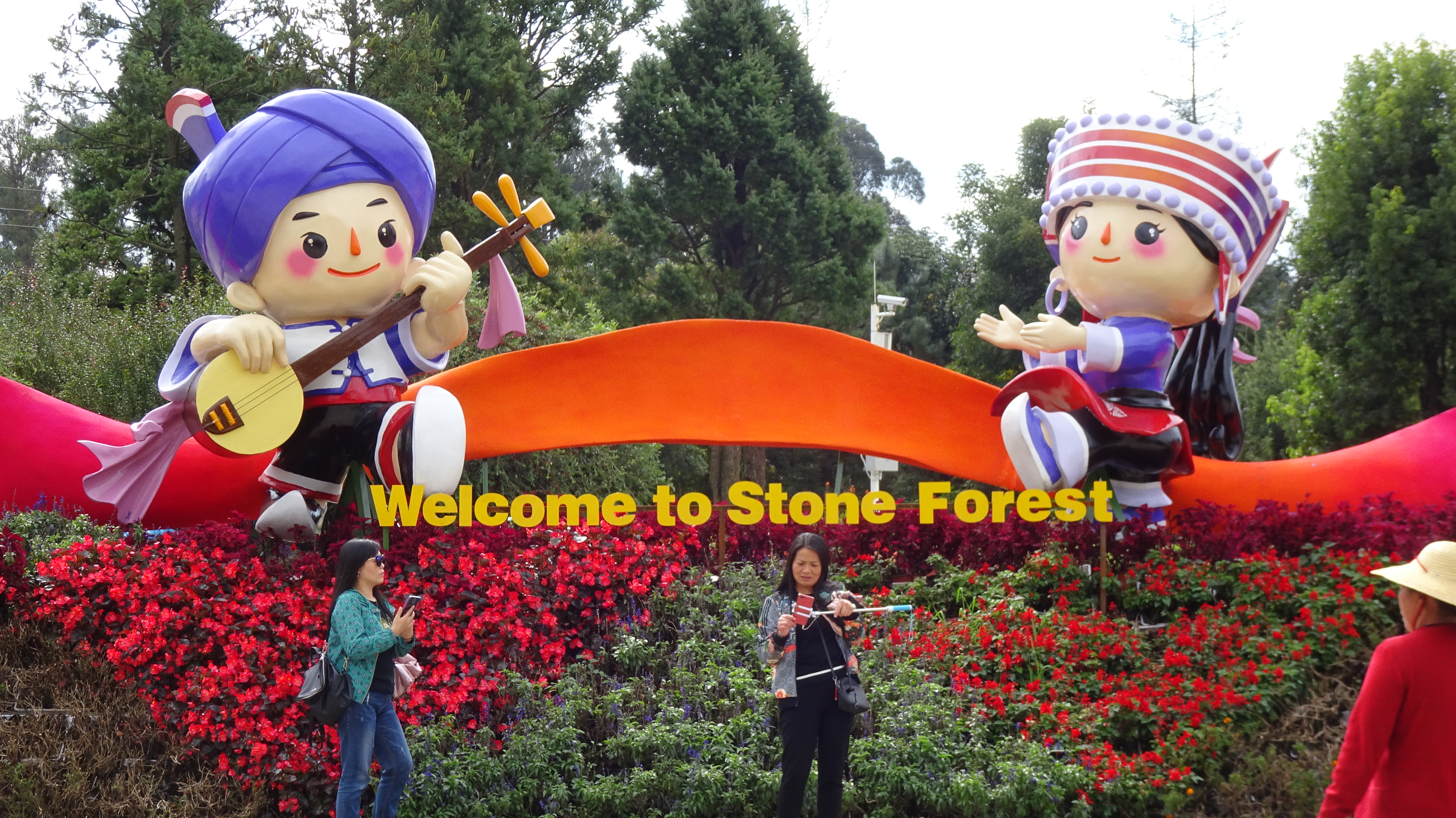 Die Großen Felsen ragen aus dem Grund wie Stalagmiten oder sogar wie Bäume empor und lassen so die Illusion eines Waldes aus Stein entstehen. Jedes Jahr um den 24. und 25. Tag des sechsten Monats nach dem Mondkalender, zelebrieren die Menschen der Yi Volksgruppe ein Fackel-Festival bei dem traditionelle Yi Volkstänze und Ringkampfwettbewerbe ausgetragen werden.“