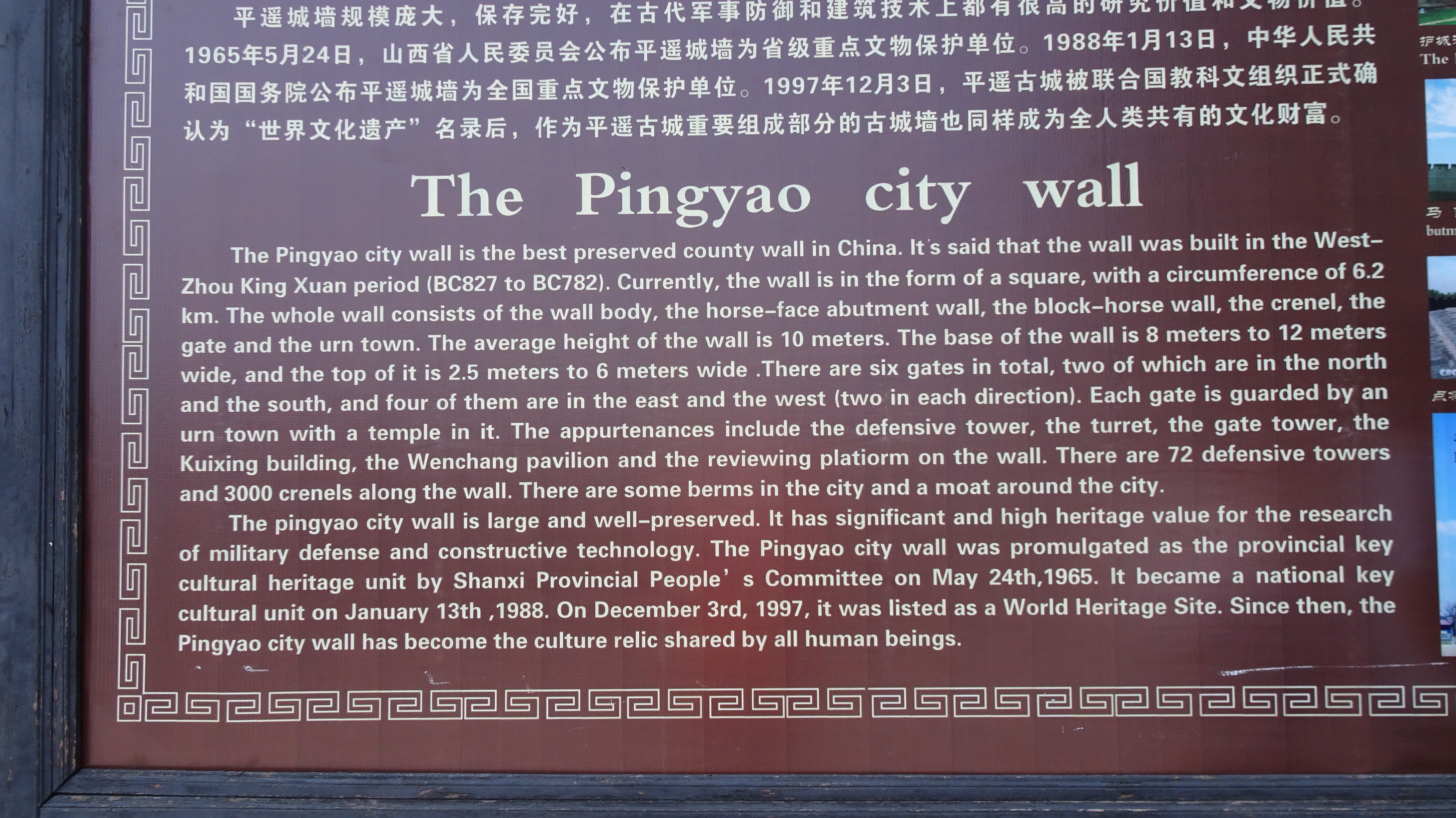 Andreas hat gestern schon was zu Pingyao geschrieben und ich habe u.a. hier https://de.wikipedia.org/wiki/Pingyao und hier https://wikitravel.org/en/Pingyao nachgelesen. Über diese URLs findet ihr bei Bedarf noch mehr Infos.