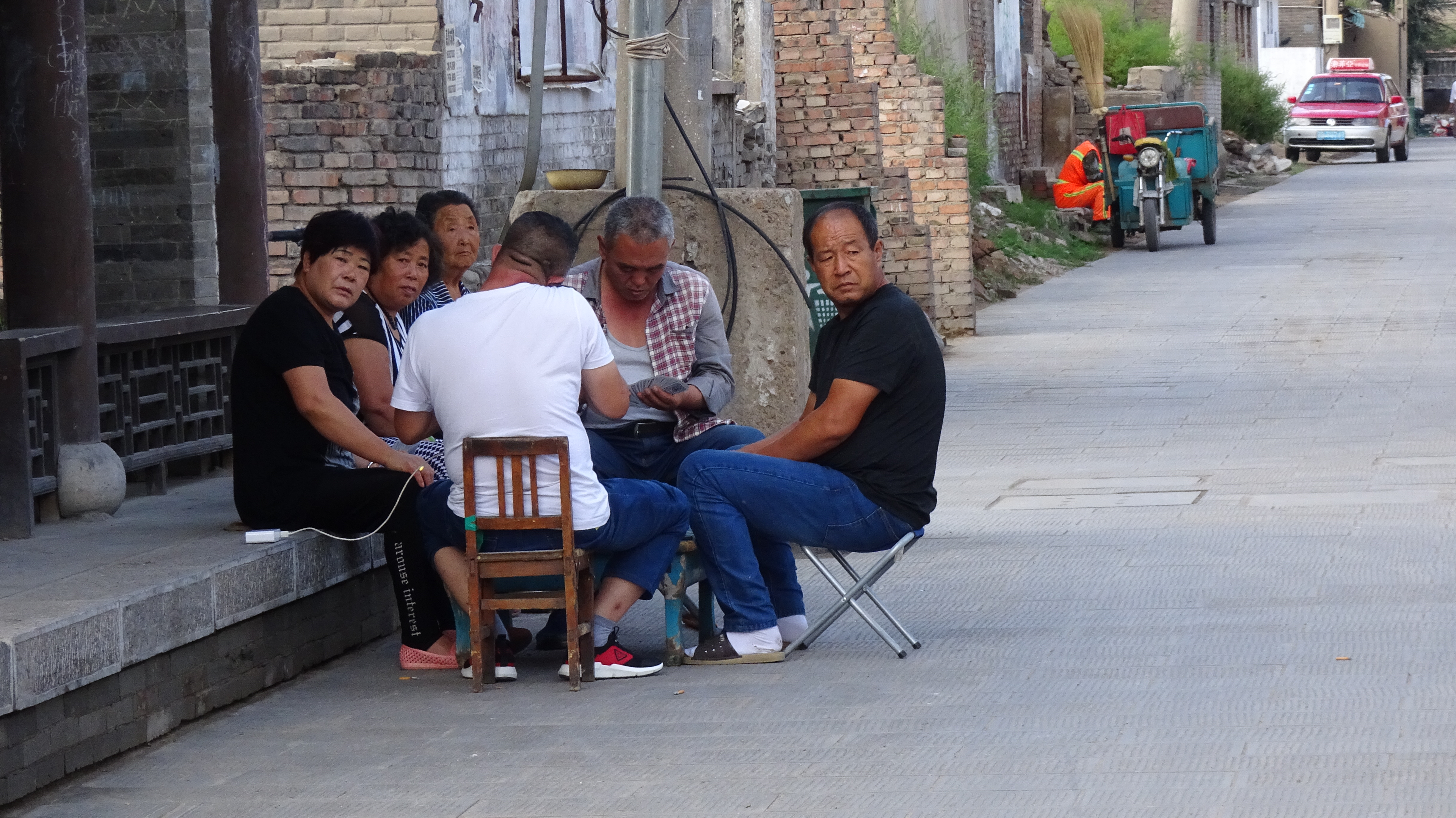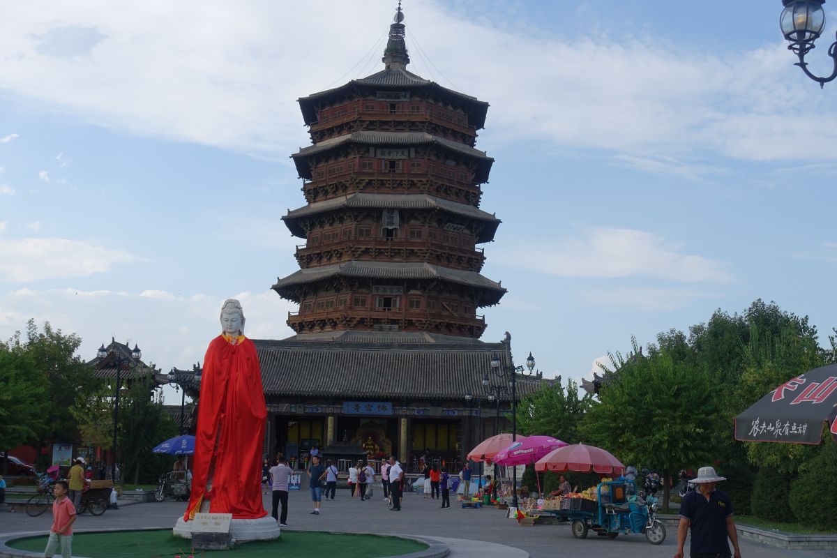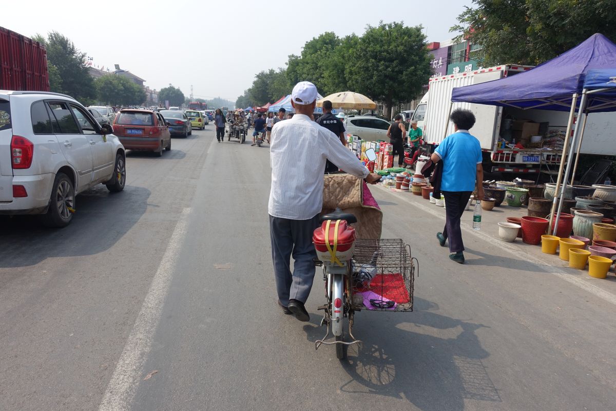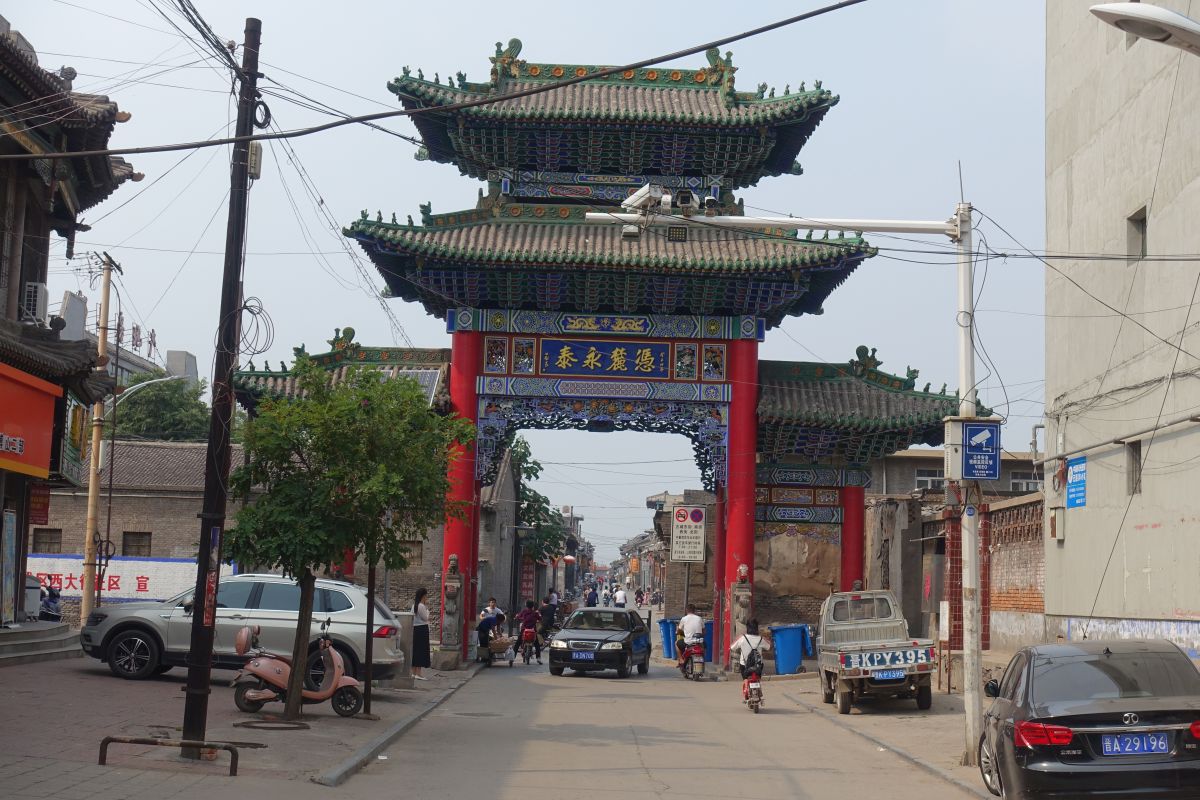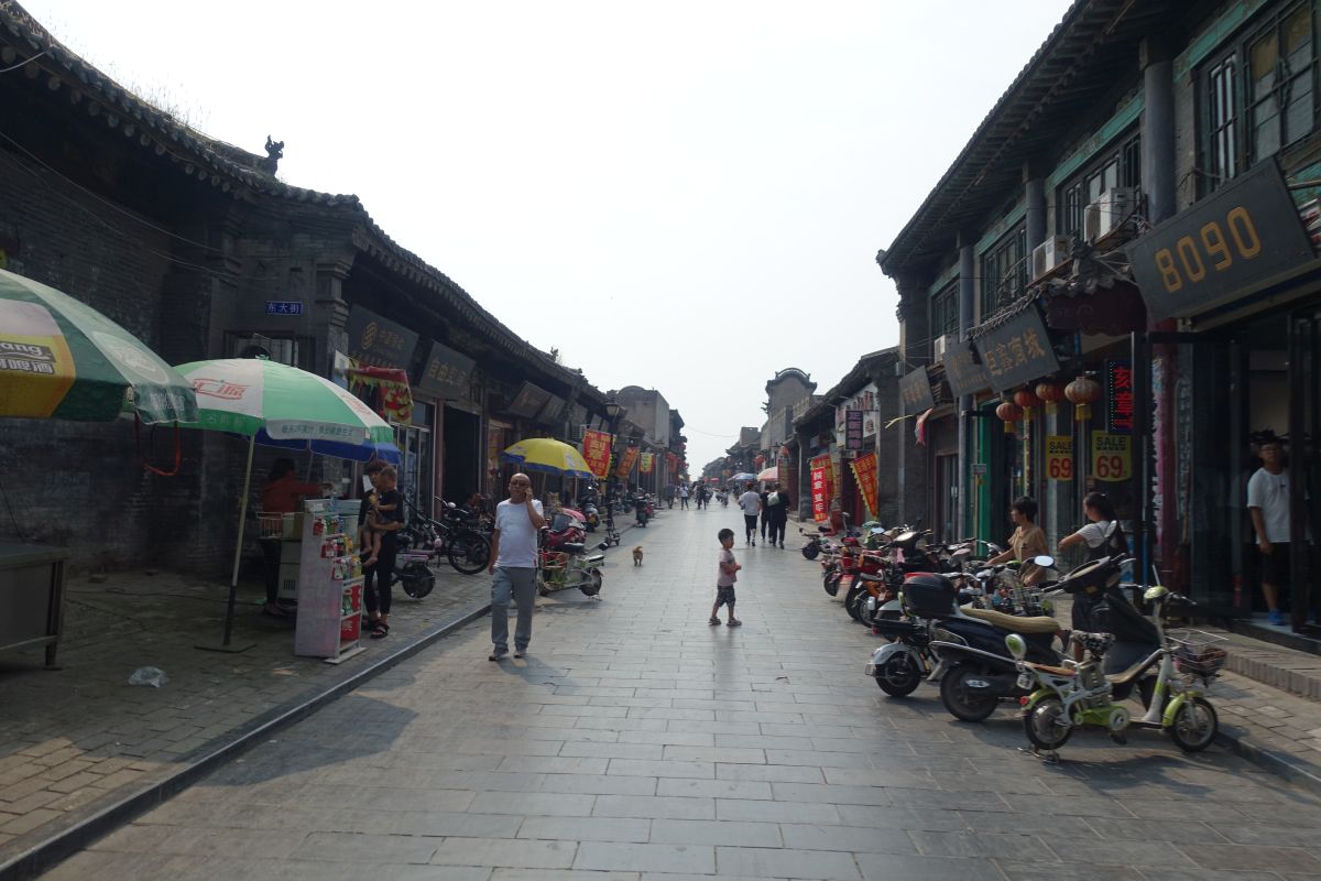 Wir sind in der kleinen Stadt Taihuai, die aus dem gleichnamigen Dorf enstanden ist. Das Dorf wurde 2008–13 abgebrochen und verlegt, um die innere Welterbestätte (der Tempelanlagen) von Siedlungen frei zu machen. So entstand eine Art Nationalpark. Den entschädigten Bewohnern wurden 23 km entfernt neue Häuser zur Verfügung gestellt.