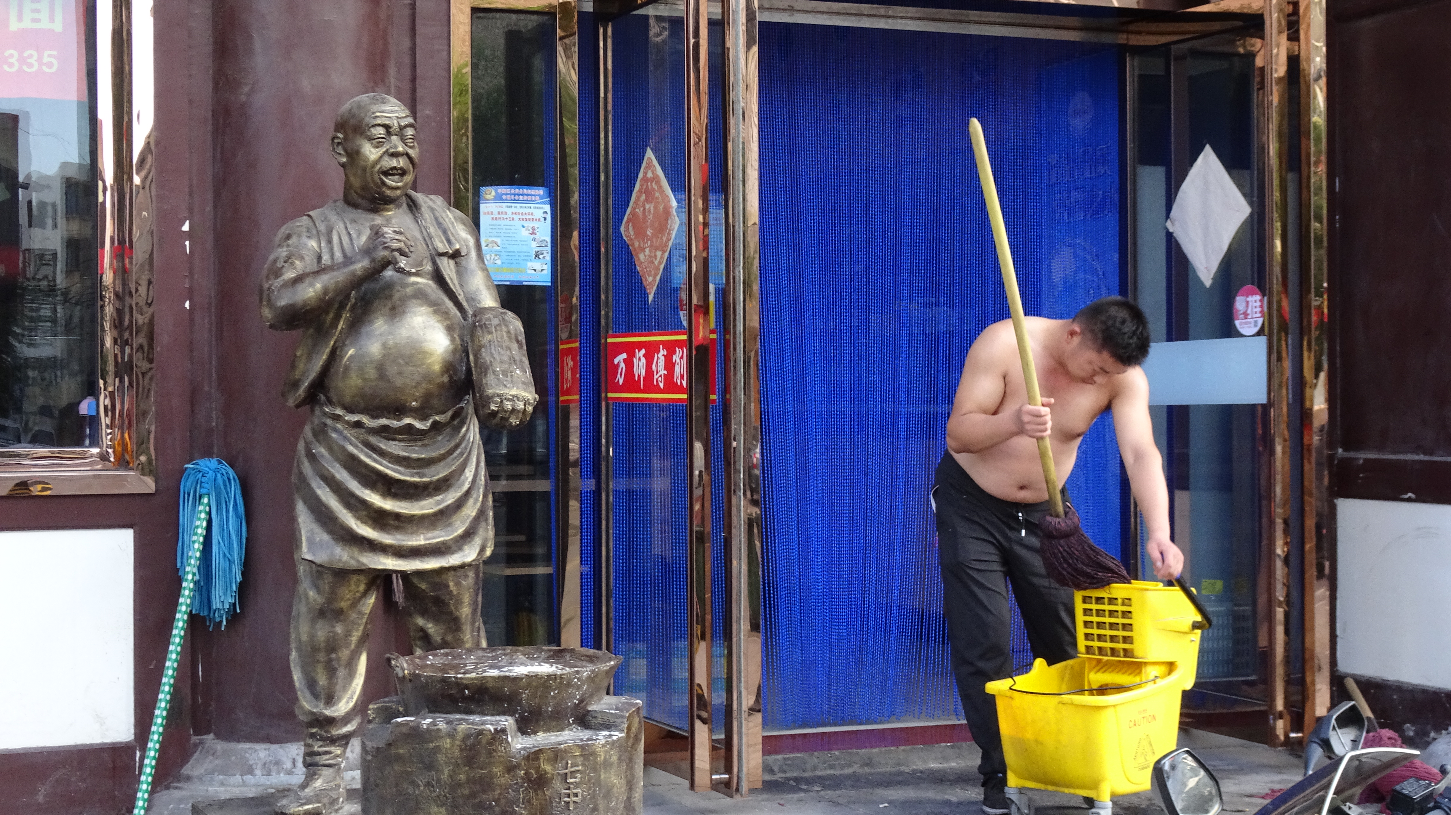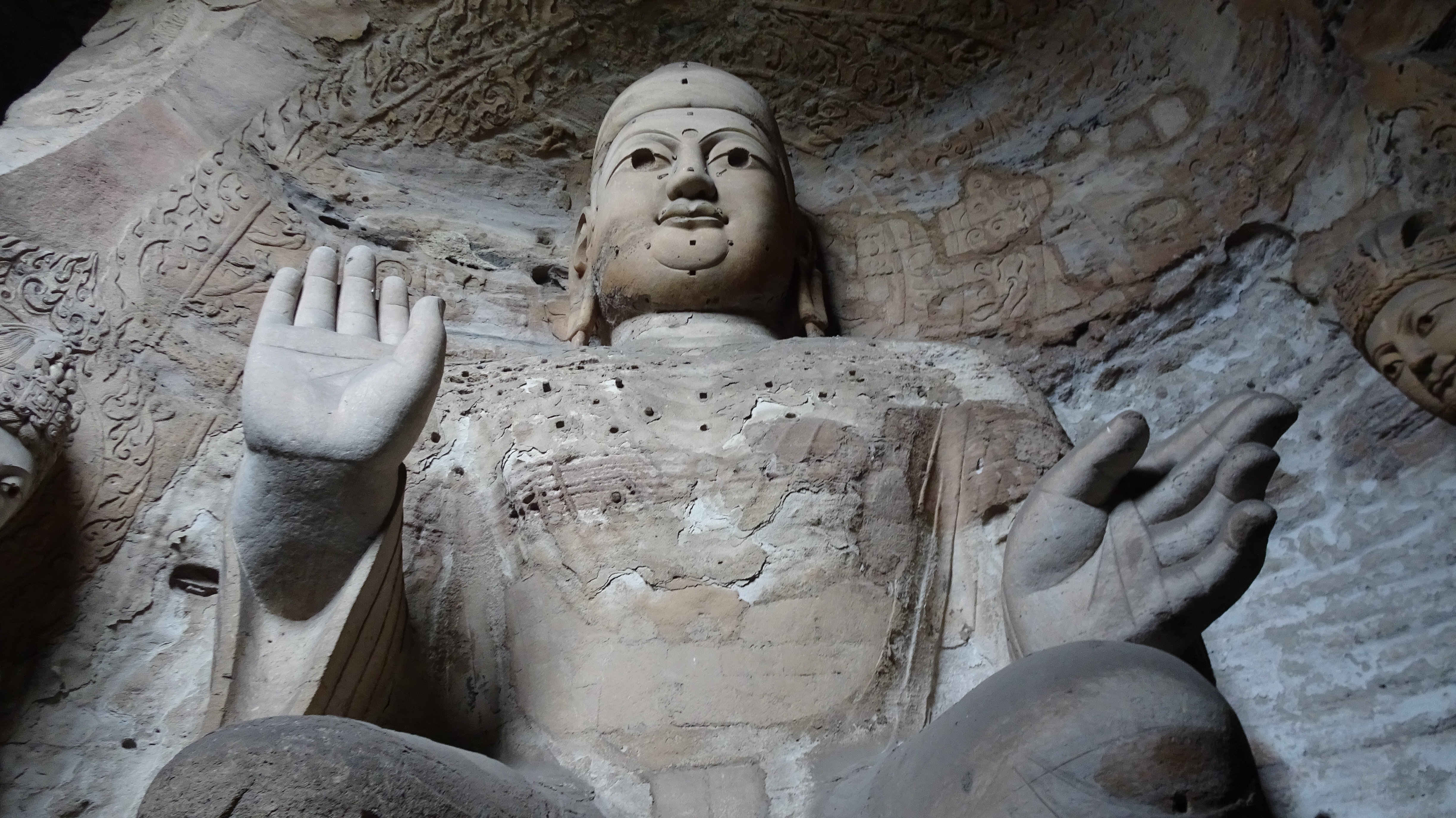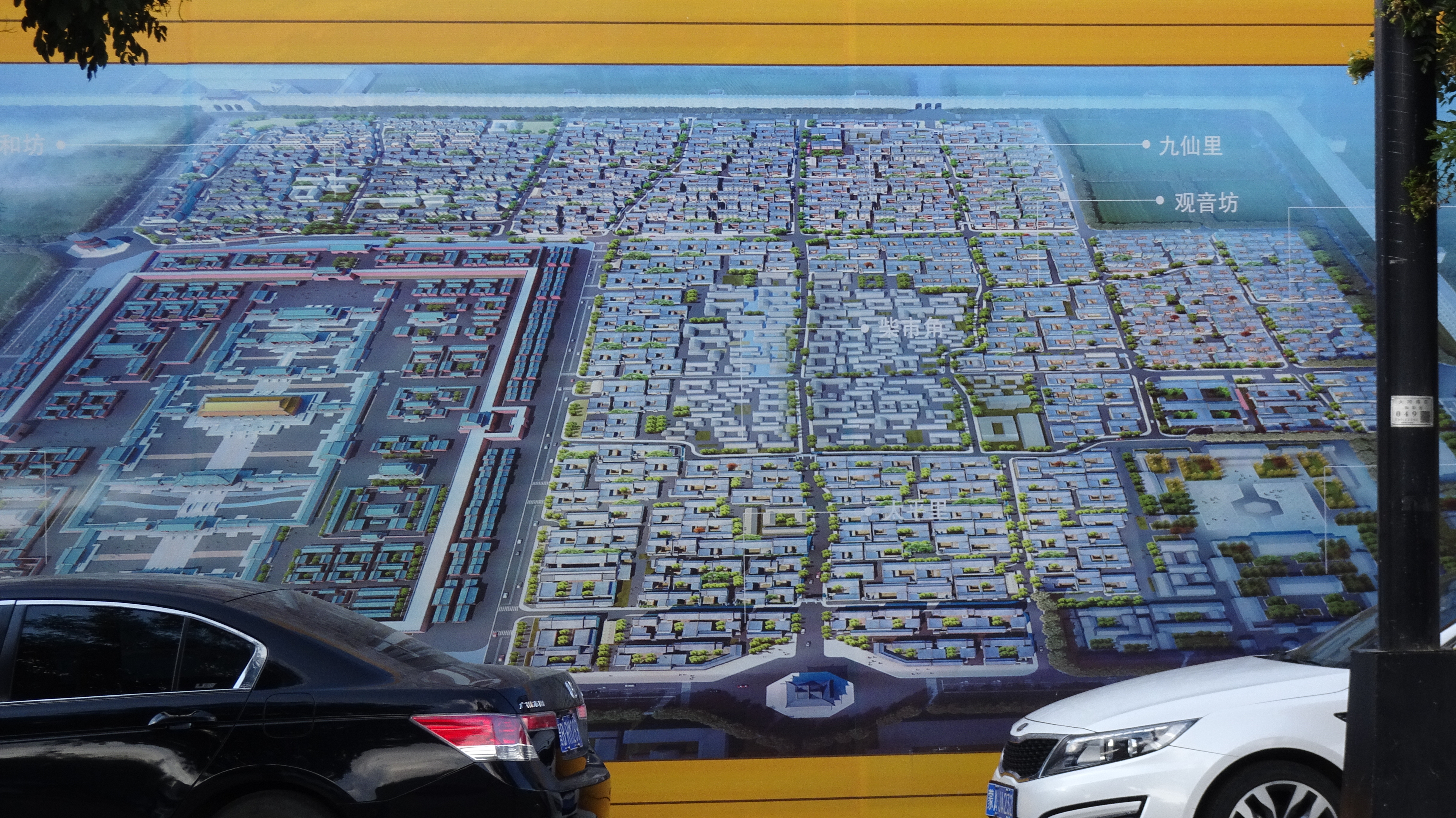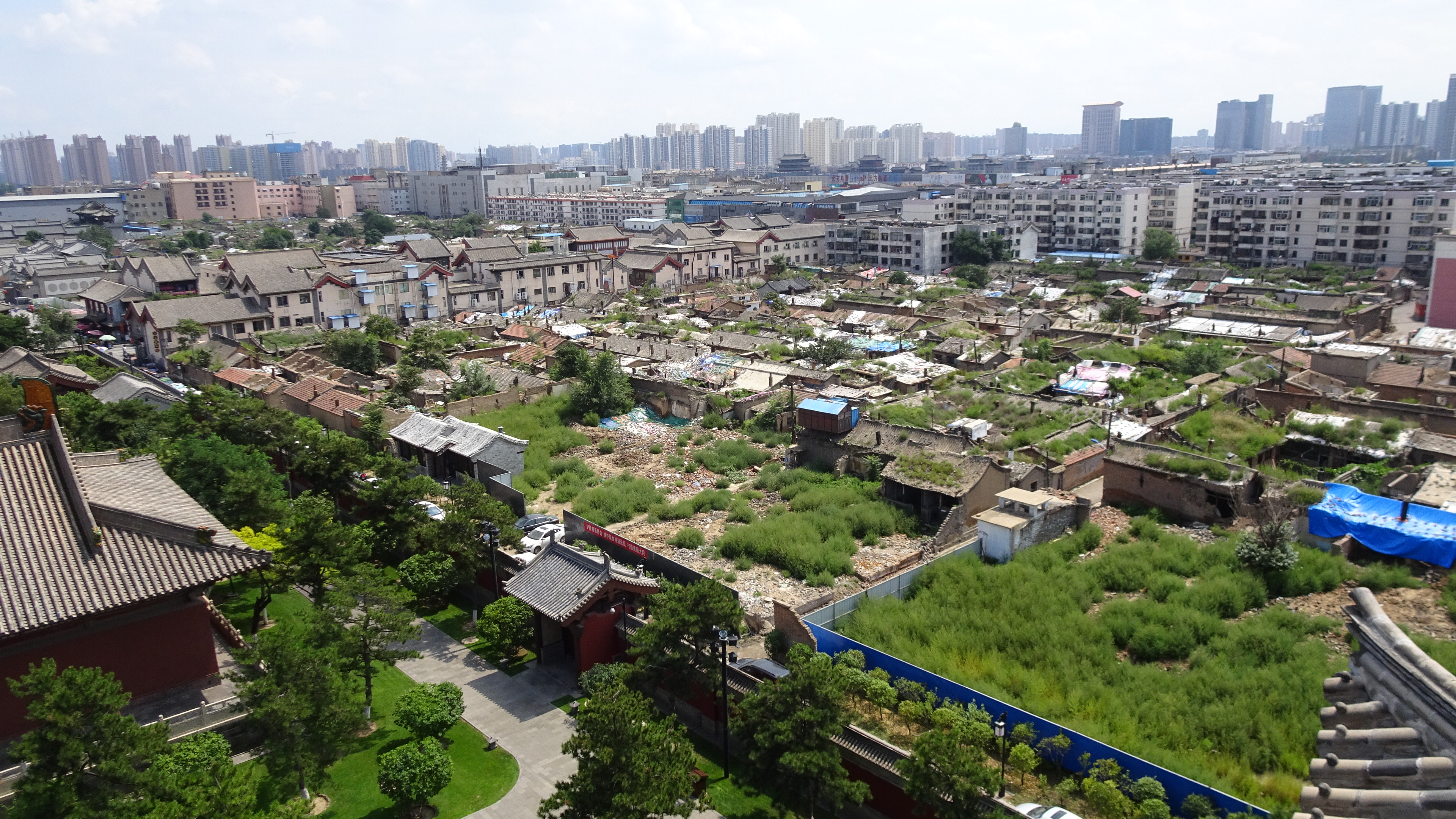Wir sind in der kleinen Stadt Taihuai, die aus dem gleichnamigen Dorf enstanden ist. Das Dorf wurde 2008–13 abgebrochen und verlegt, um die innere Welterbestätte (der Tempelanlagen) von Siedlungen frei zu machen. So entstand eine Art Nationalpark. Den entschädigten Bewohnern wurden 23 km entfernt neue Häuser zur Verfügung gestellt.