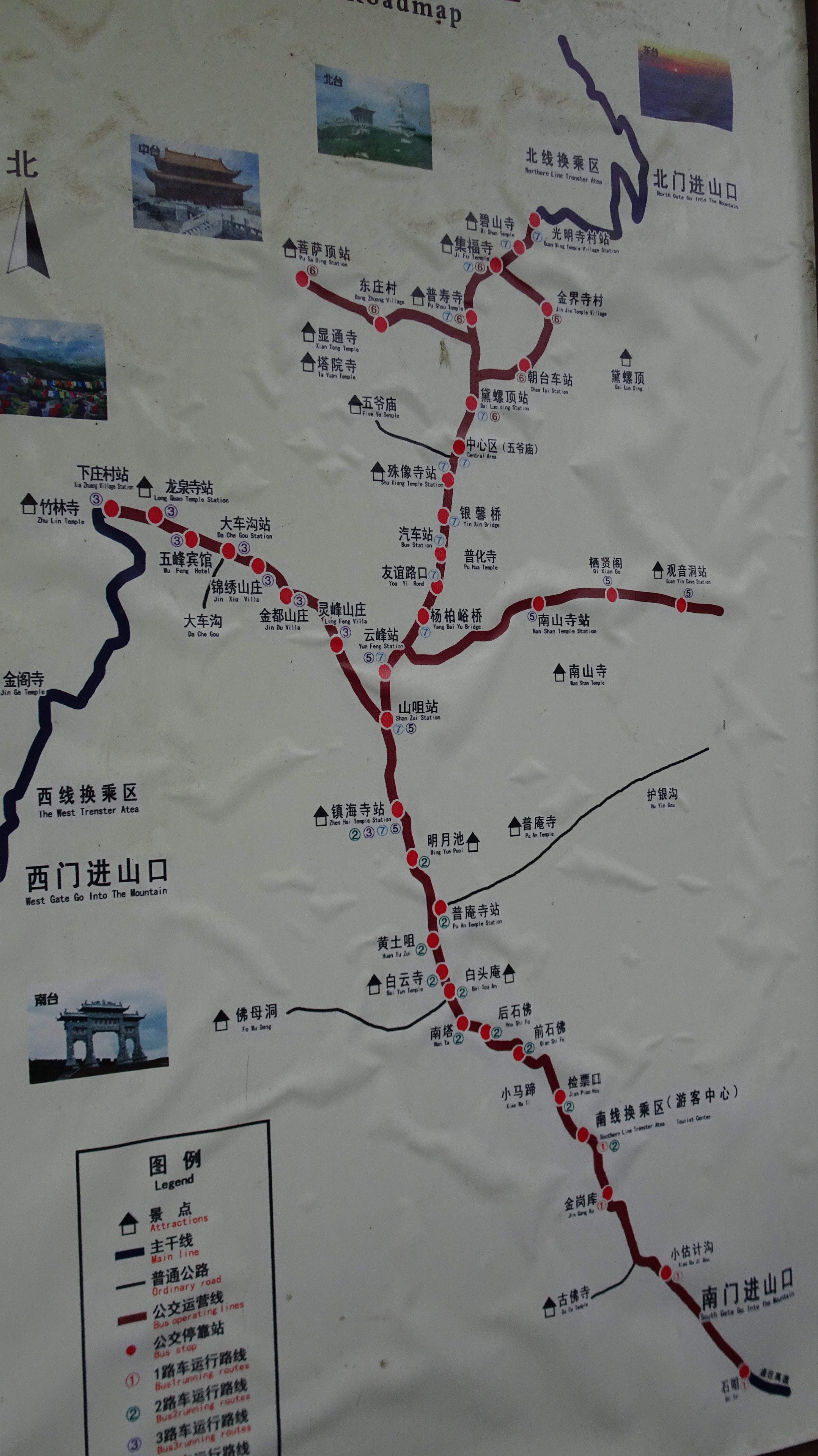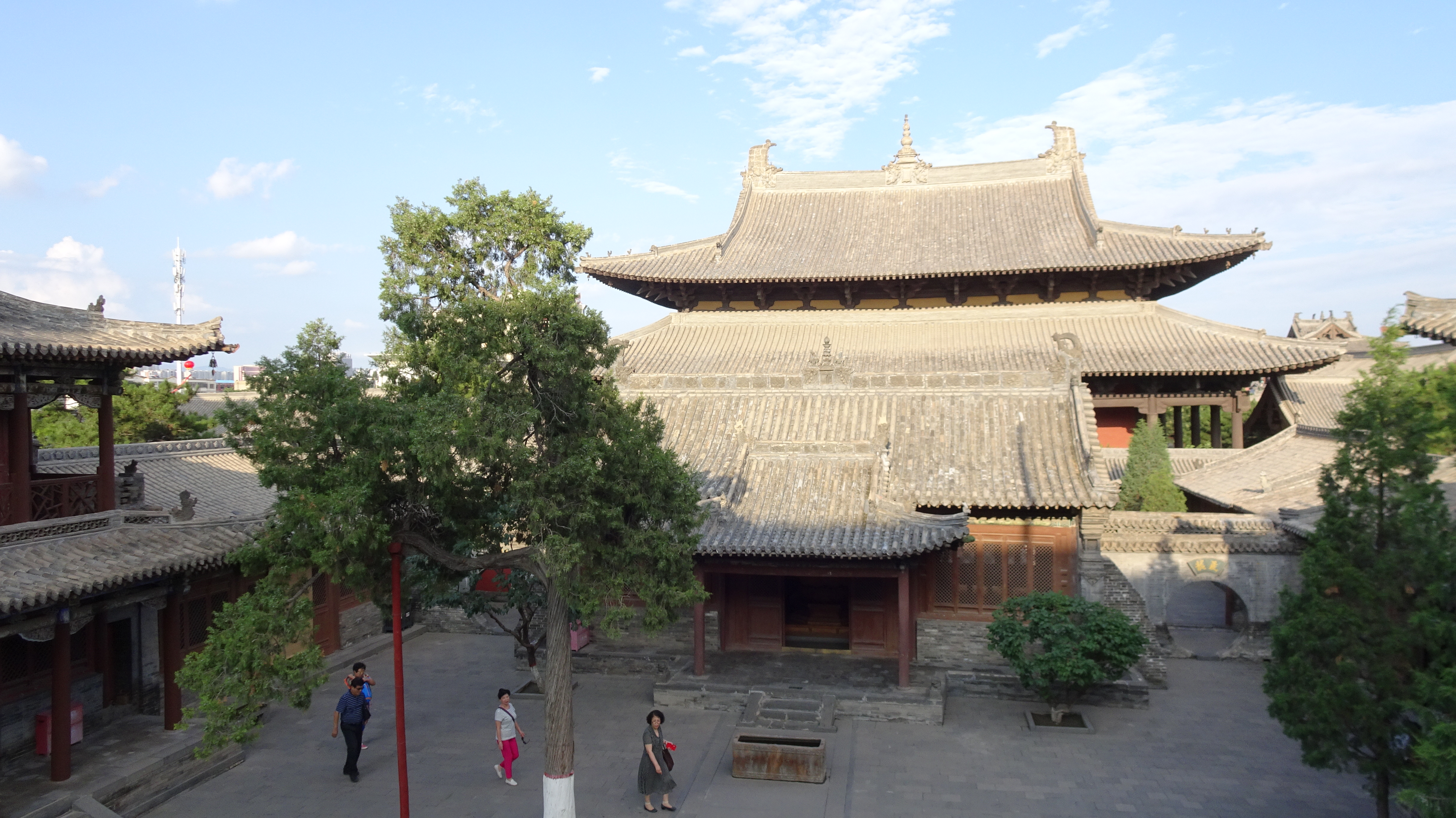 Der Nanshan-Tempel, hoch auf dem Berg, ist zu Fuß in 10 Minuten vom Hotel aus erreichbar. Er gehört mit frühester Bauzeit in der Yuan-Dynastie zu den größeren Klosteranlagen im Inneren Wutai Shan. In drei Teile gegliedert erstreckt sie sich über sieben Terrassen. Die drei tiefstgelegenen werden Jile Si („Tempel der Höchsten Erbauung“) genannt; die mittlere Terrasse heißt „Halle der Güte und Tugend“ und die oberen drei tragen den Namen „Das Land behütender Tempel“.