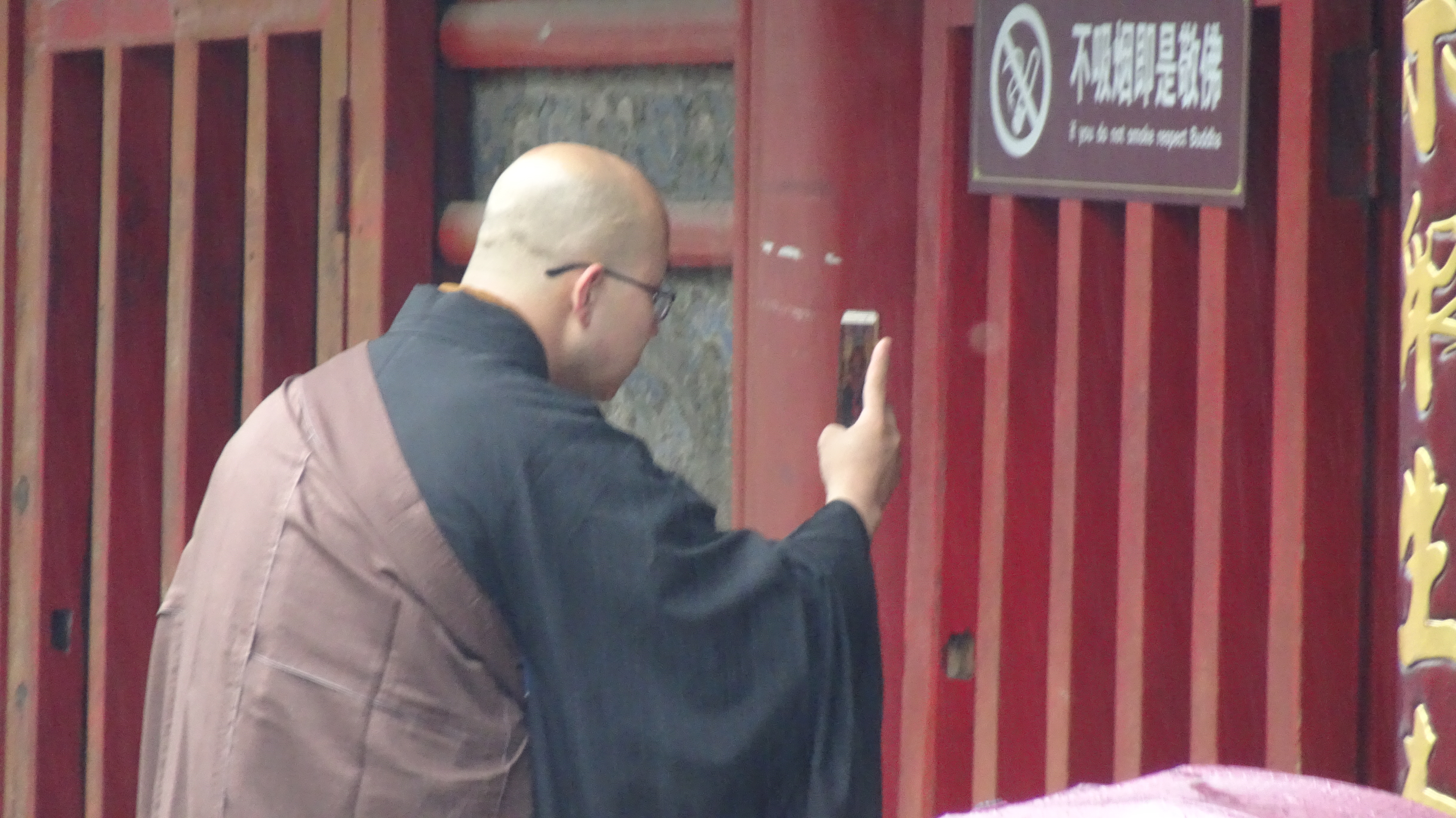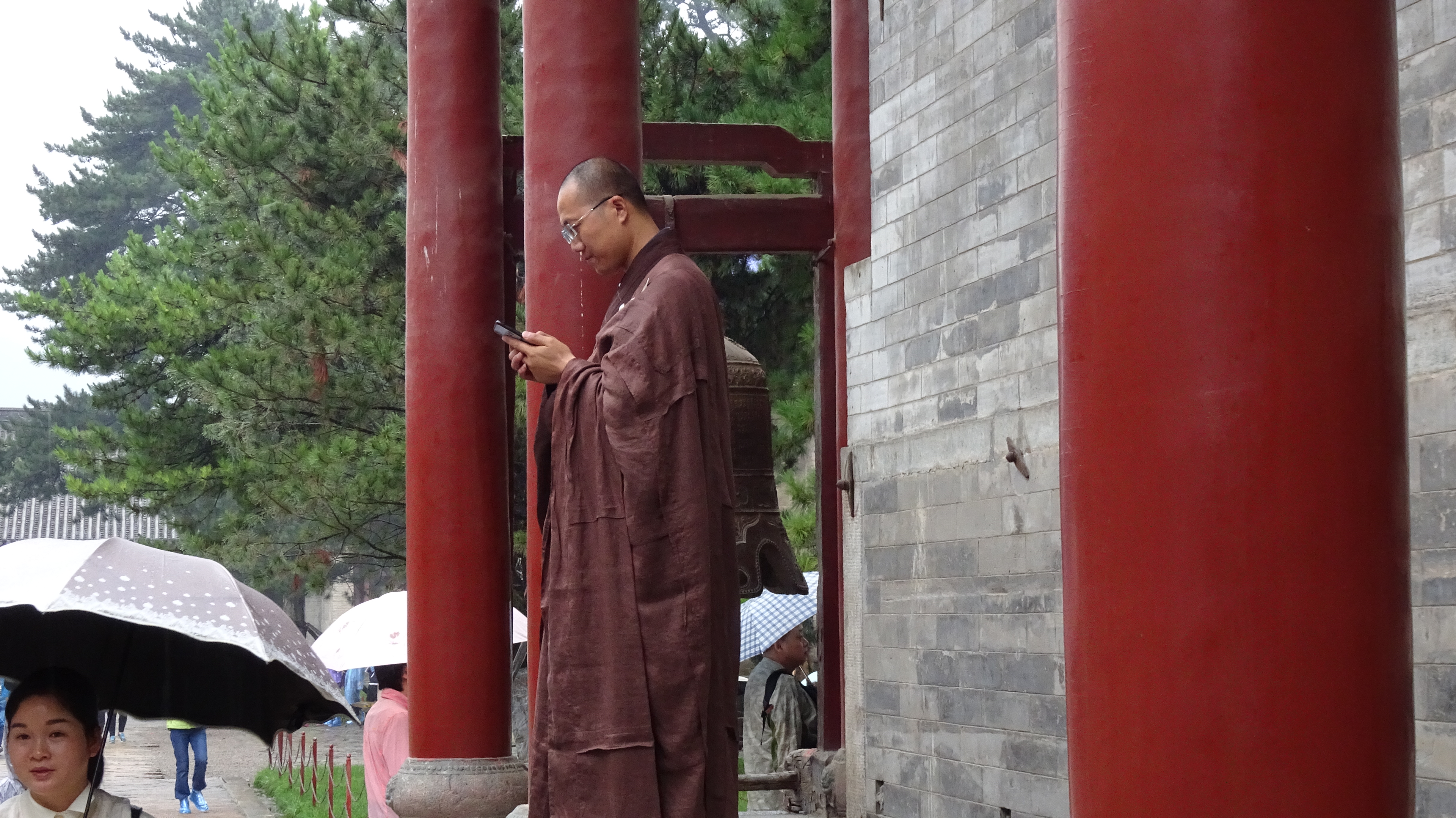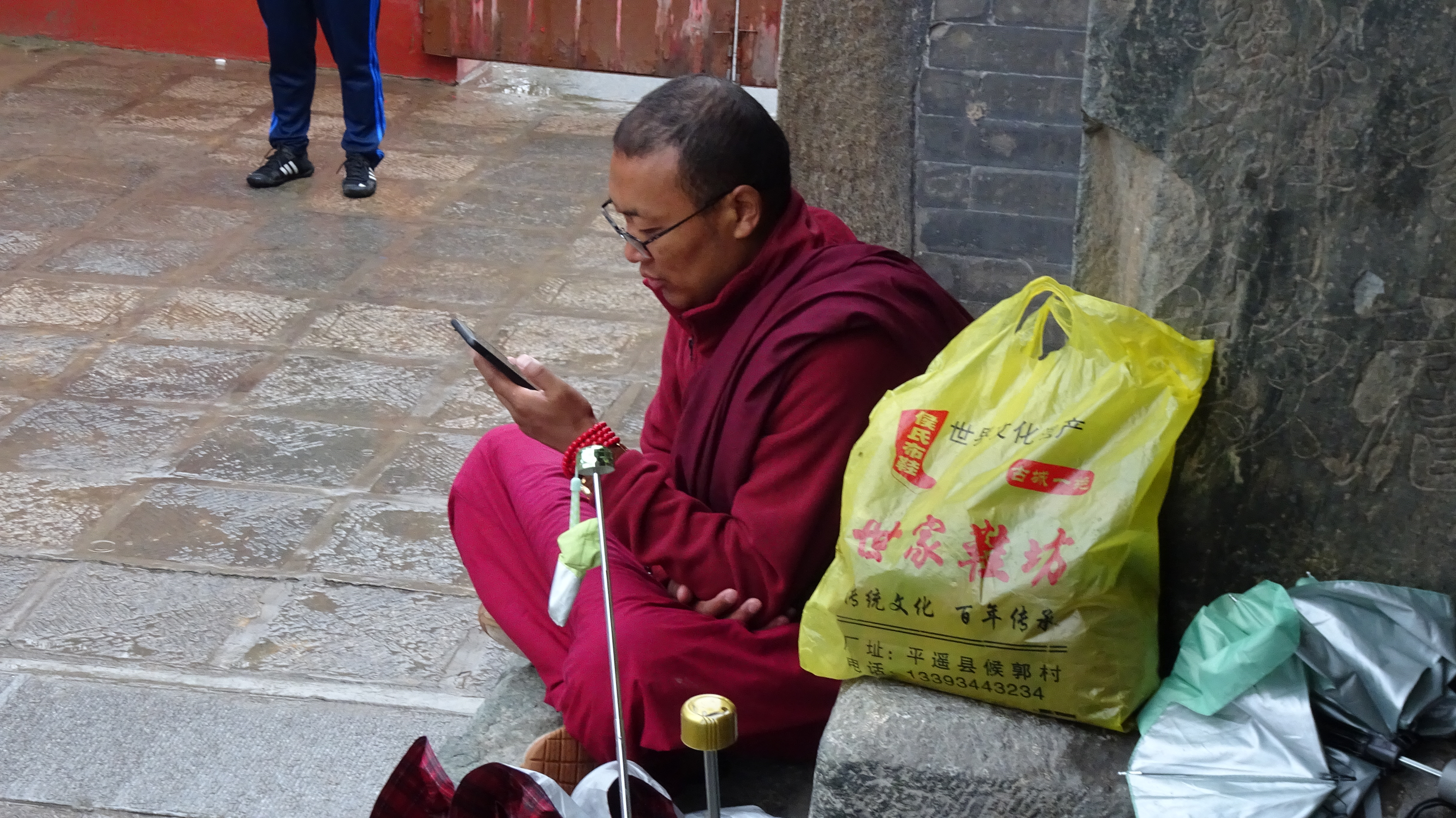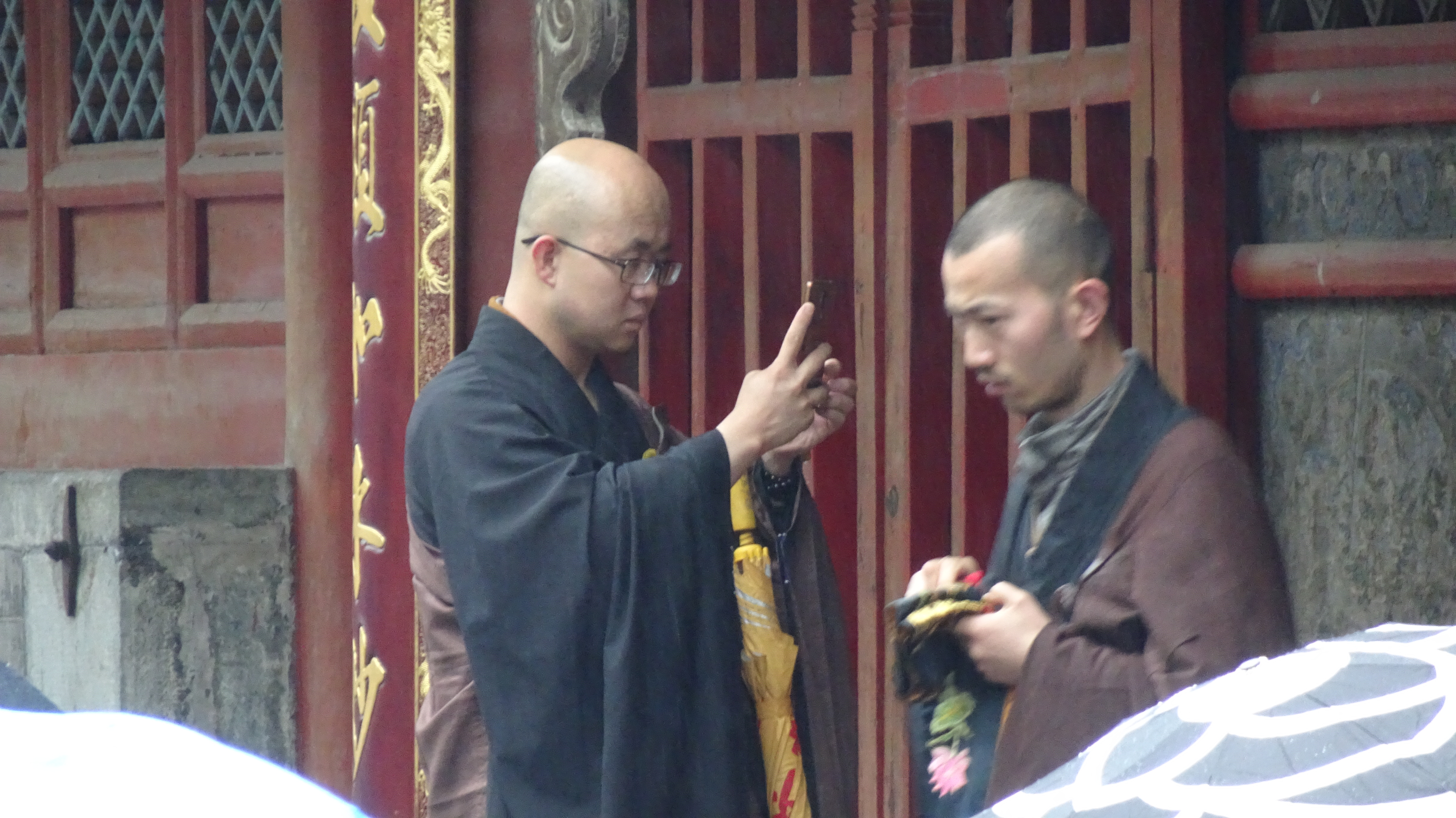 2. Zur Grundausstattung eines Mönchs gehört hier neben der traditionellen Kleidung unbedingt ein Smartphone. (Einer las davon sogar seinen Gebetstext ab!) – Religion trifft Moderne.