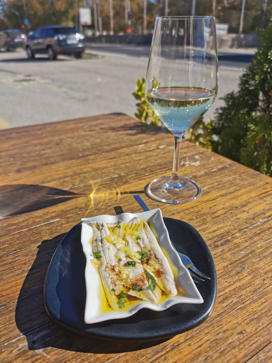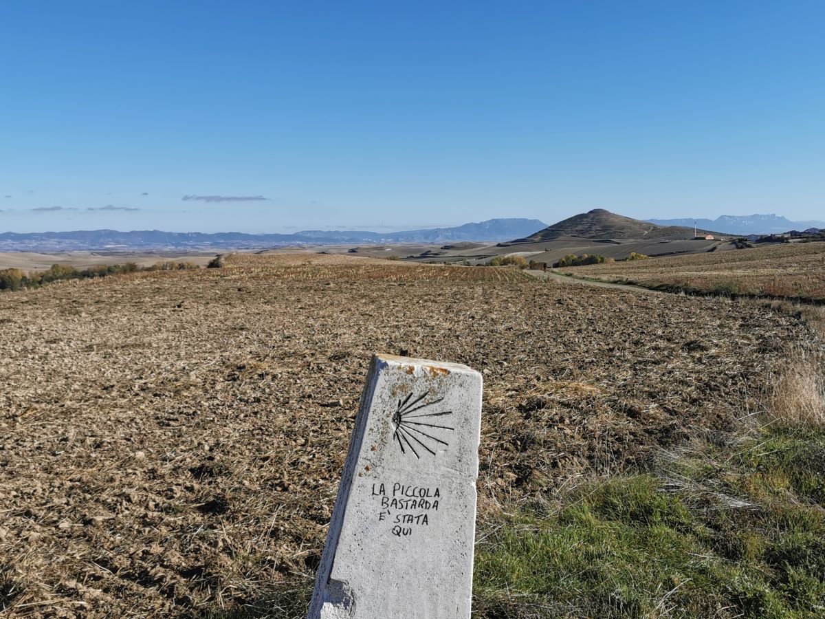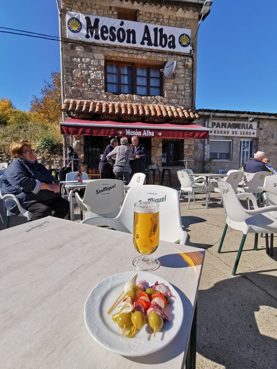 Und auf der letzten Etappe nach Burgos ist dann wieder schöner Herbst, klare Luft, strahlend blauer Himmel und eine Landschaft, die mich ein wenig an die chinesische Seidenstraße erinnert. Auch weil der Wind weiterhin von vorne kommt. Mit dem Verlassen der Region Rioja sind dann auch plötzlich die Weinberge weg, dafür gibt es einige nette Tapaskneipen auf dem Weg, so dass mein Mittagessen heute auf drei Stopps aufgeteilt wird. Einmal gab es Oktopus, einmal Sardinen und einmal Muscheln.