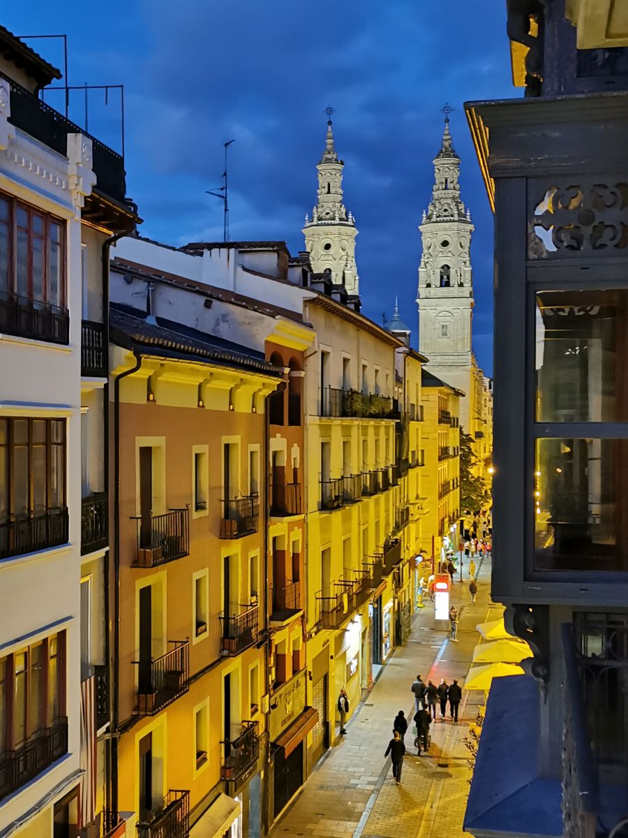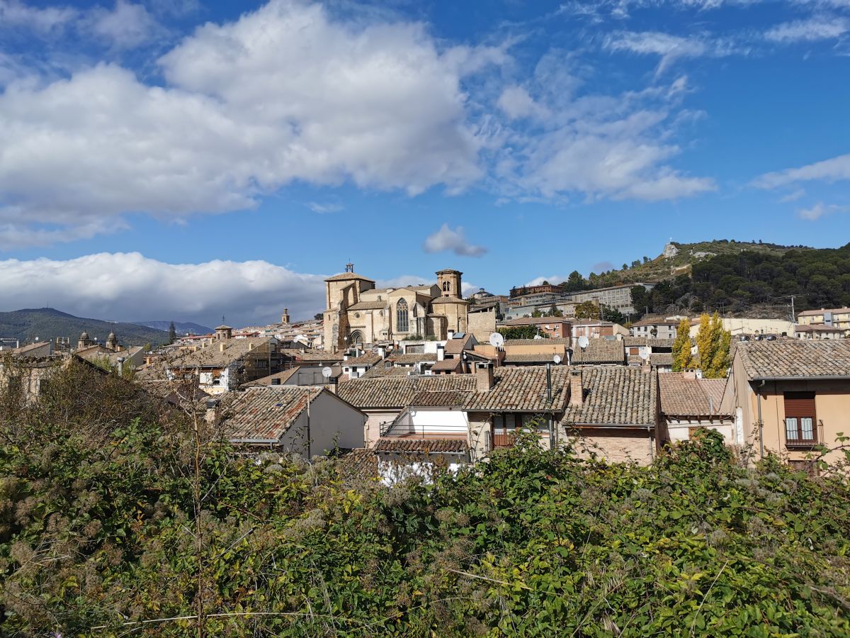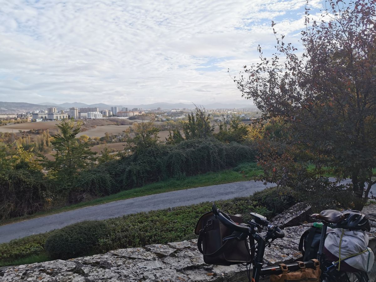 Die insgesamt 98 Kilometer ziehen sich ein wenig, was aber eher an meinem halbfitten Zustand liegt. Die Landschaft ist zwischendrin wunderschön, immer wieder ist ein altes Dorf oder eine Kleinstadt auf einem Hügel im Blick, mit einer imposanten Kirche. Und von der Alto de Perdon geht es auch tendenziell bergab. Sprich, Logroño liegt tiefer als die Passhöhe. Ich habe es auf jeden Fall vor Sonnenuntergang geschaft und mir noch schnell eine Pizza reingezogen. Ein spannender Tag, aber ermüdend.