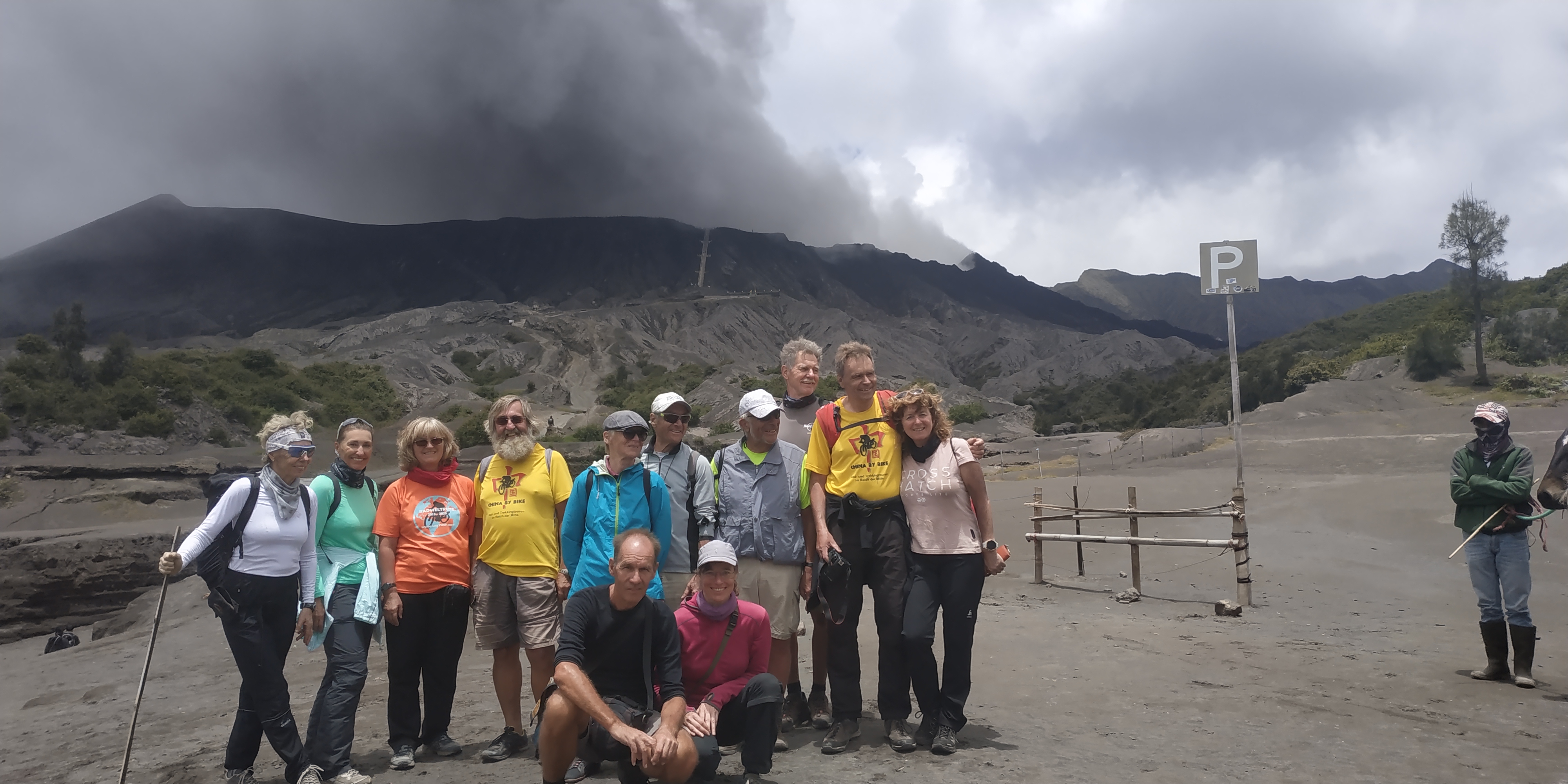 Der Sonnenaufgang ist durch die Wolken ins Wasser gefallen, aber die spektakuläre Anfahrt durch das Sandmeer und gestern der Spaziergang zum Bromo hat uns mehr als entschädigt dafür. Die Eruptionen sind stärker geworden über Nacht. Jetzt kommt der Ascheregen schon über die äußere Kaldera hinaus also. Die ersten 5 Kilometer reichen und wir haben alle Vulkansommersprossen.