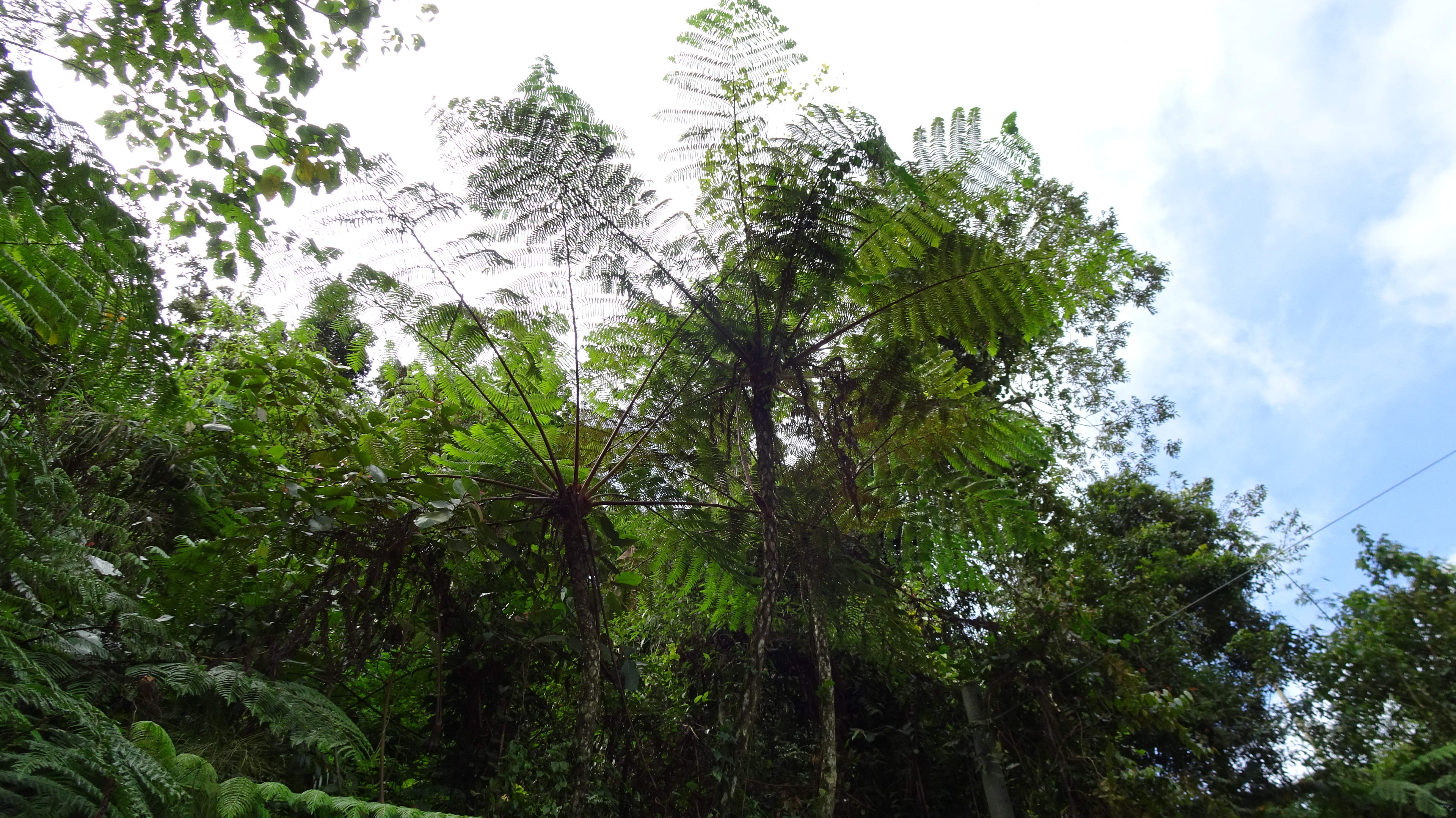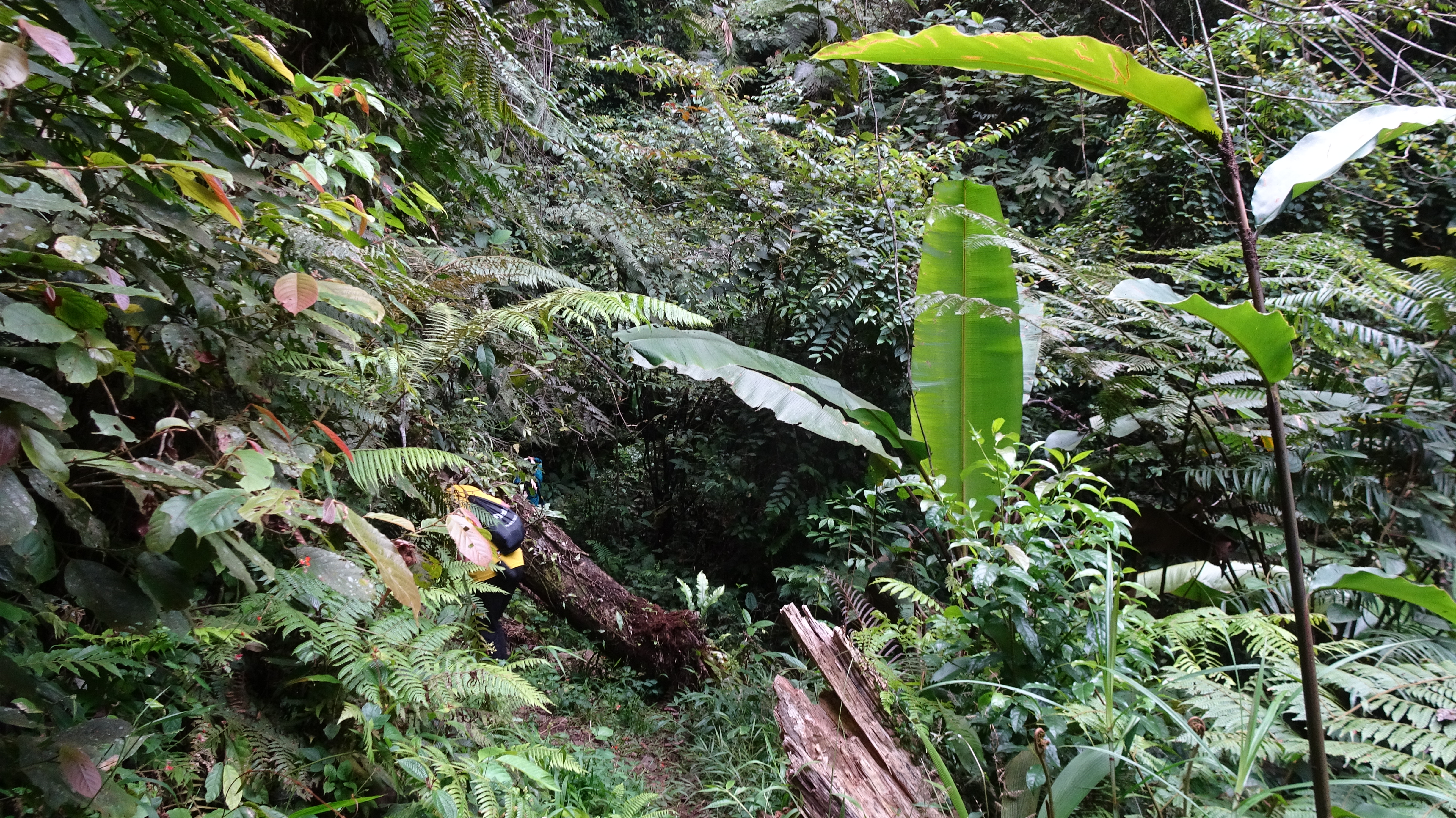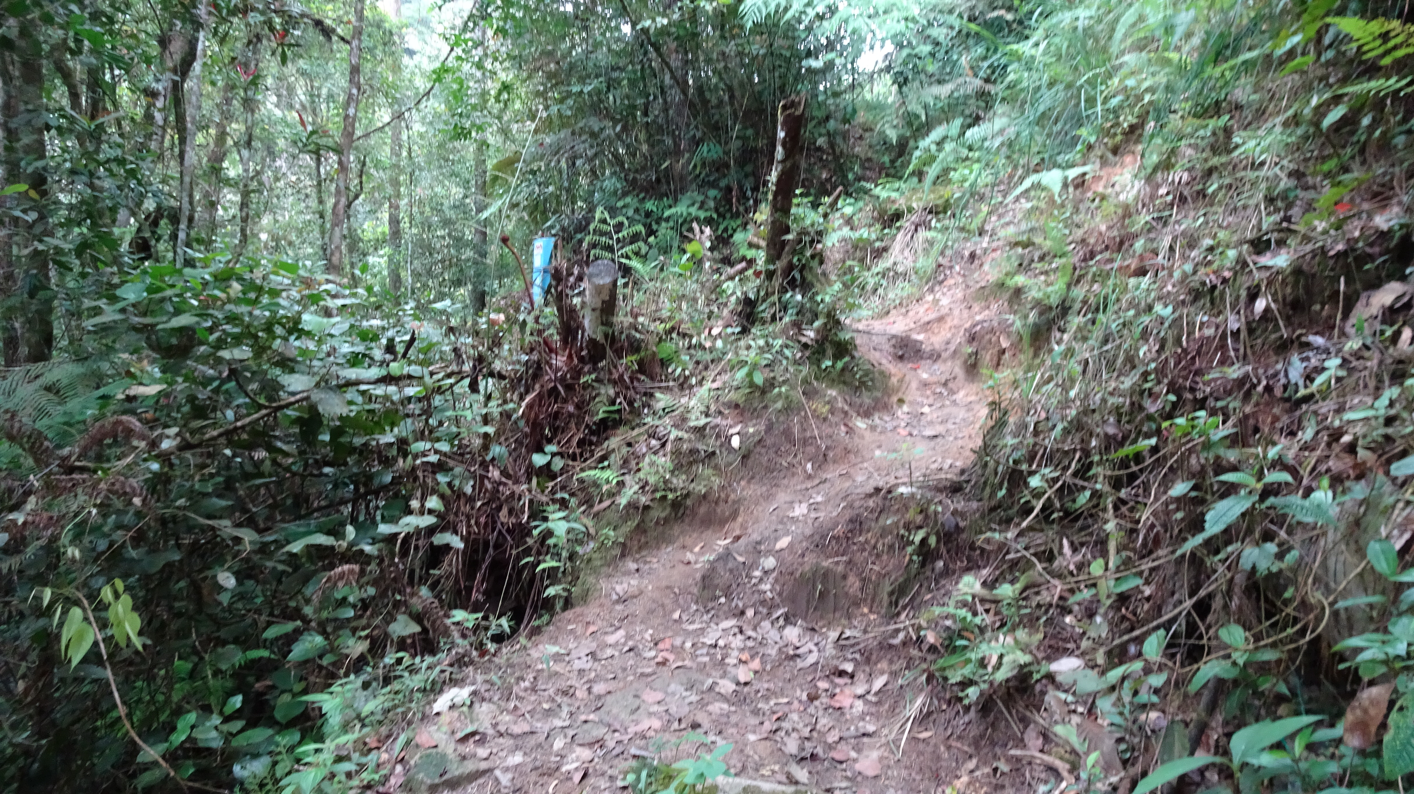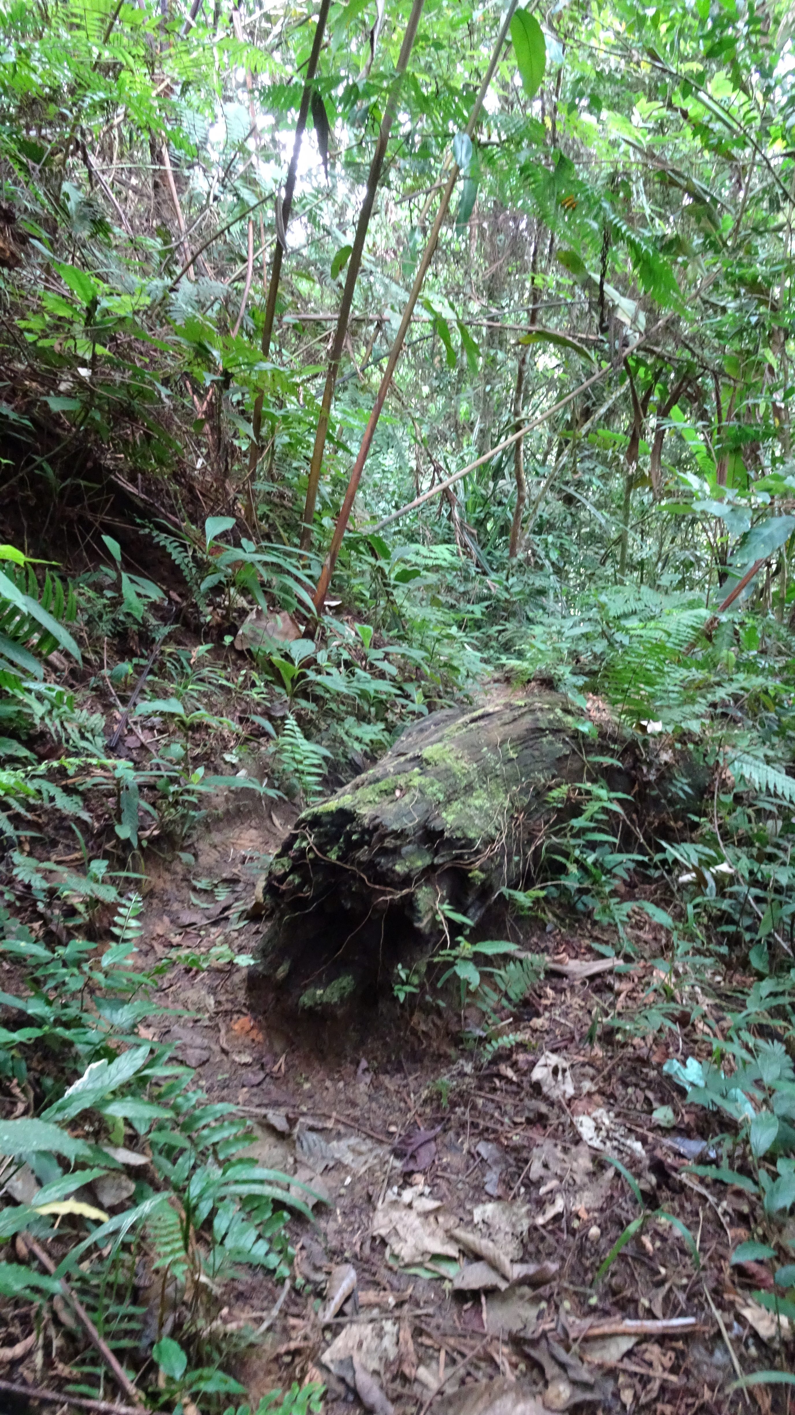 Einfach schön, auf dem schmalen Pfad durch den tropischen Wald zu wandern. Dabei sind zuweilen kleinere oder größere „Hindernisse“ zum Überklettern oder untendurchschlüpfen zu passieren. Wurzeln und Äste bieten ihre Hilfe an, wenn es mal steiler runter oder rauf geht.