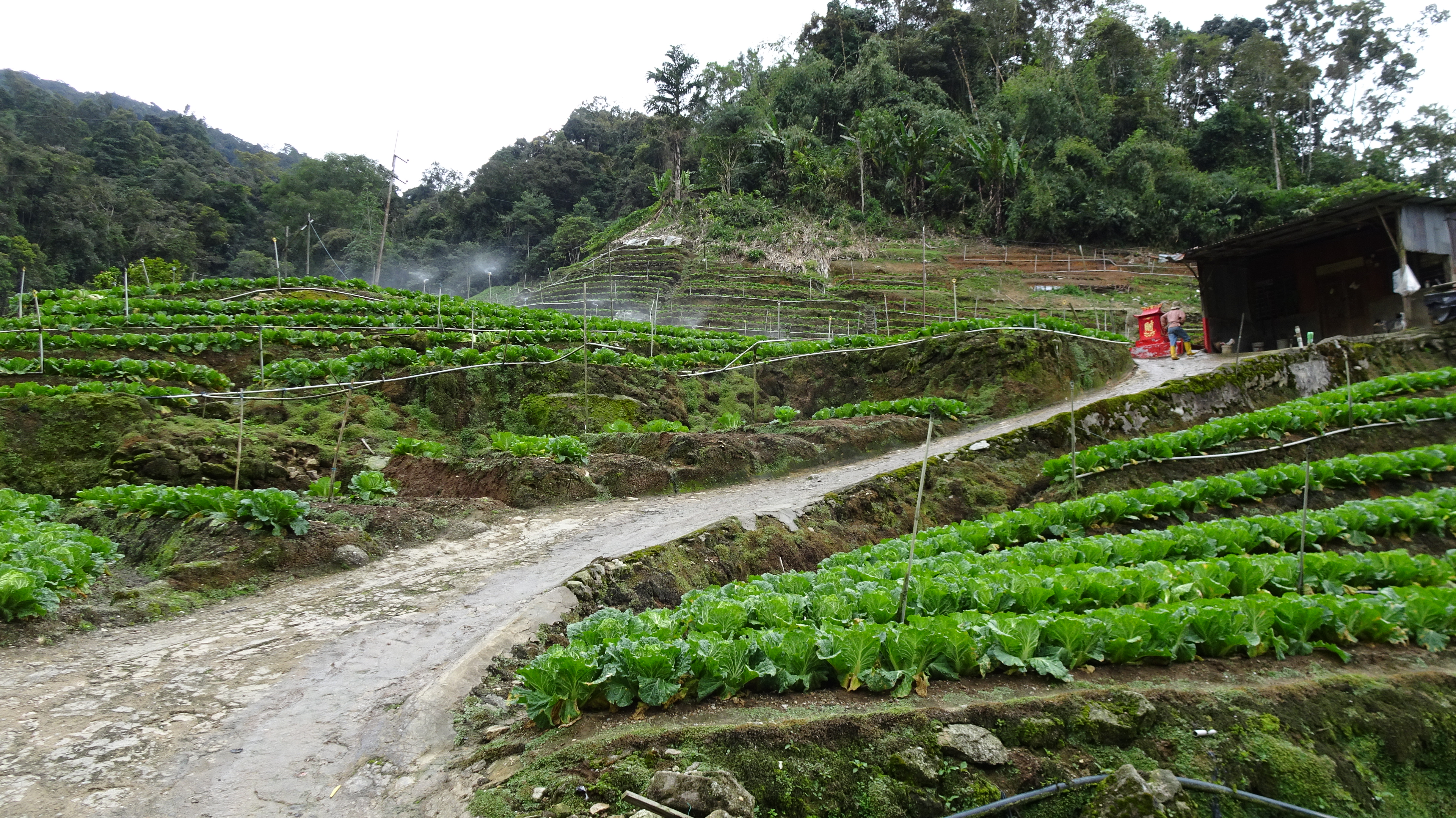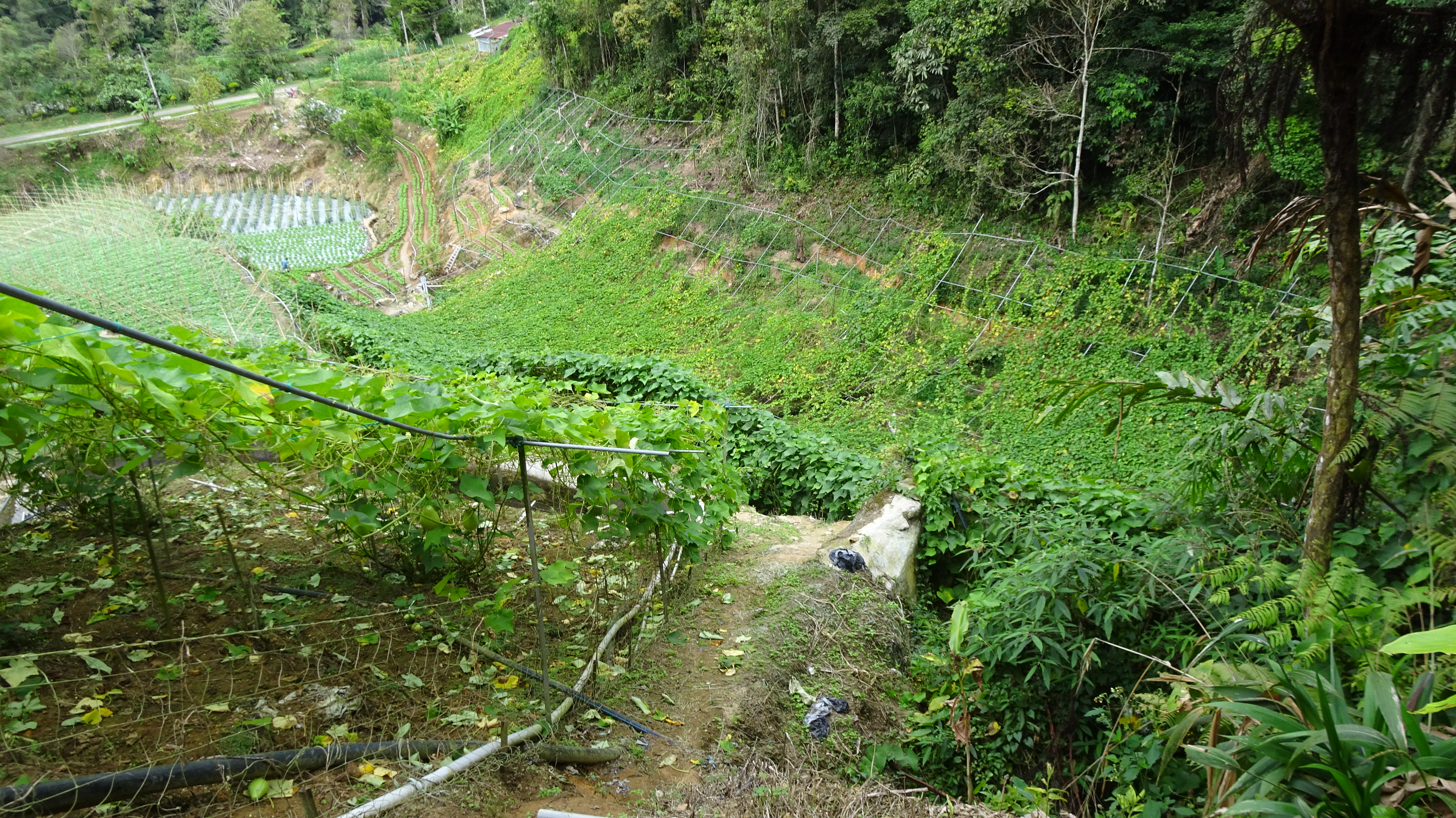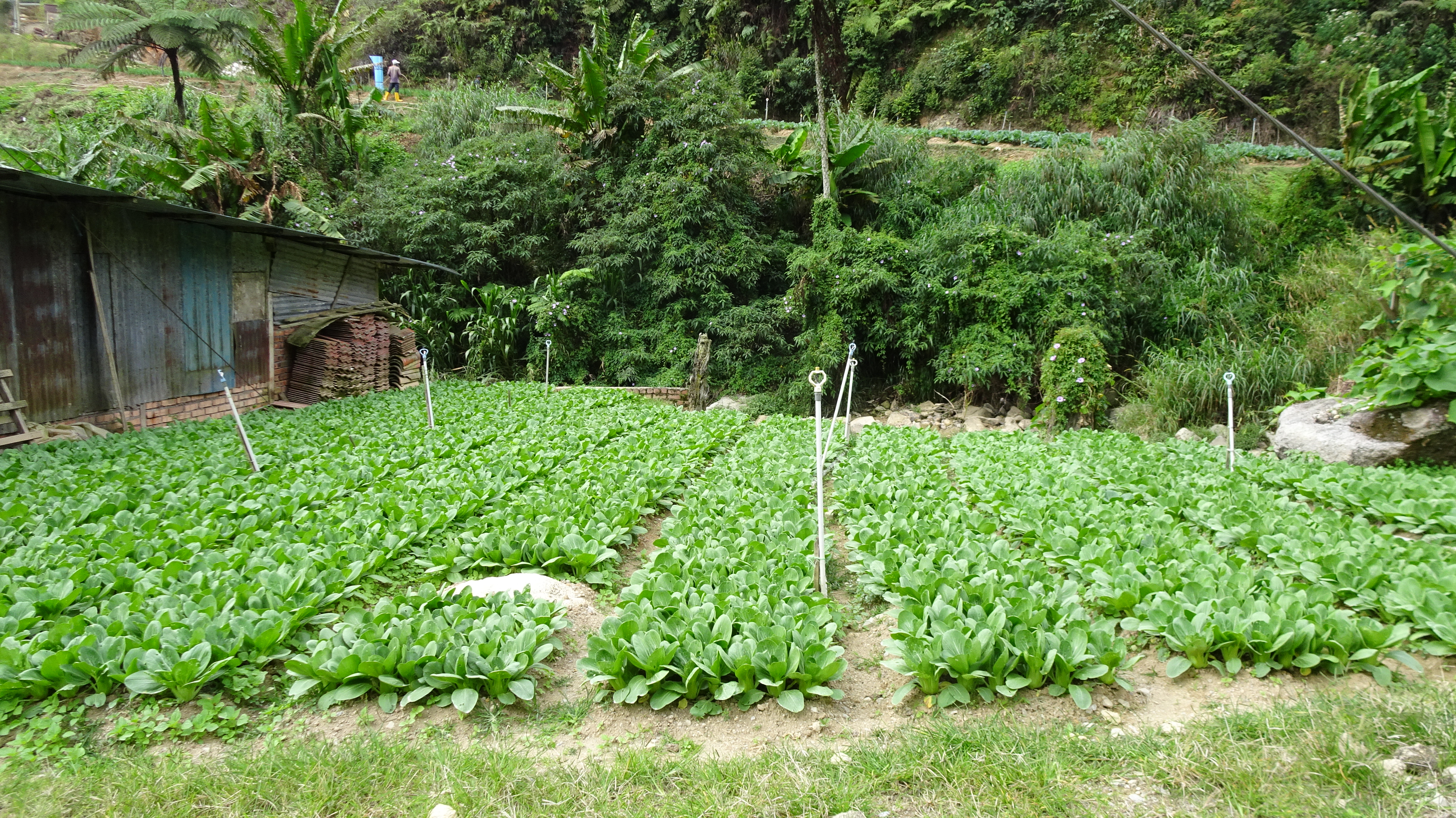Da wo wir später den Trail verlassen, geht es sogar recht steil bergab und wir sind plötzlich mitten in einem riesigen Gemüsegarten.