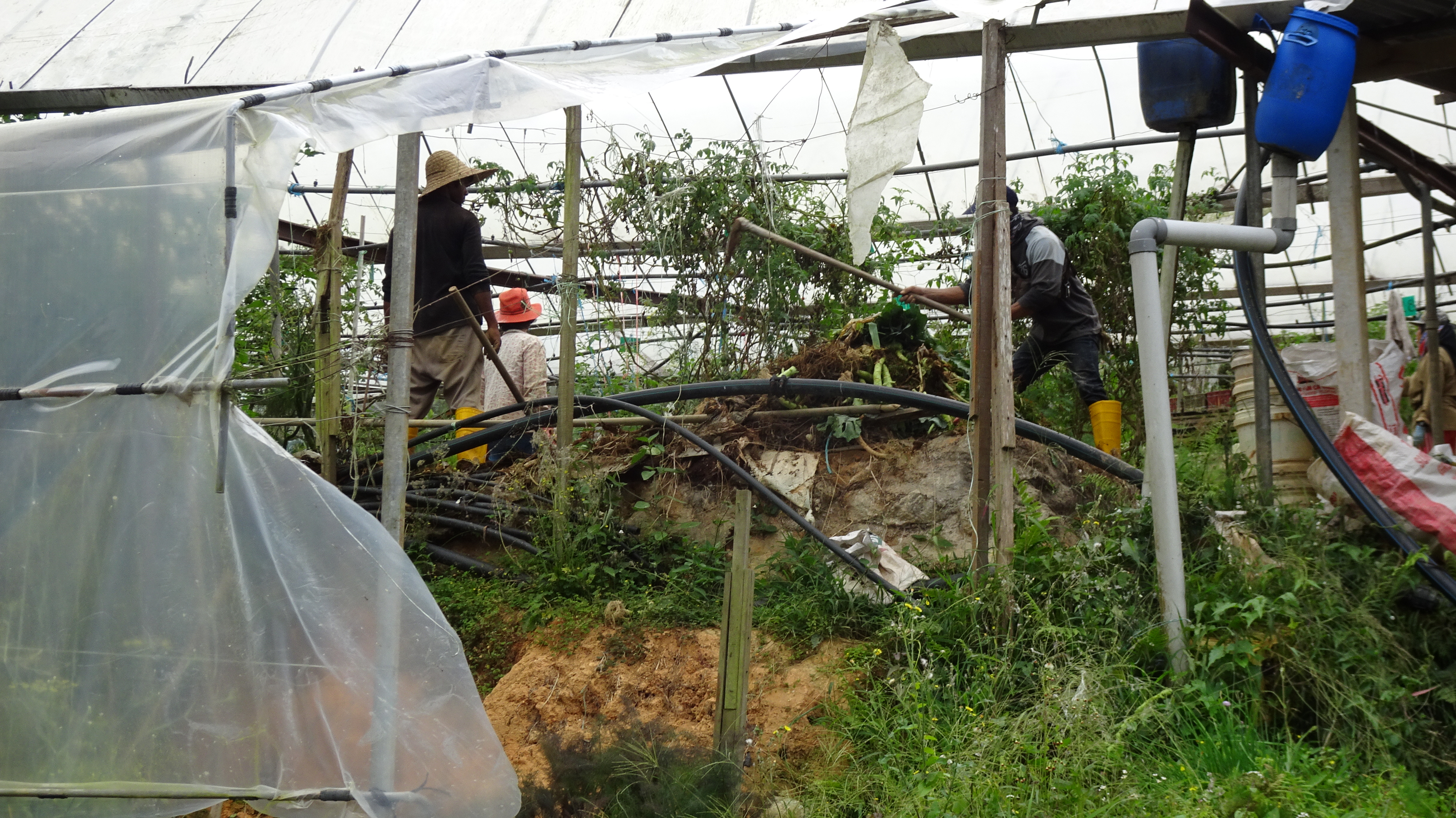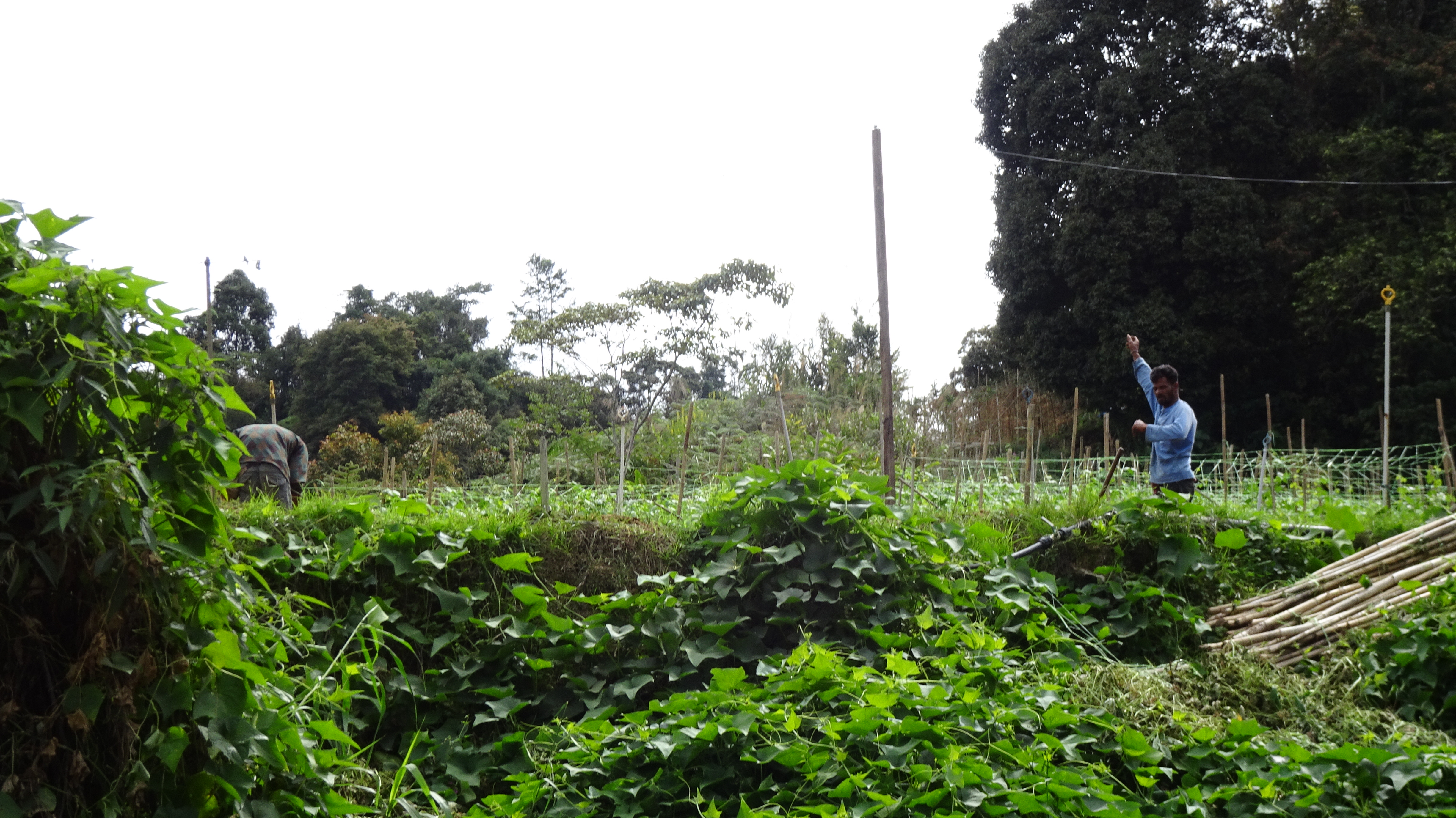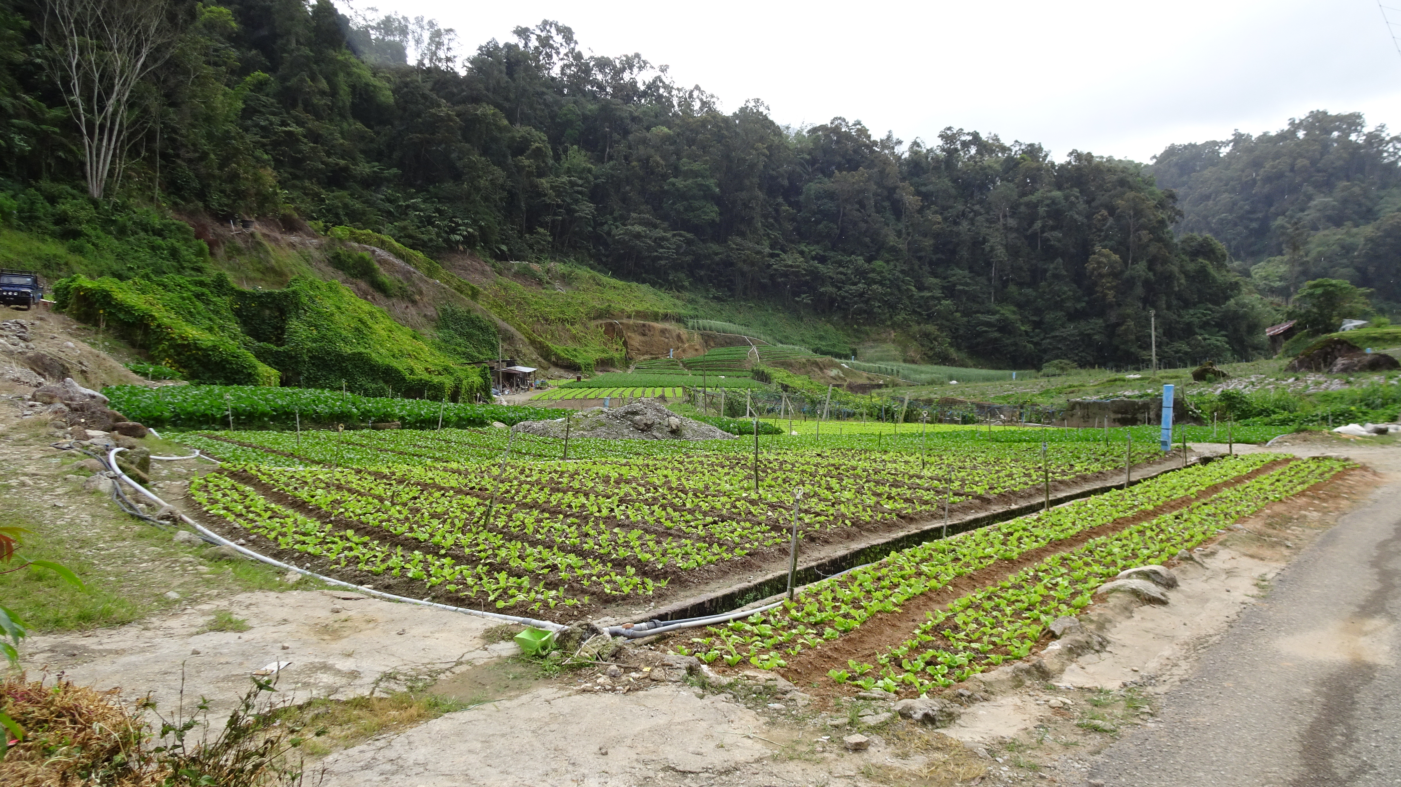 Da wo wir später den Trail verlassen, geht es sogar recht steil bergab und wir sind plötzlich mitten in einem riesigen Gemüsegarten.