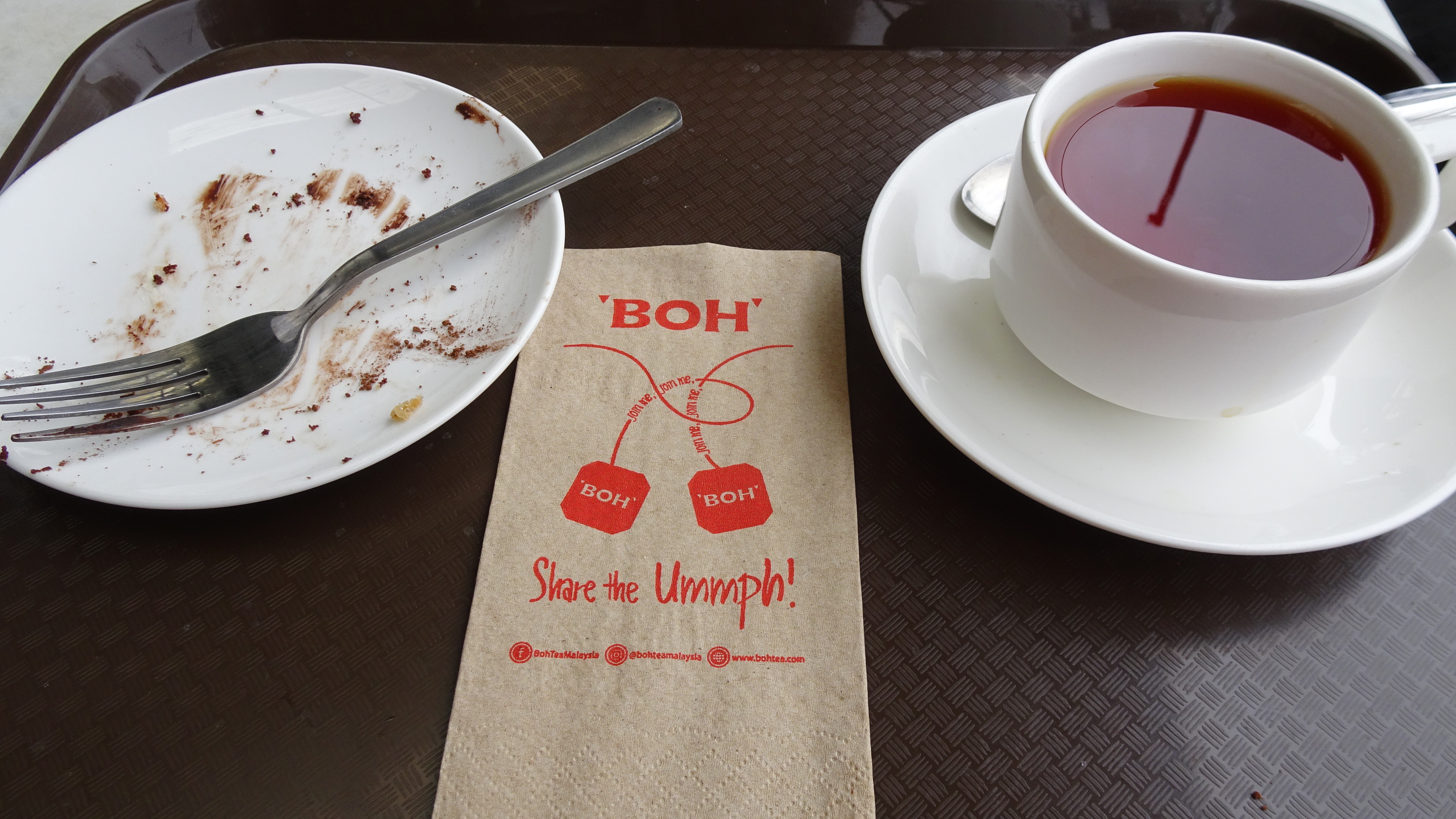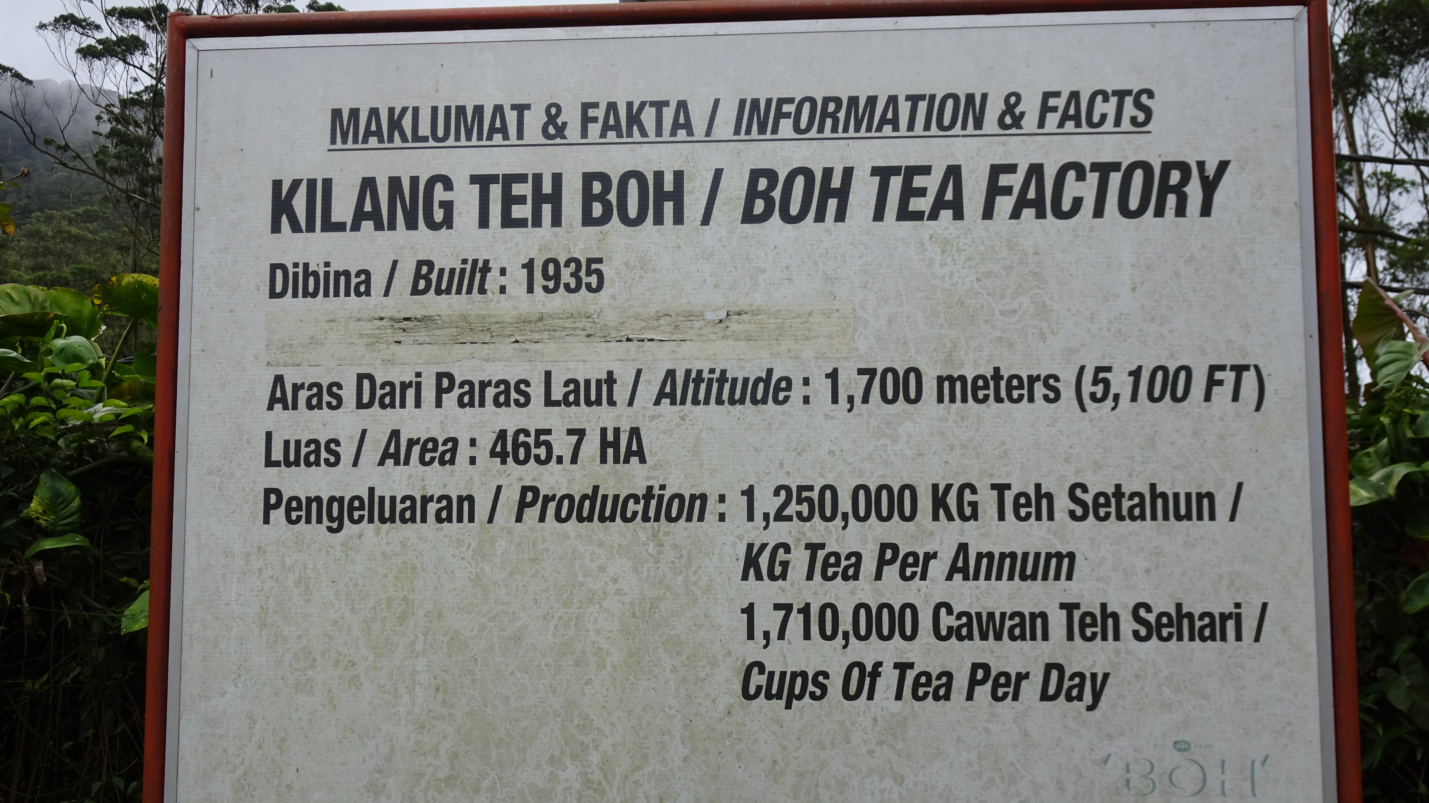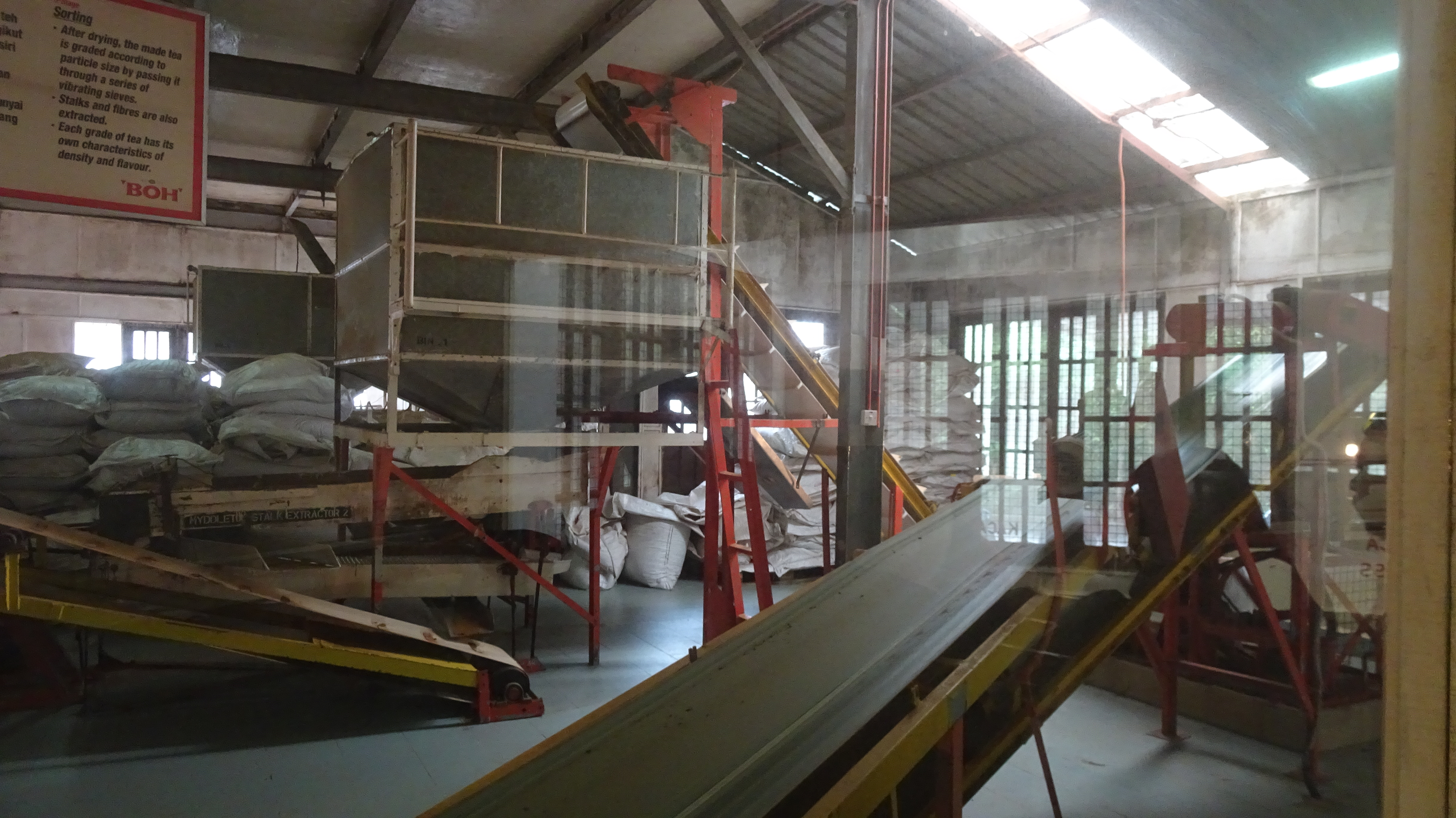 Ein Stück Wanderweg später steigen wir in unseren Begleitbus und fahren hoch zur Boh-Tee-Farm. Nach einem 5-Sterne-Rundblick vom Aussichtsberg (die Jungs, die sonst Bus und Transporter lenken kamen auch mit rauf und ganz schön ins schwitzen), besuchen wir die historische Teefabrik, die noch voll in Betrieb ist und genießen den erstklassigen Tee im kleinen Restaurant daneben. Der Kuchen war auch exzellent.