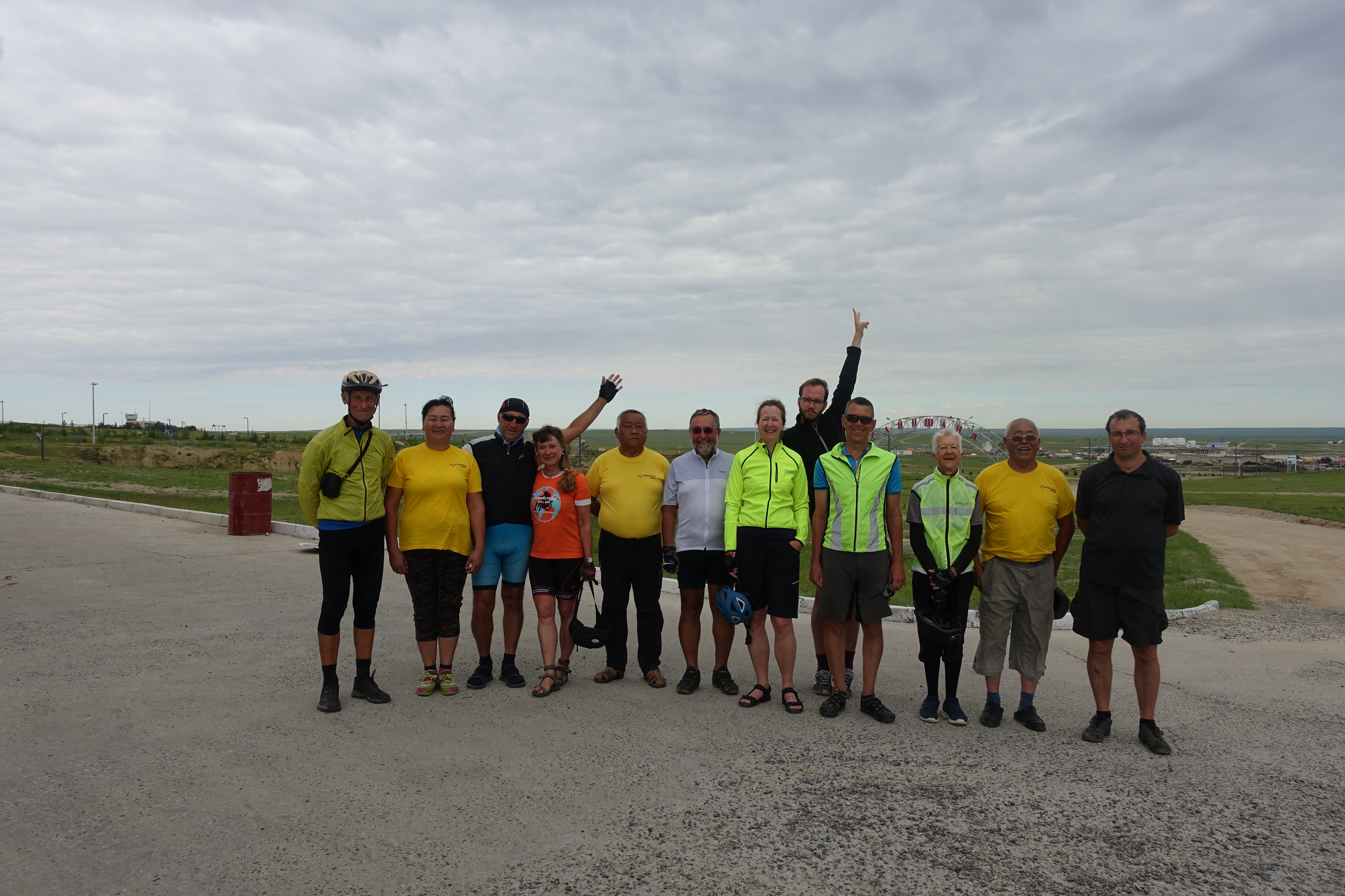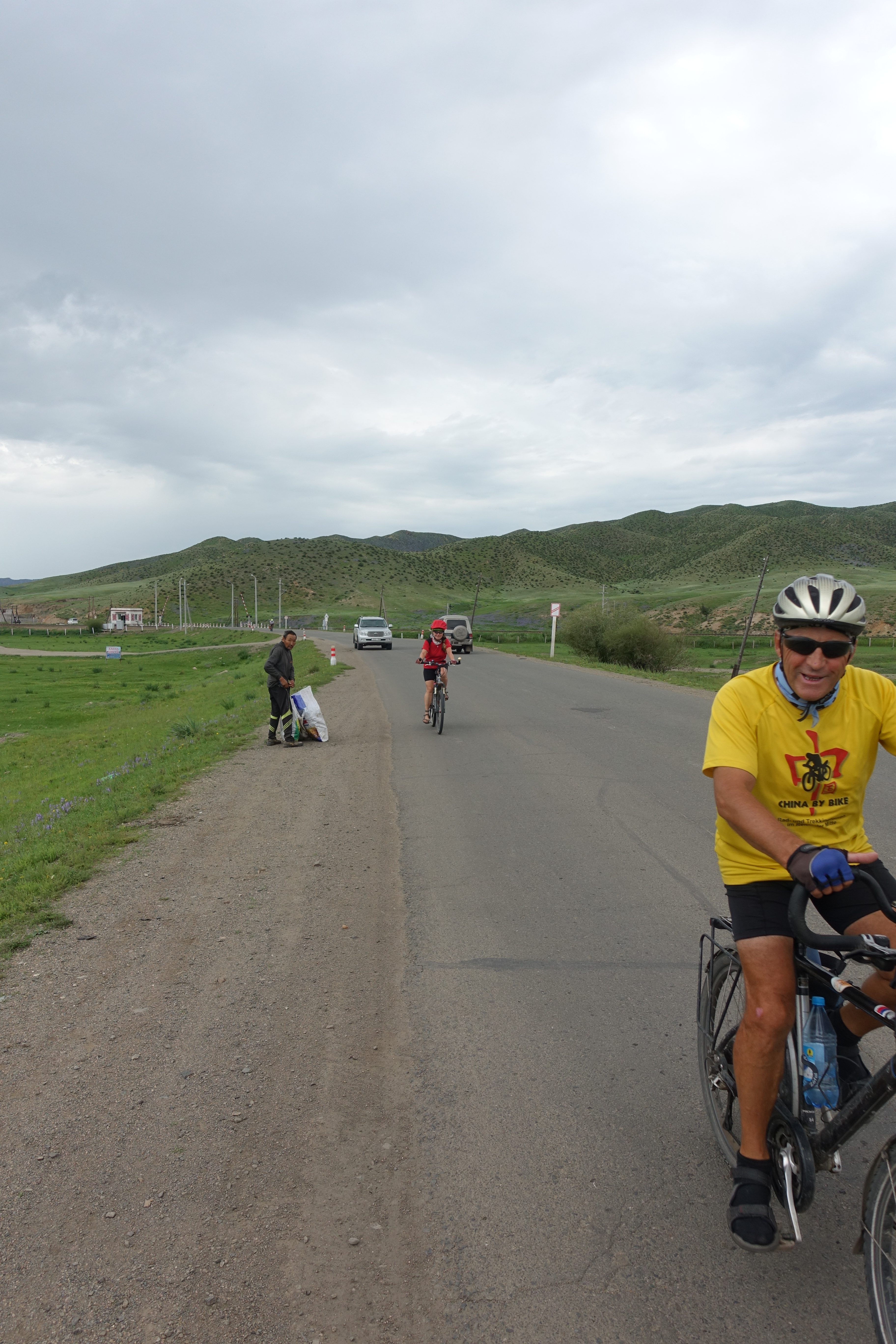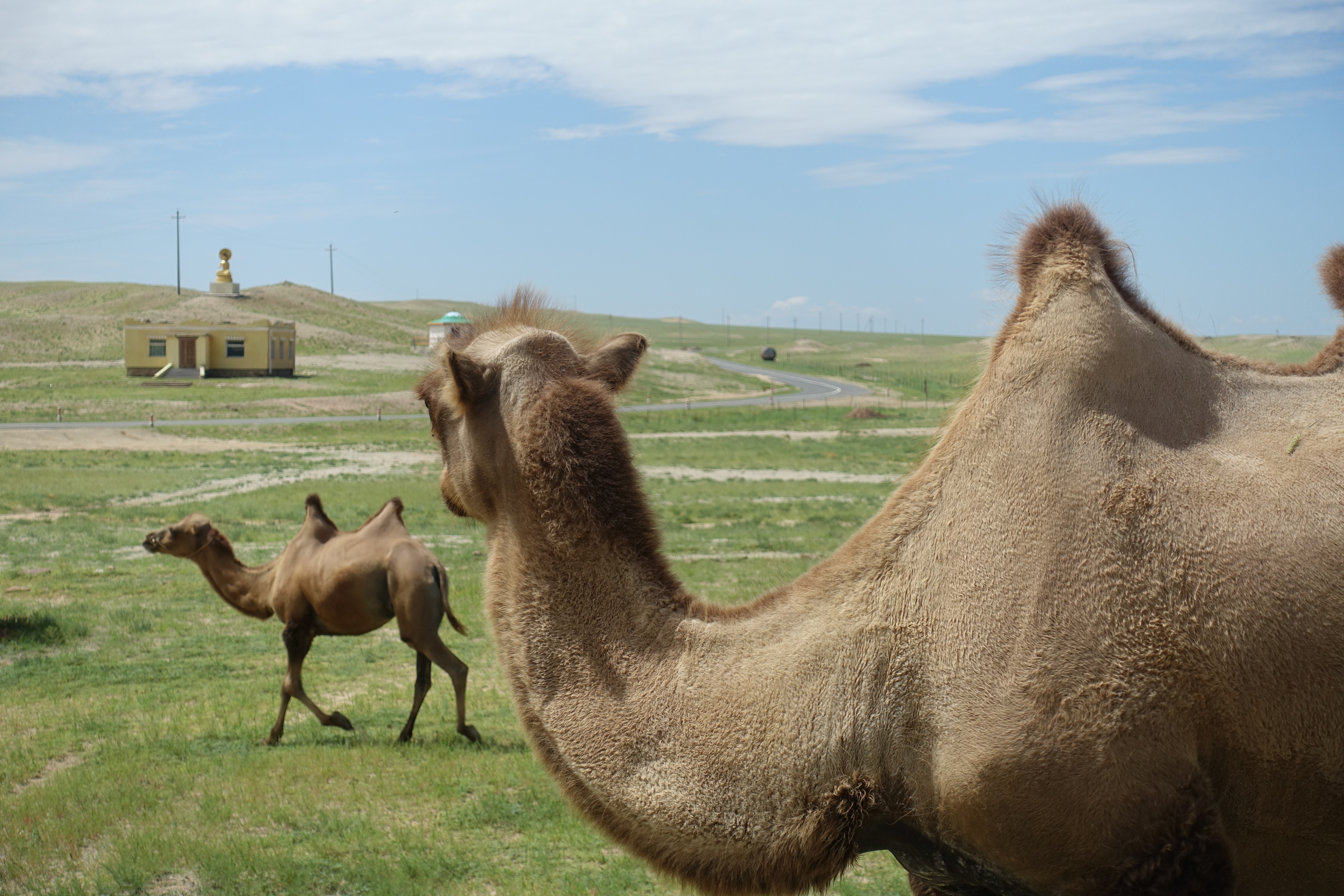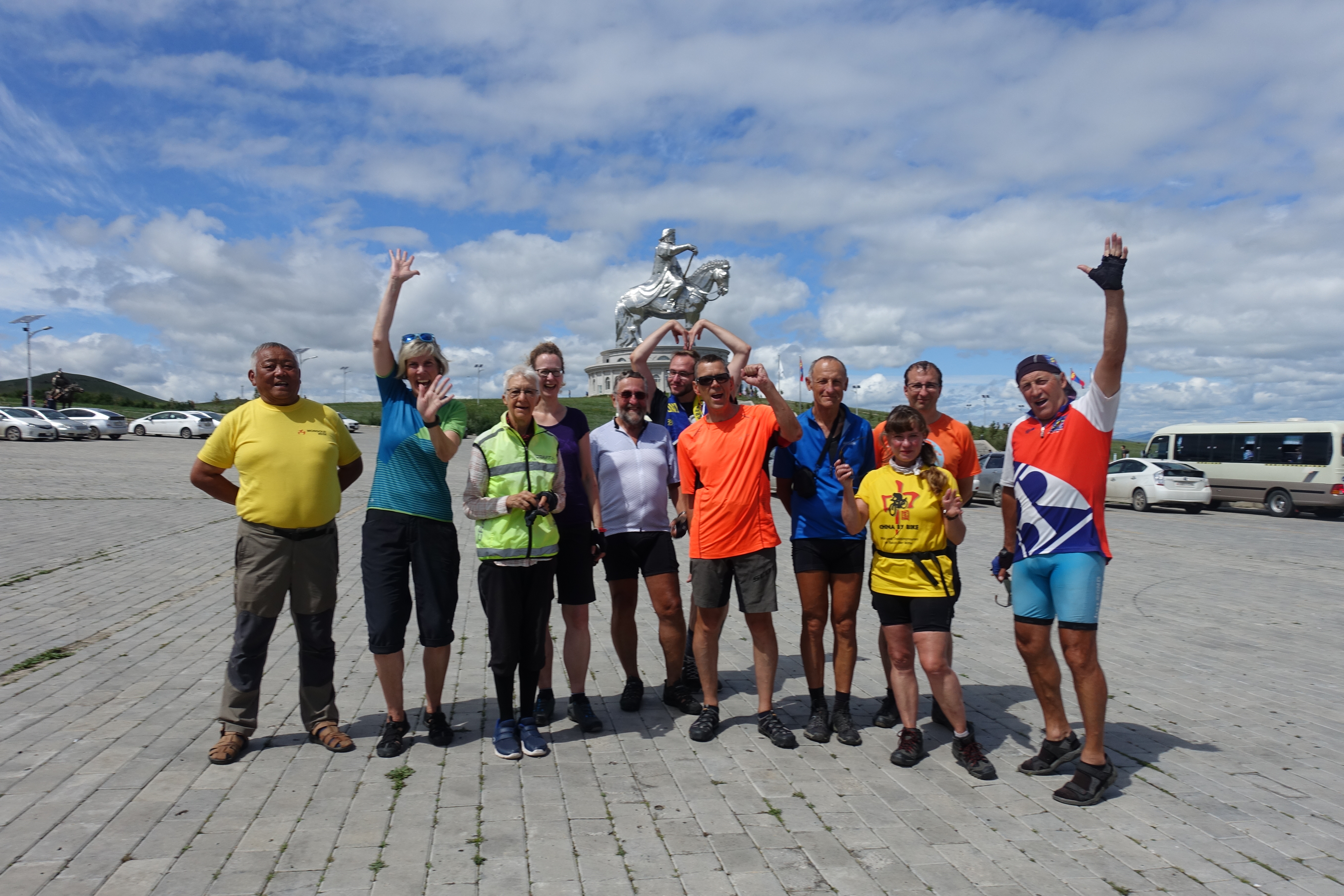 Einmal im Jahr, am 11. Juli, findet das größte Volksfest des Landes statt, das Naadam. Dazu kommen Männer, Frauen und Kinder aus allen Landesteilen, um sich miteinander im Wettkampf beim Ringen, Reiten und Bogenschießen zu messen. Wir sahen z.B. als wir zum Dshingis-Khan-Monument aus der Stadt radelten einen Teil der ca. 27 km langen „Rennstrecke“ in der Steppe am Straßenrand.