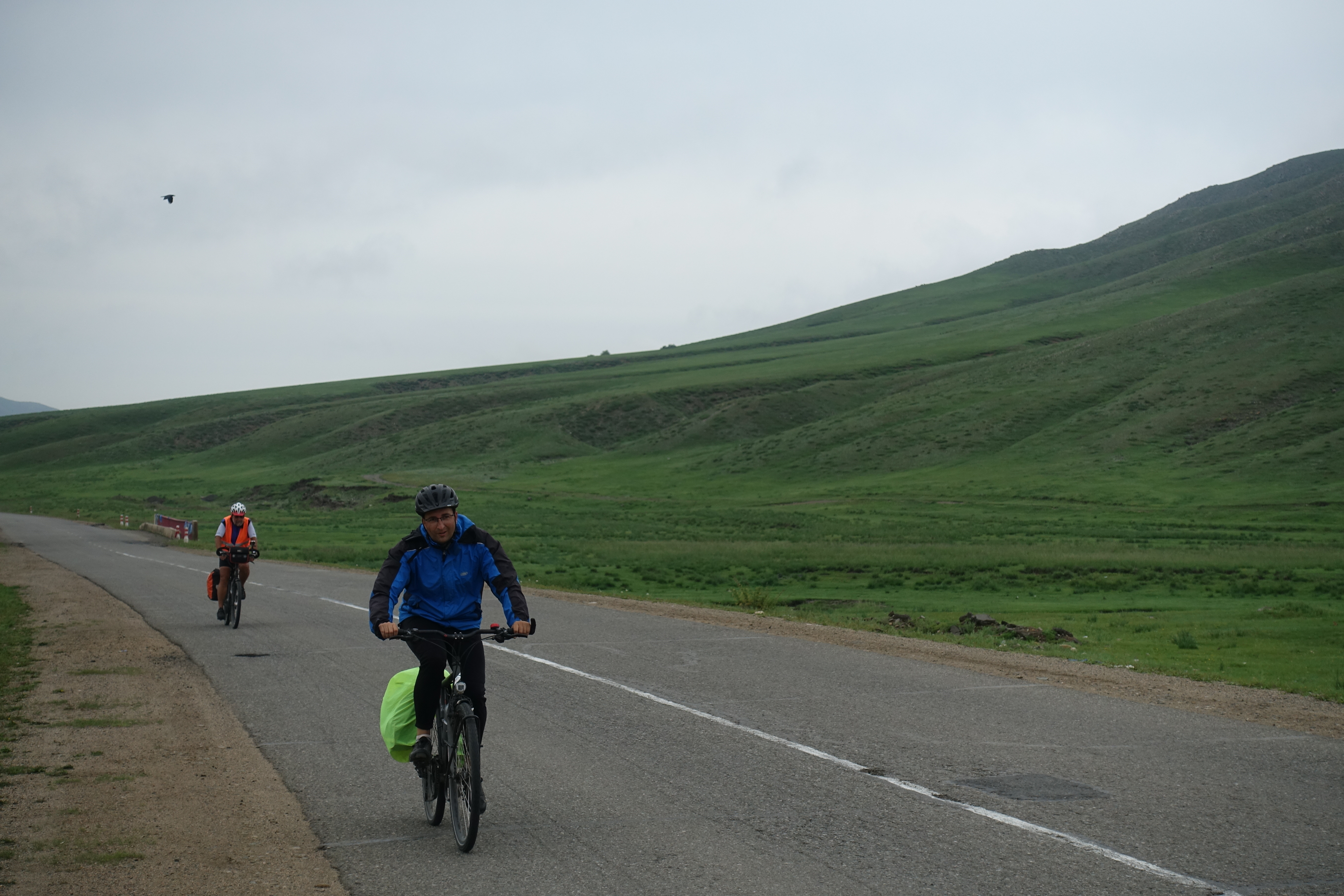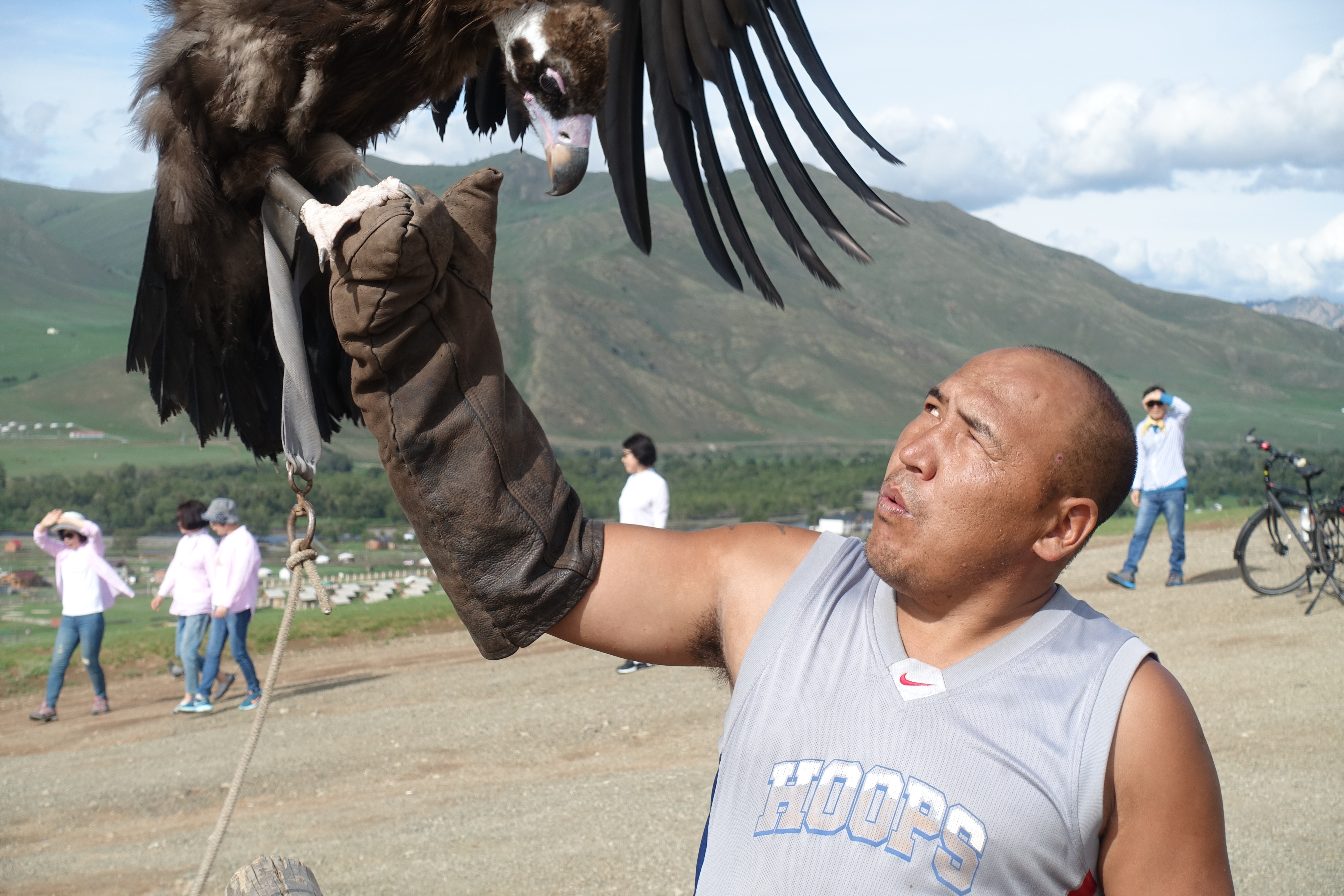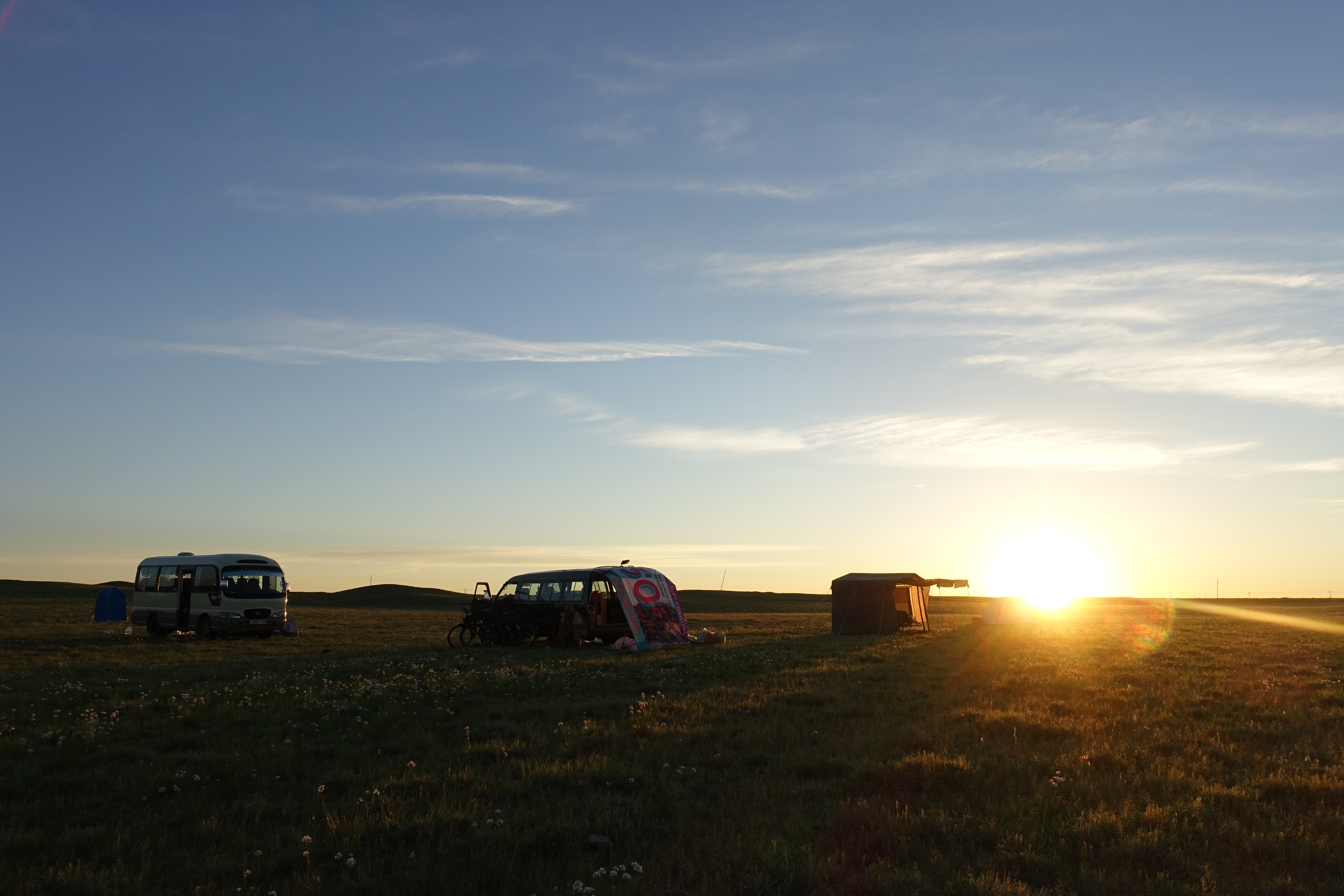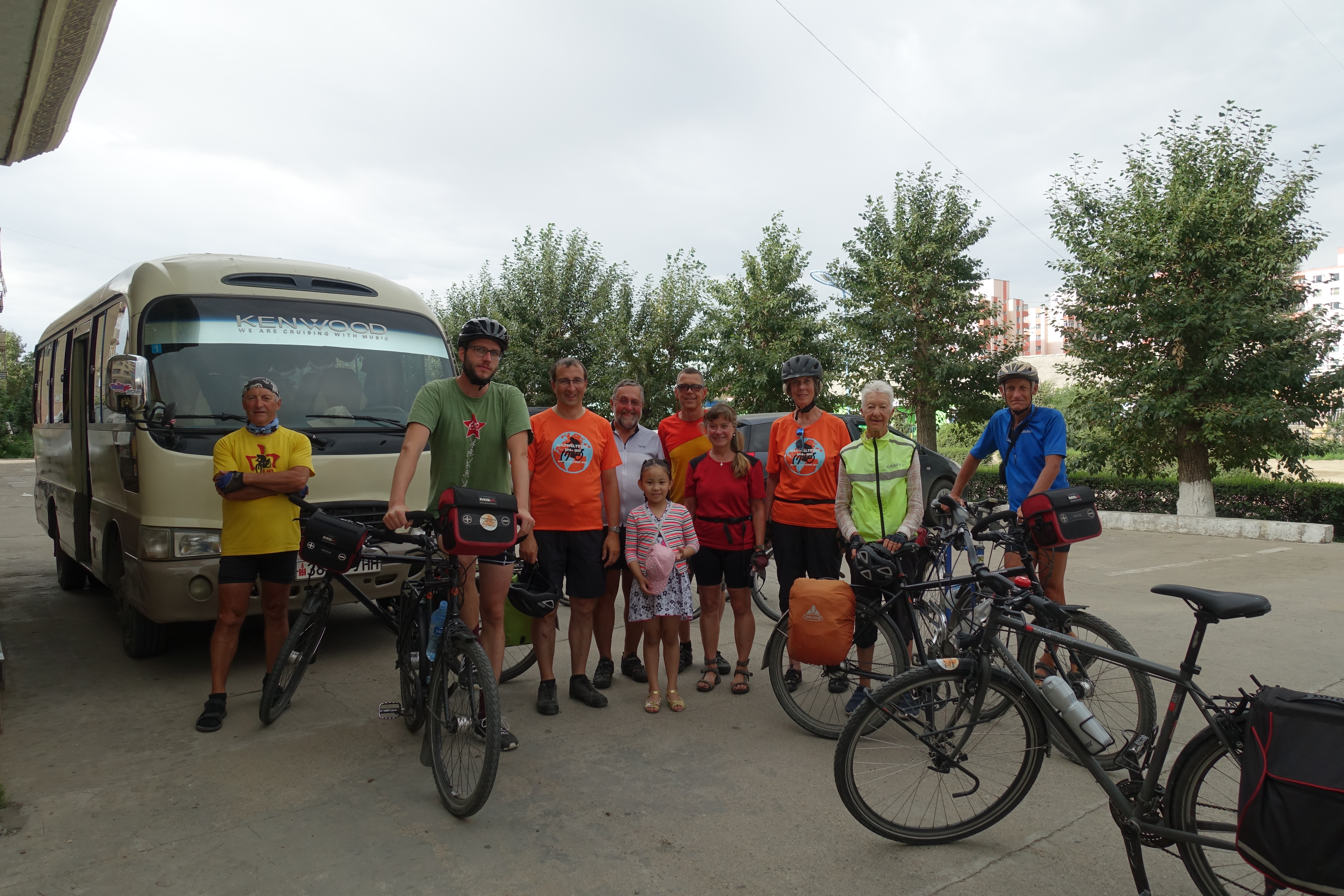 Einmal im Jahr, am 11. Juli, findet das größte Volksfest des Landes statt, das Naadam. Dazu kommen Männer, Frauen und Kinder aus allen Landesteilen, um sich miteinander im Wettkampf beim Ringen, Reiten und Bogenschießen zu messen. Wir sahen z.B. als wir zum Dshingis-Khan-Monument aus der Stadt radelten einen Teil der ca. 27 km langen „Rennstrecke“ in der Steppe am Straßenrand.
