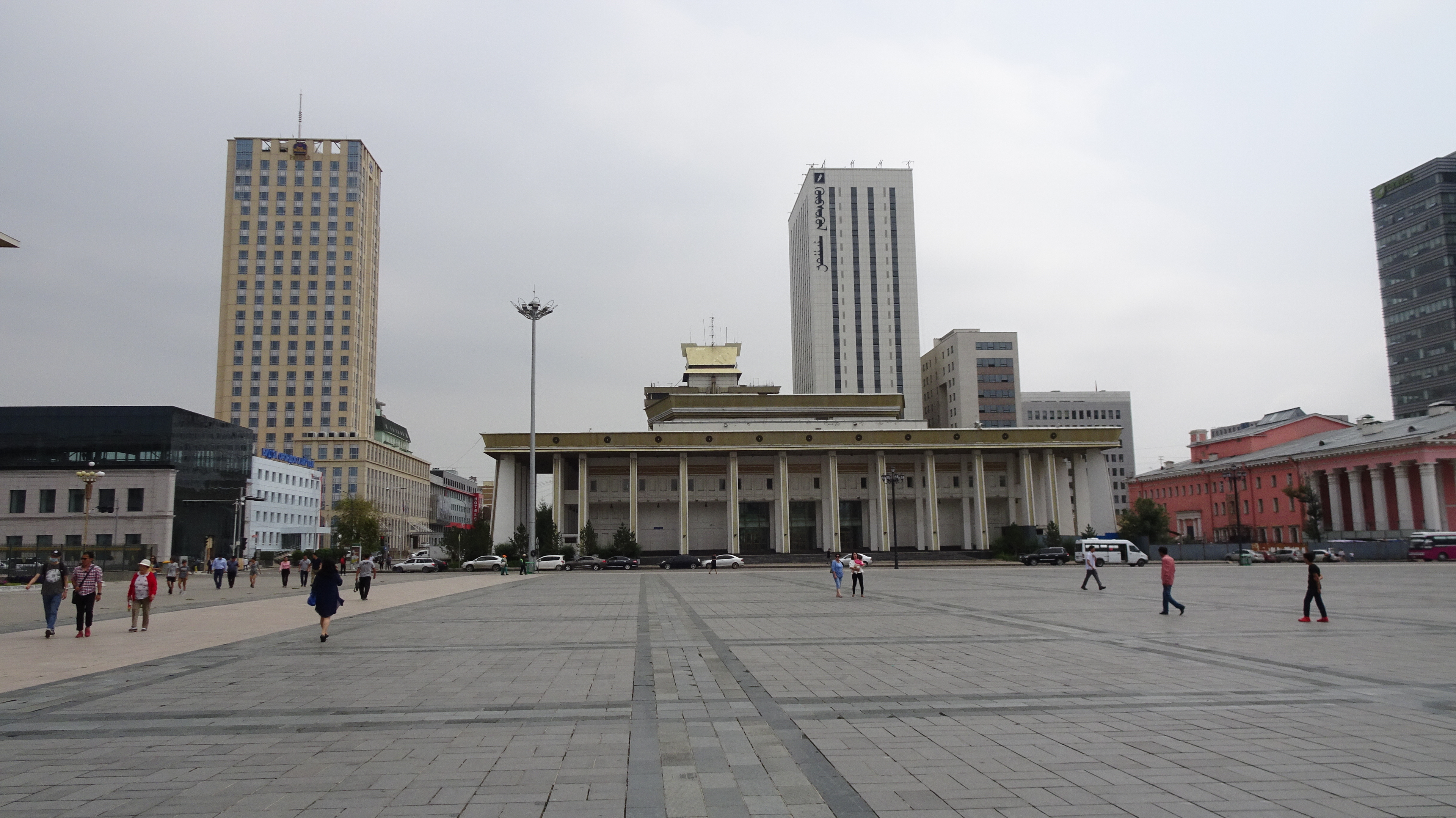 Byambaa erzählt uns interessantes über die markantesten Bauten auf diesem riesigen Platz. Da gibt es das Parlamentsgebäude, das Rathaus der Stadt, das Haus der Kultur, die Staatsoper, die Mongolische Börse sowie einige neuere und moderne Hochhäuser mit Hotels, Restaurants und Geschäften. In allen großen Straßen des Zentrums rufen Banken nach Kunden und auch wir folgen den zahlreichen ATM-Schildern, um uns mit Tugrik (Bildnisse von Süchbaatar und Dschingis Khan) zu versorgen. Anmerkung für die Insider unter den Blogleserinnen: Nach meiner Beobachtung dominieren eindeutig Wincor-Nixdorf und Diebold die „Geldautomaten“-Szene, sogar im Ticket-Häuschen des Gandan-Klosters. 😉