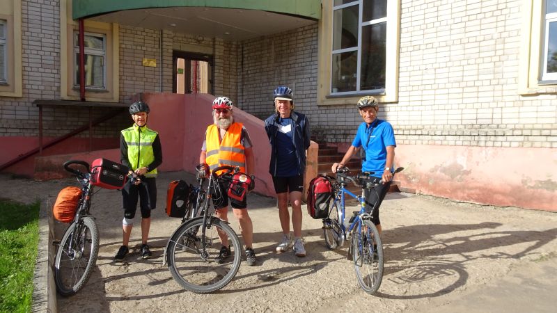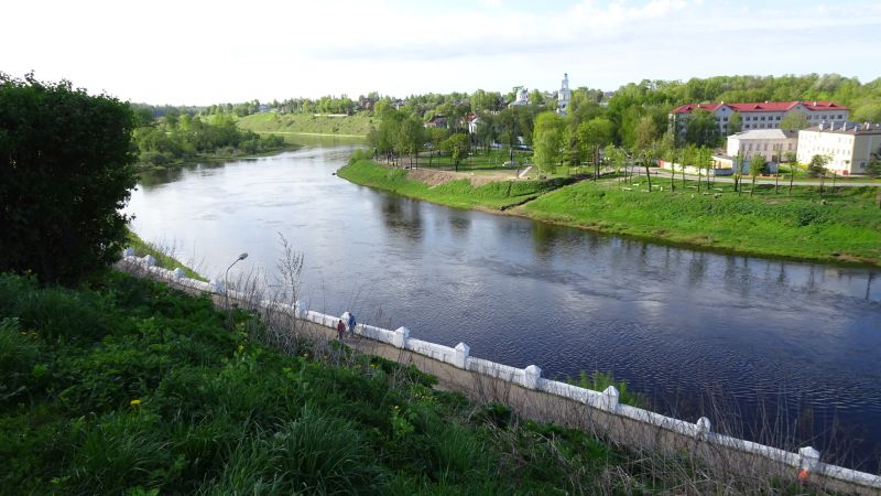 Wir haben ein langes Stück Weg vor uns und starten schon kurz nach 8 Uhr. Rschew wacht langsam auf und wir können ahnen, wo sich die Menschen zum Feiern treffen werden. Wir radeln an einer kleinen Ausstellung nicht mehr ganz neuer, aber sicher sehr bewährter Raketenwaffen vorbei und überqueren zum ersten Mal die Wolga, die hier noch relativ schmal das Land durchfließt.
